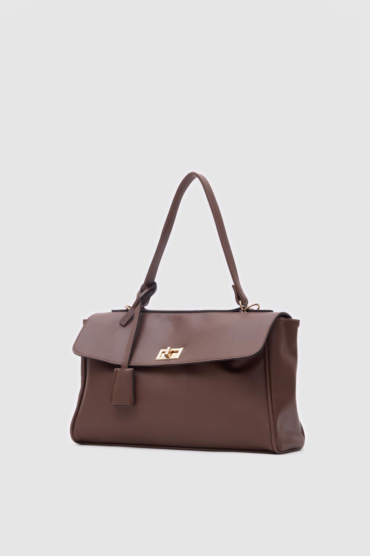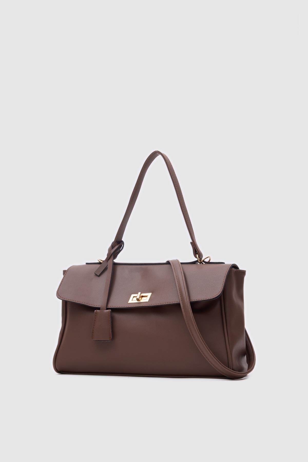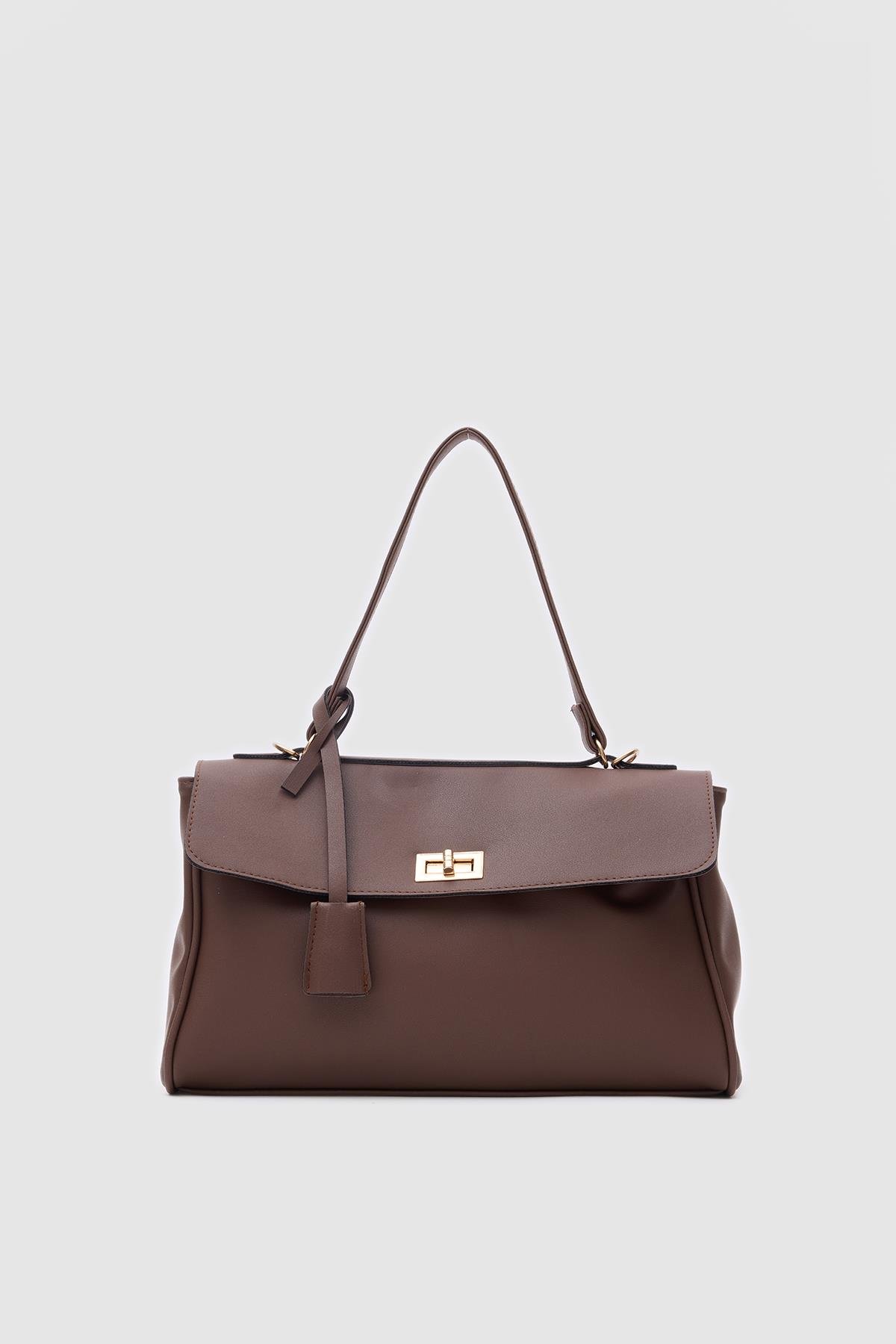 Amara Kilitli Klasik Omuz Çantası Kahverengi
