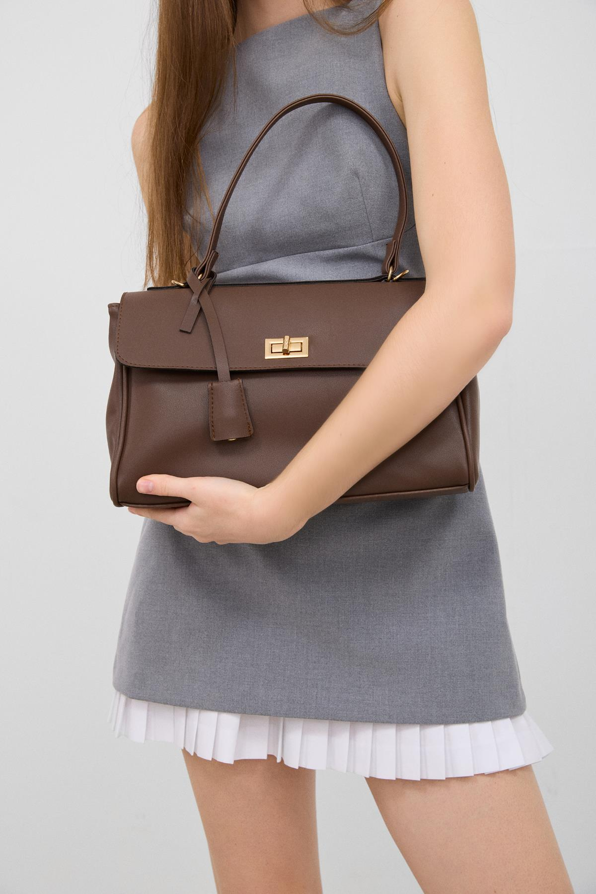 Amara Kilitli Klasik Omuz Çantası Kahverengi (shule008373)