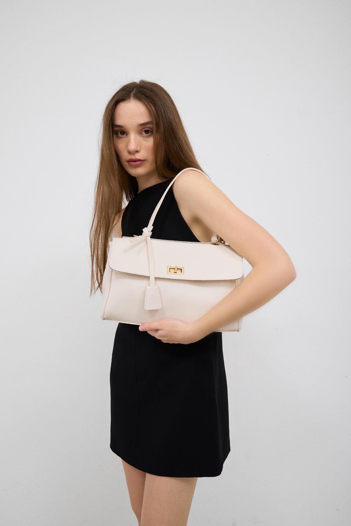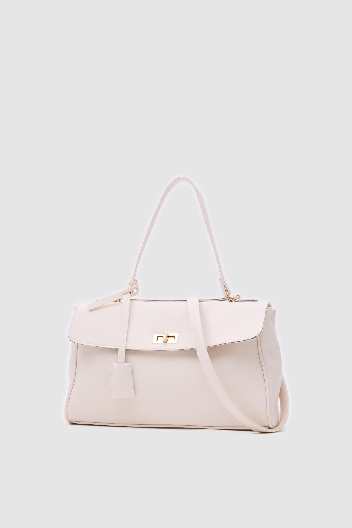 Amara Kilitli Klasik Omuz Çantası Krem (shule008373)