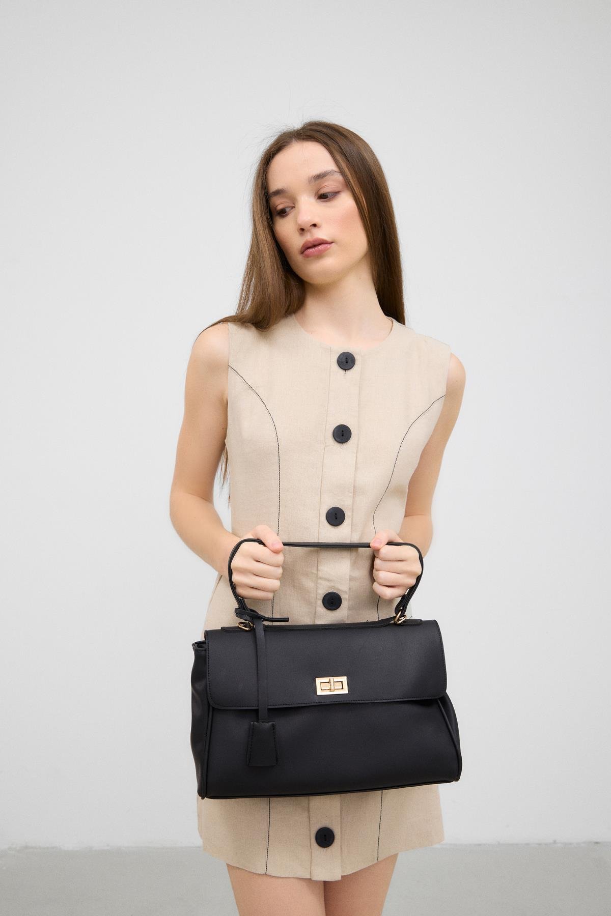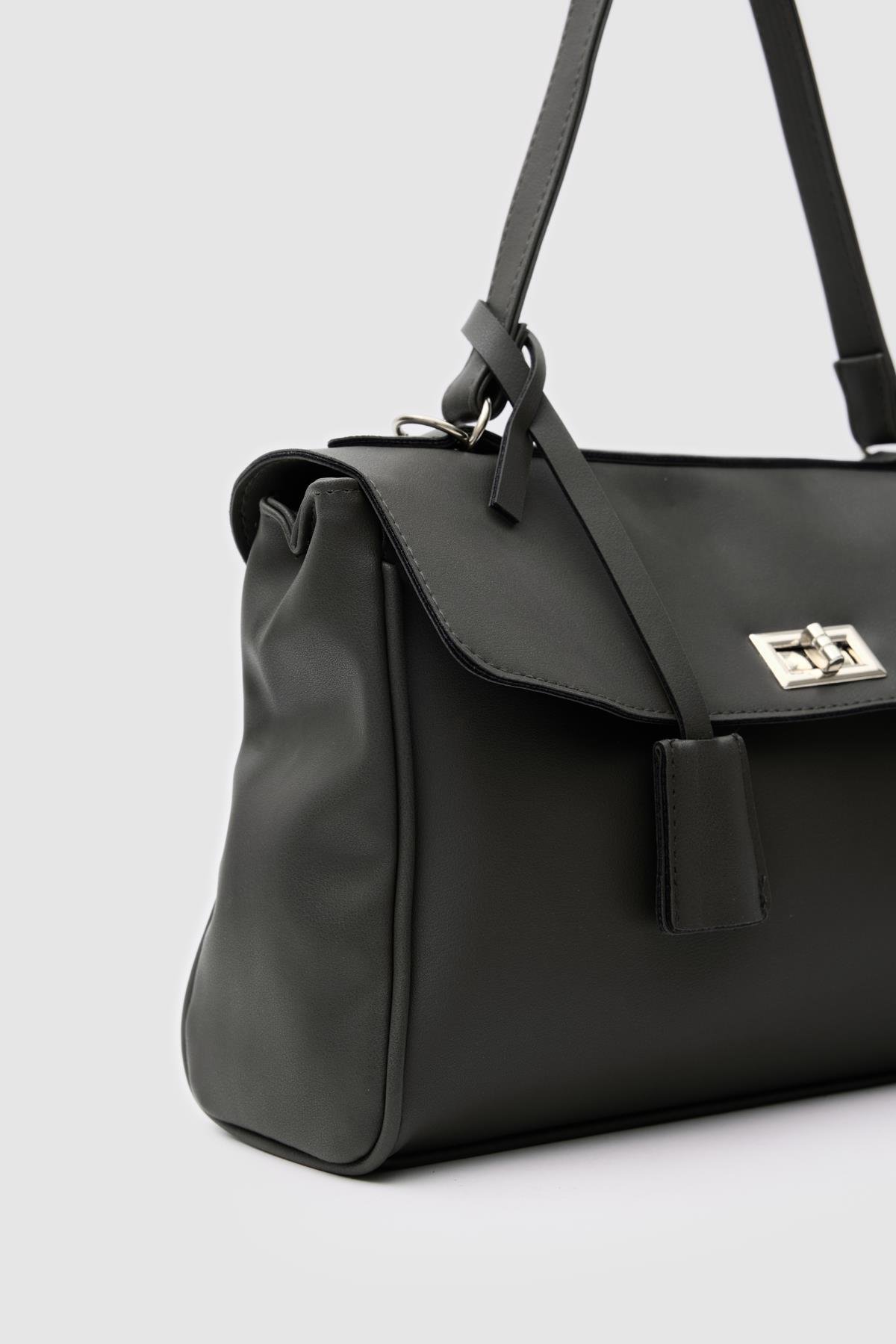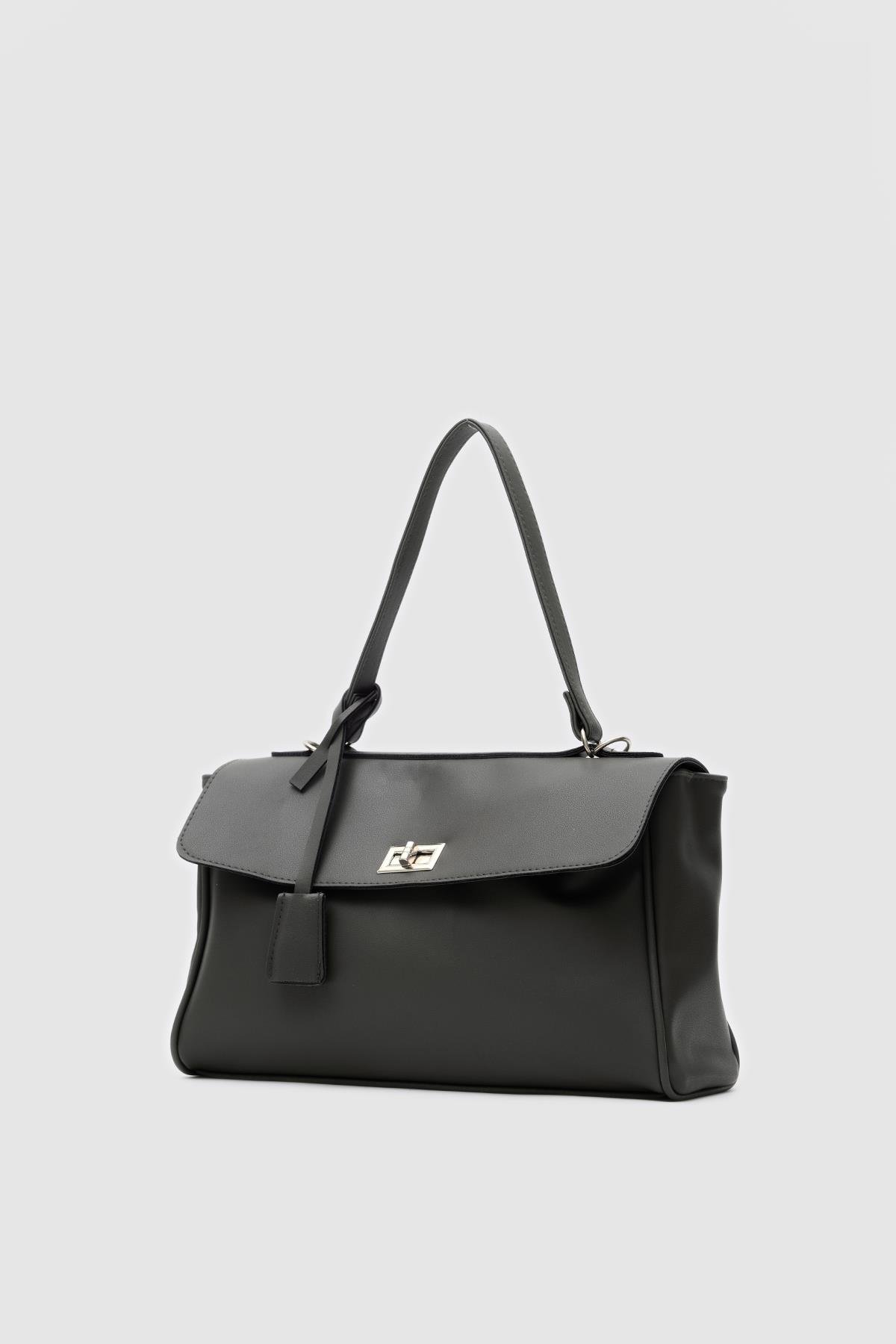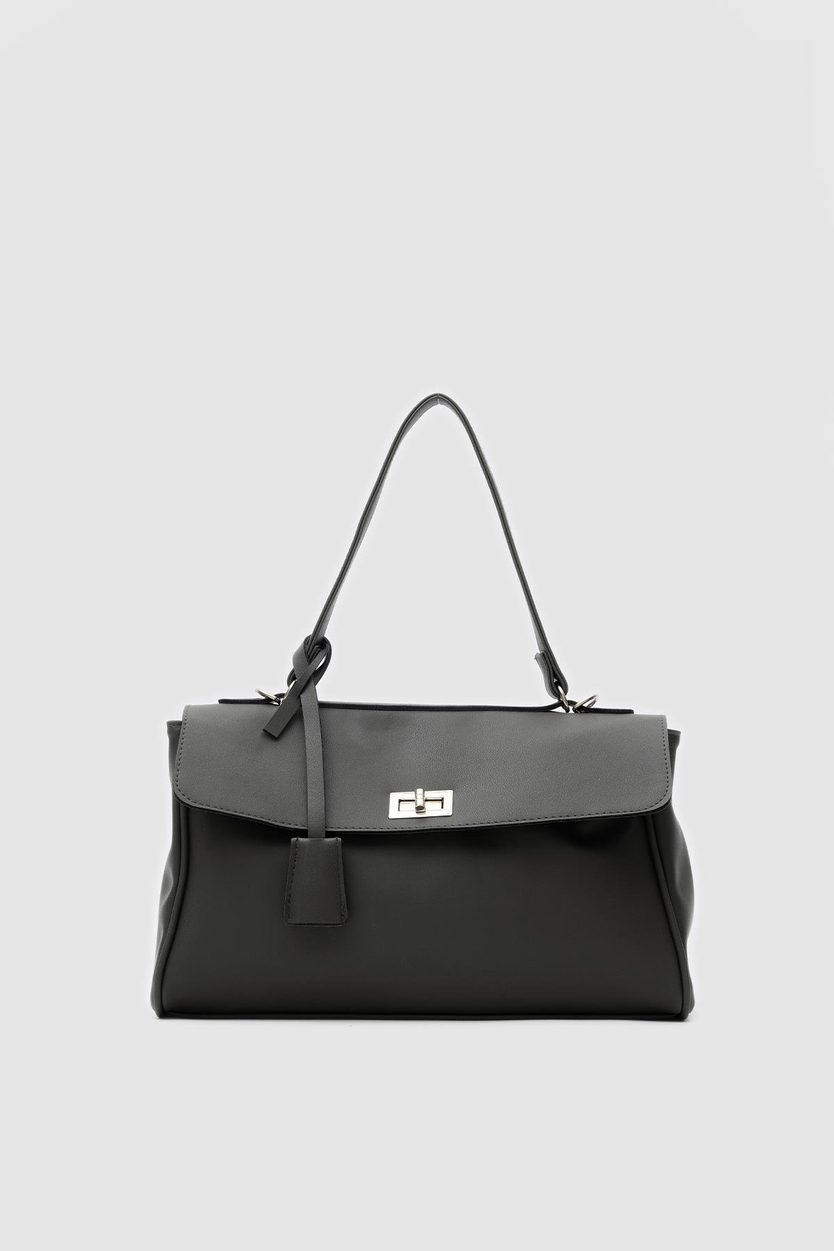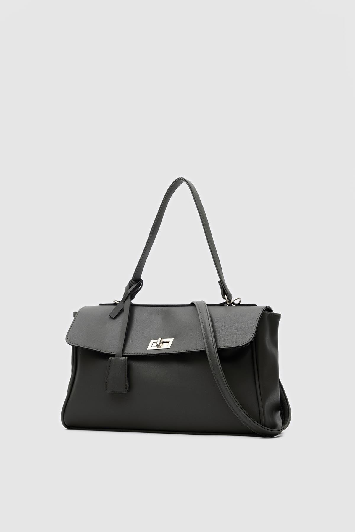 Amara Kilitli Klasik Omuz Çantası Siyah