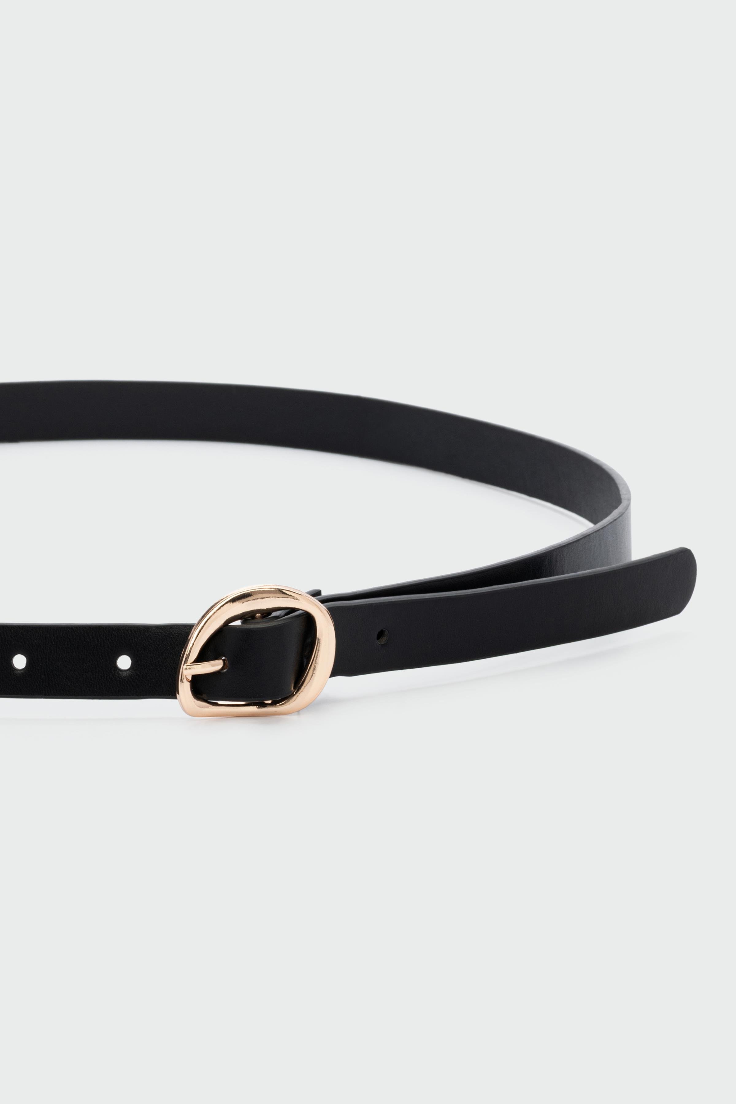 Asimetrik Tokalı İnce Suni Deri Kemer Siyah (shule008426)
