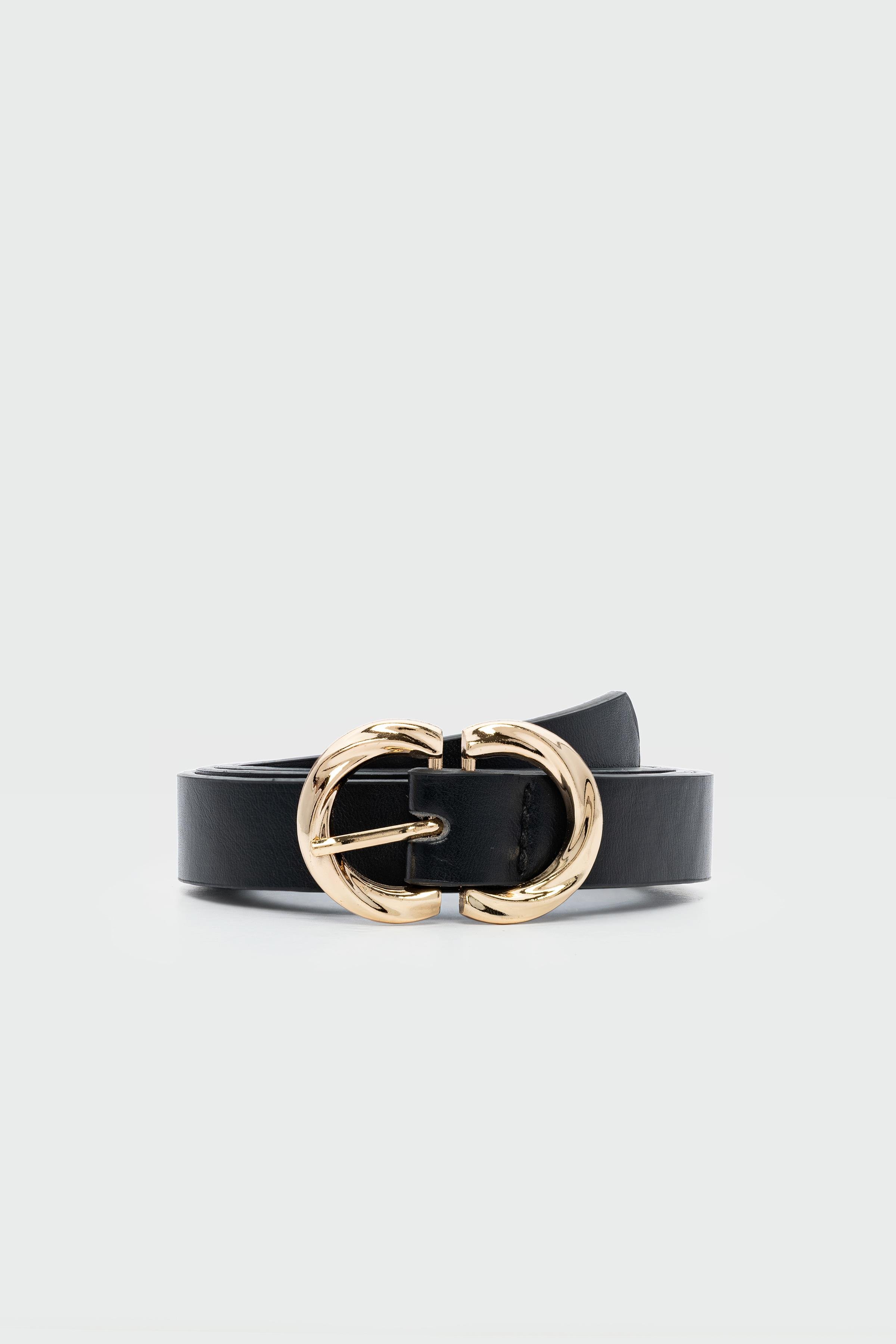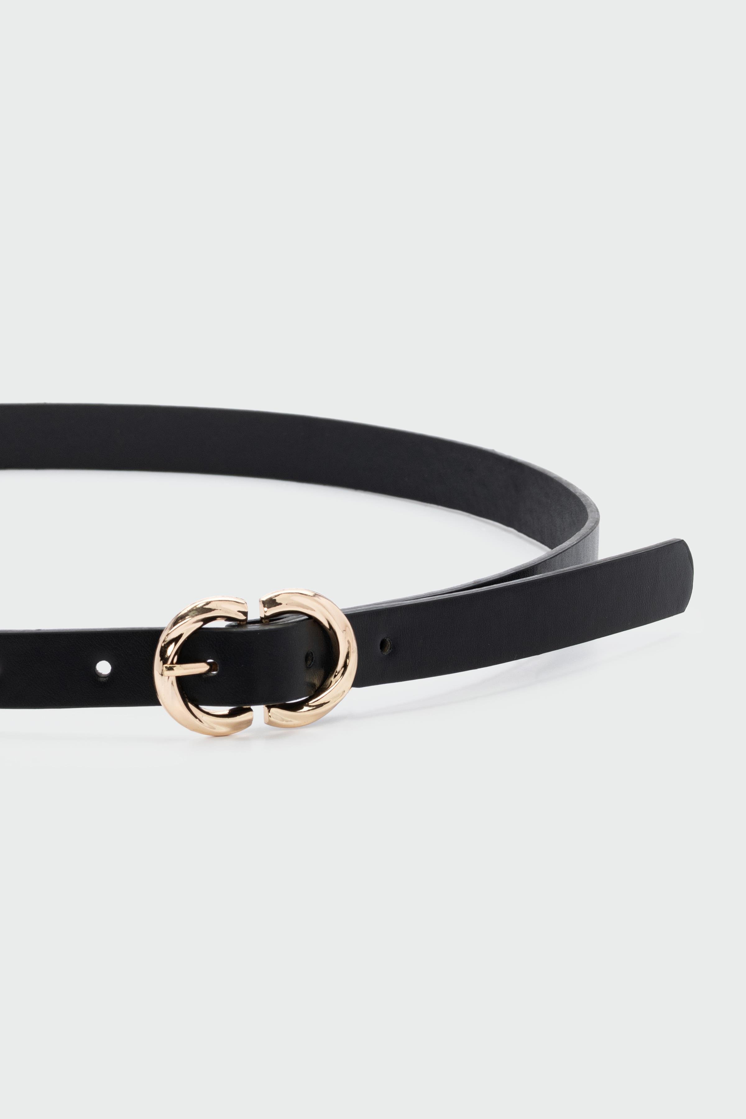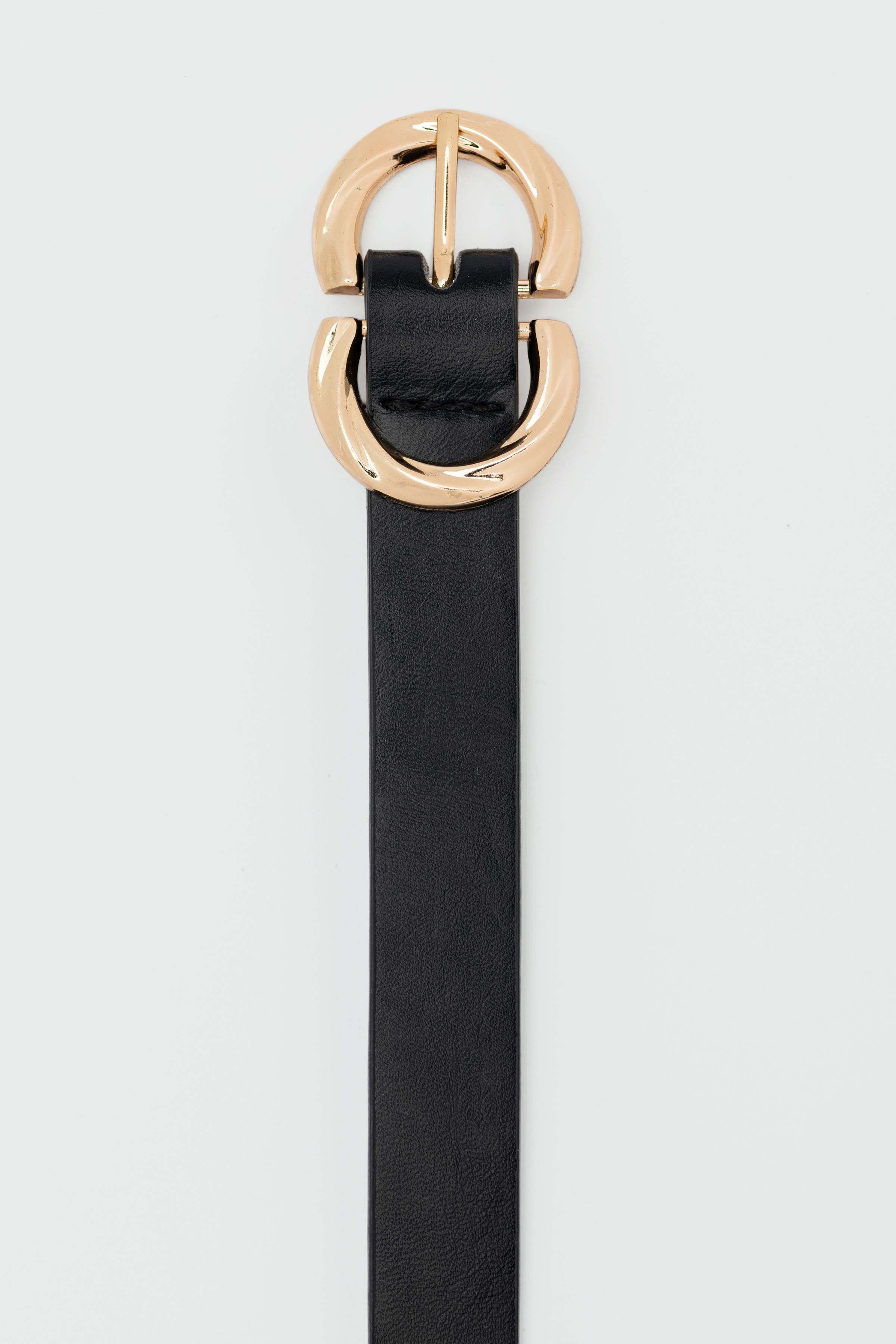 Burgu Çift Oval Tokalı Suni Deri Kemer Siyah (shule008423)