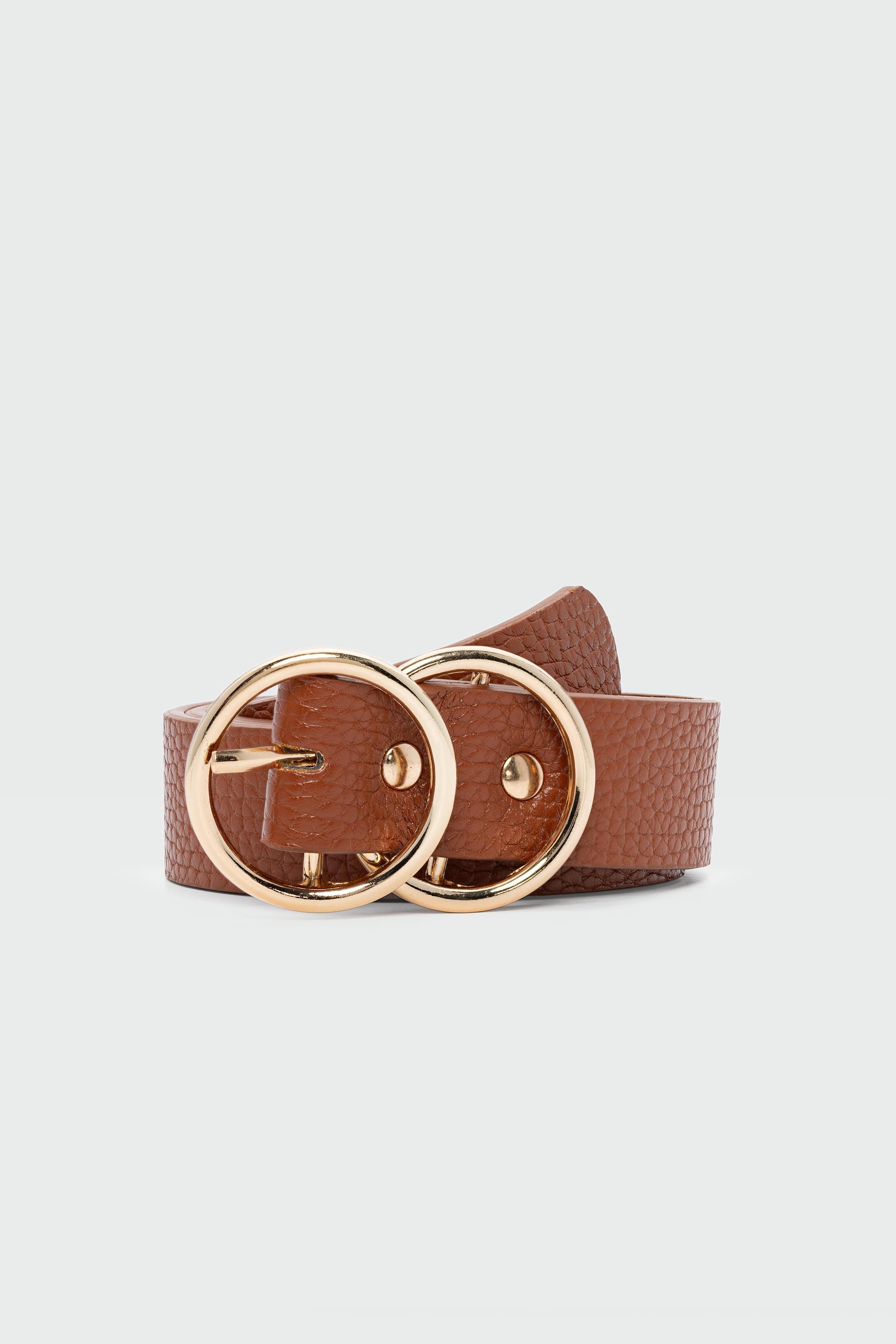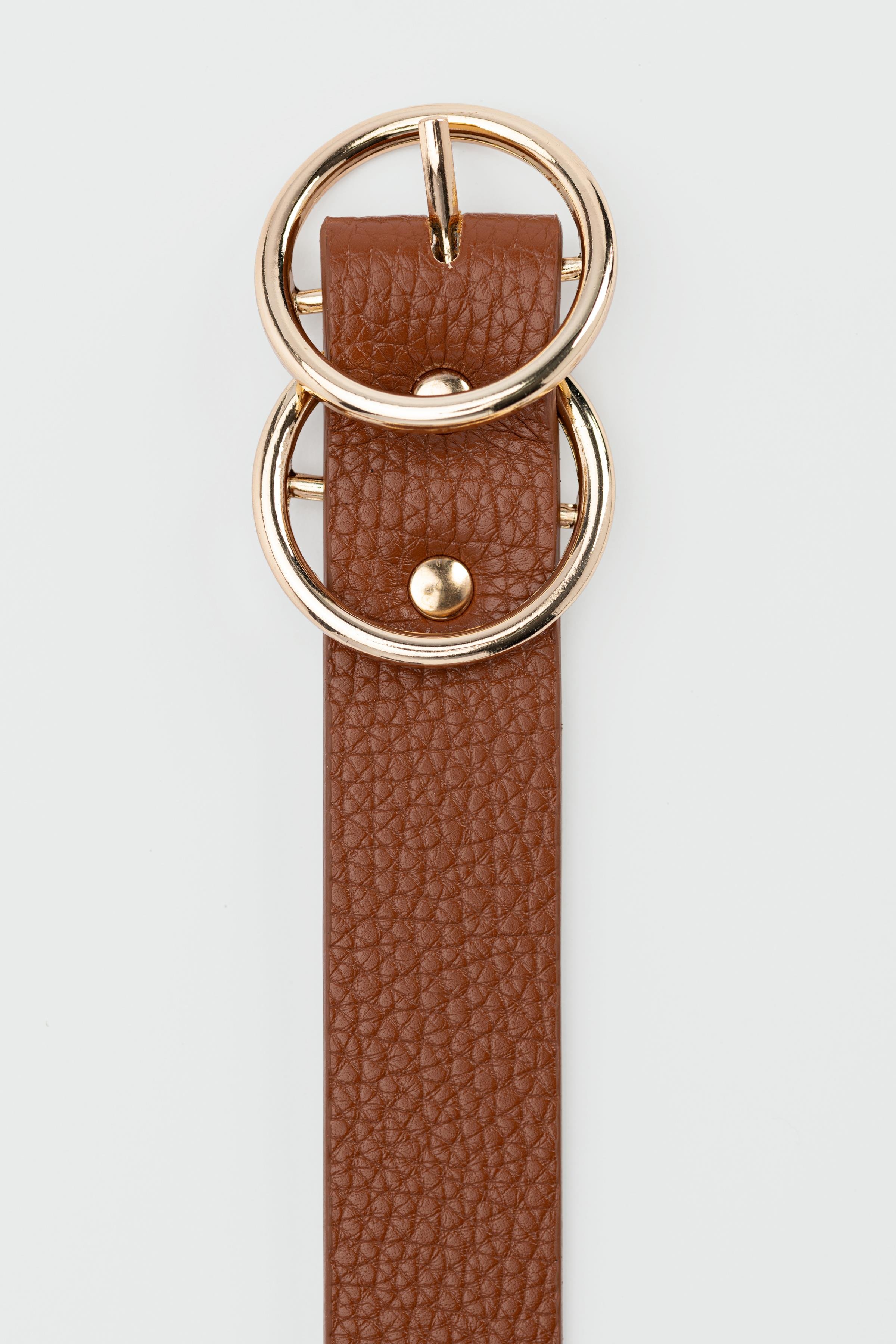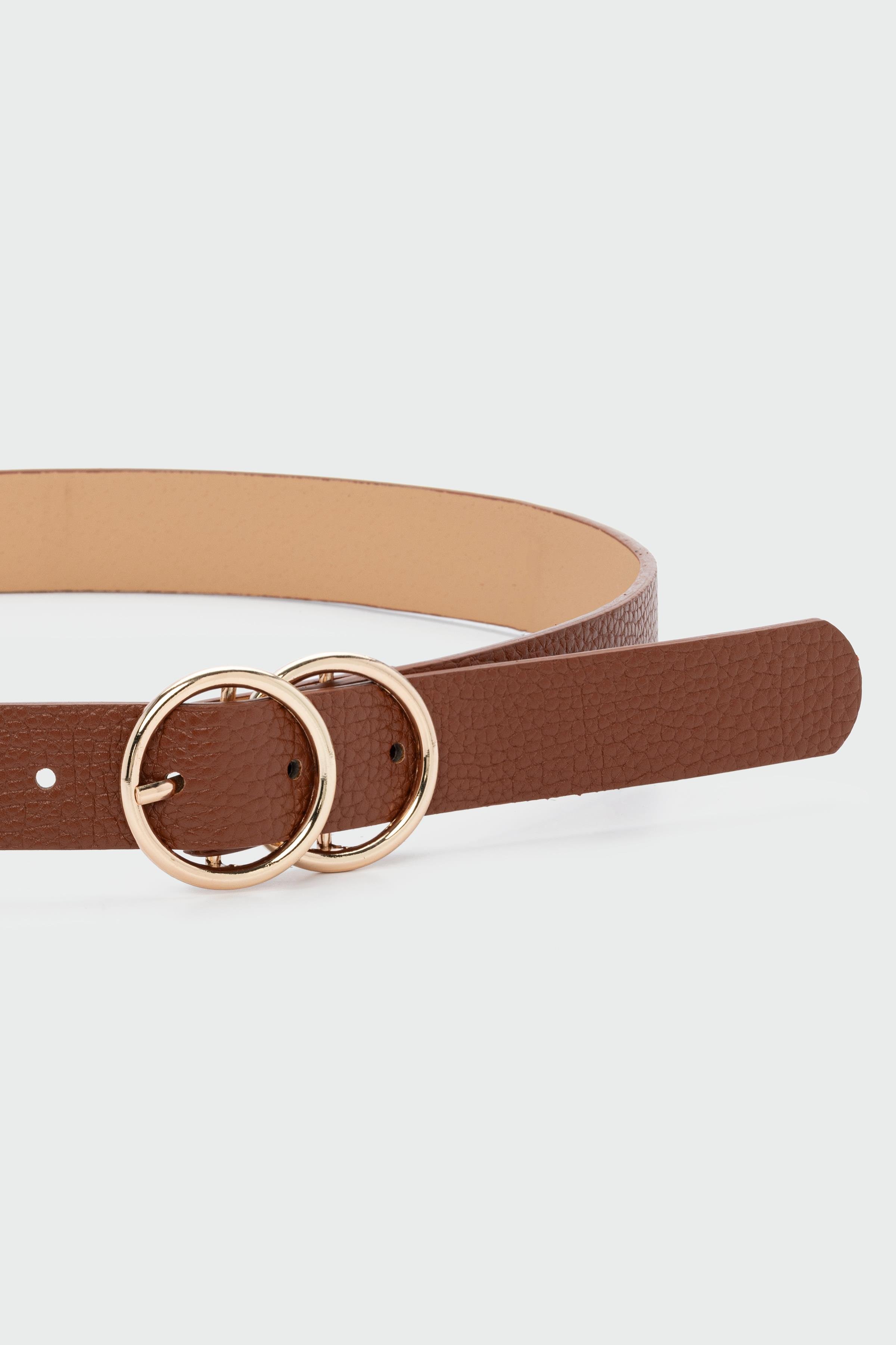 Çift Yuvarlak Tokalı Suni Deri Kemer Taba