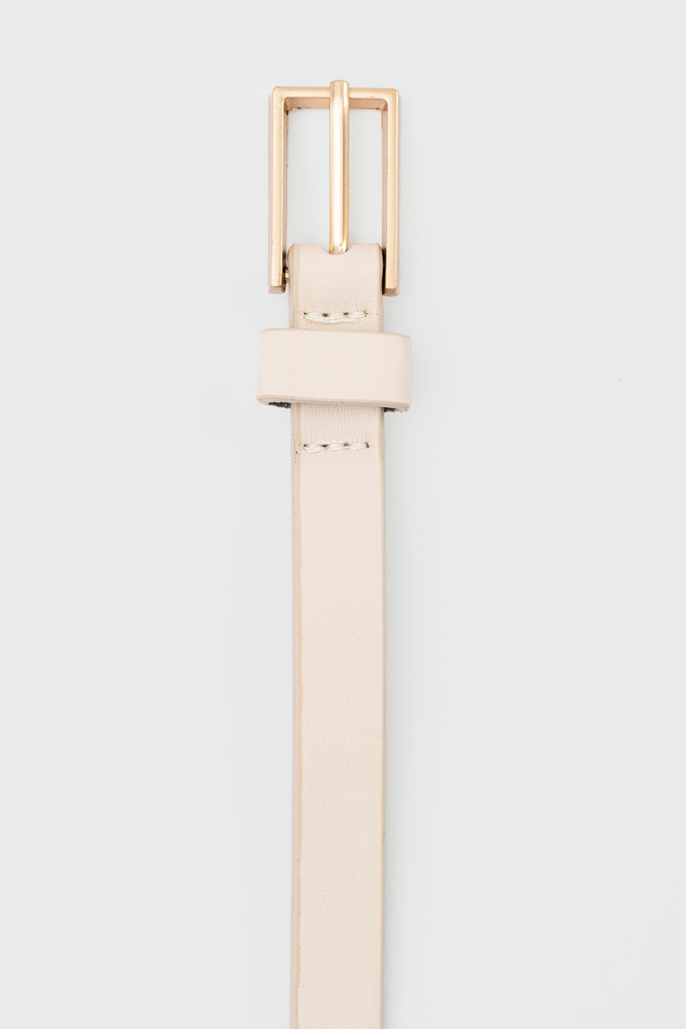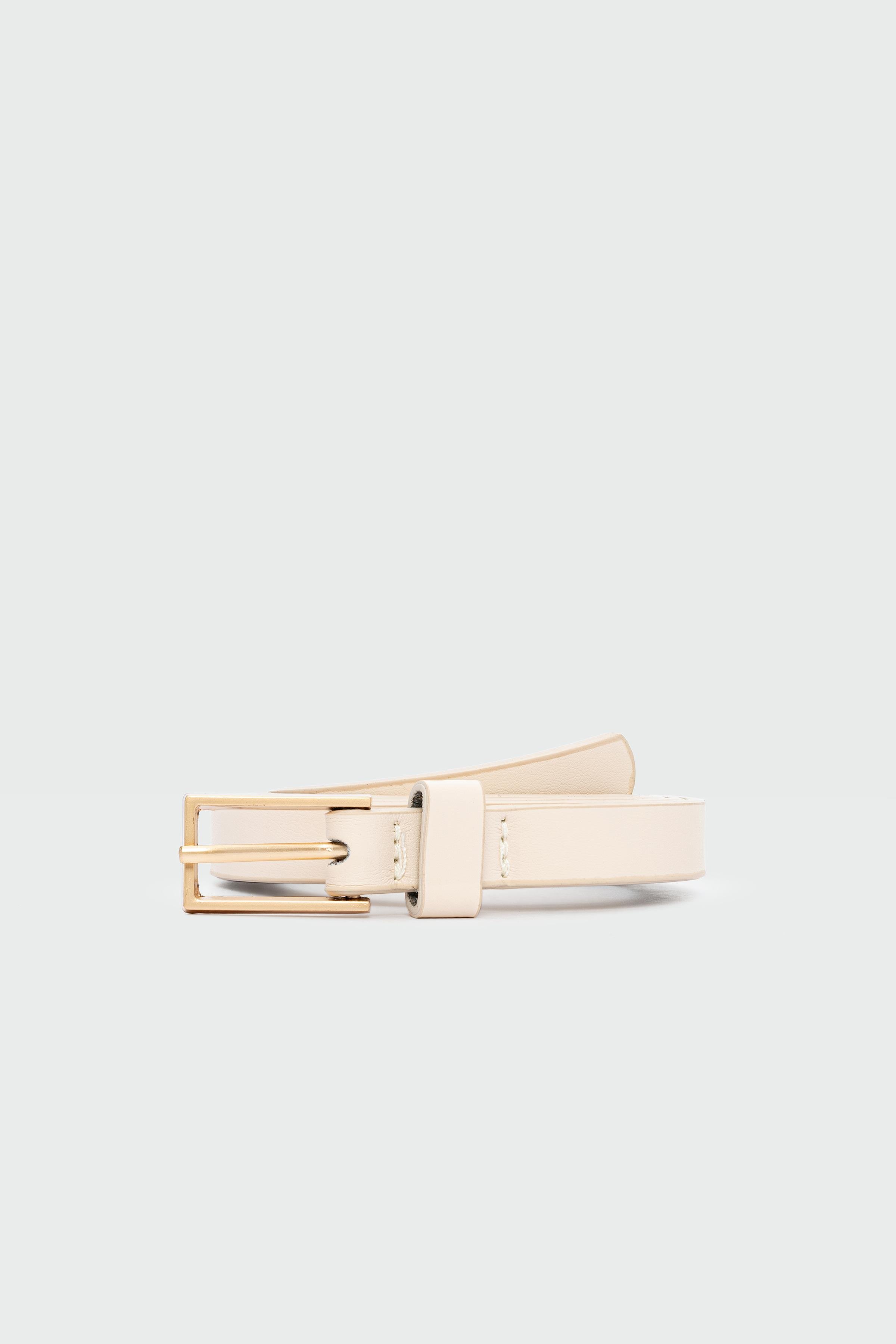 Dikdörtgen İnce Suni Deri Kemer Krem
