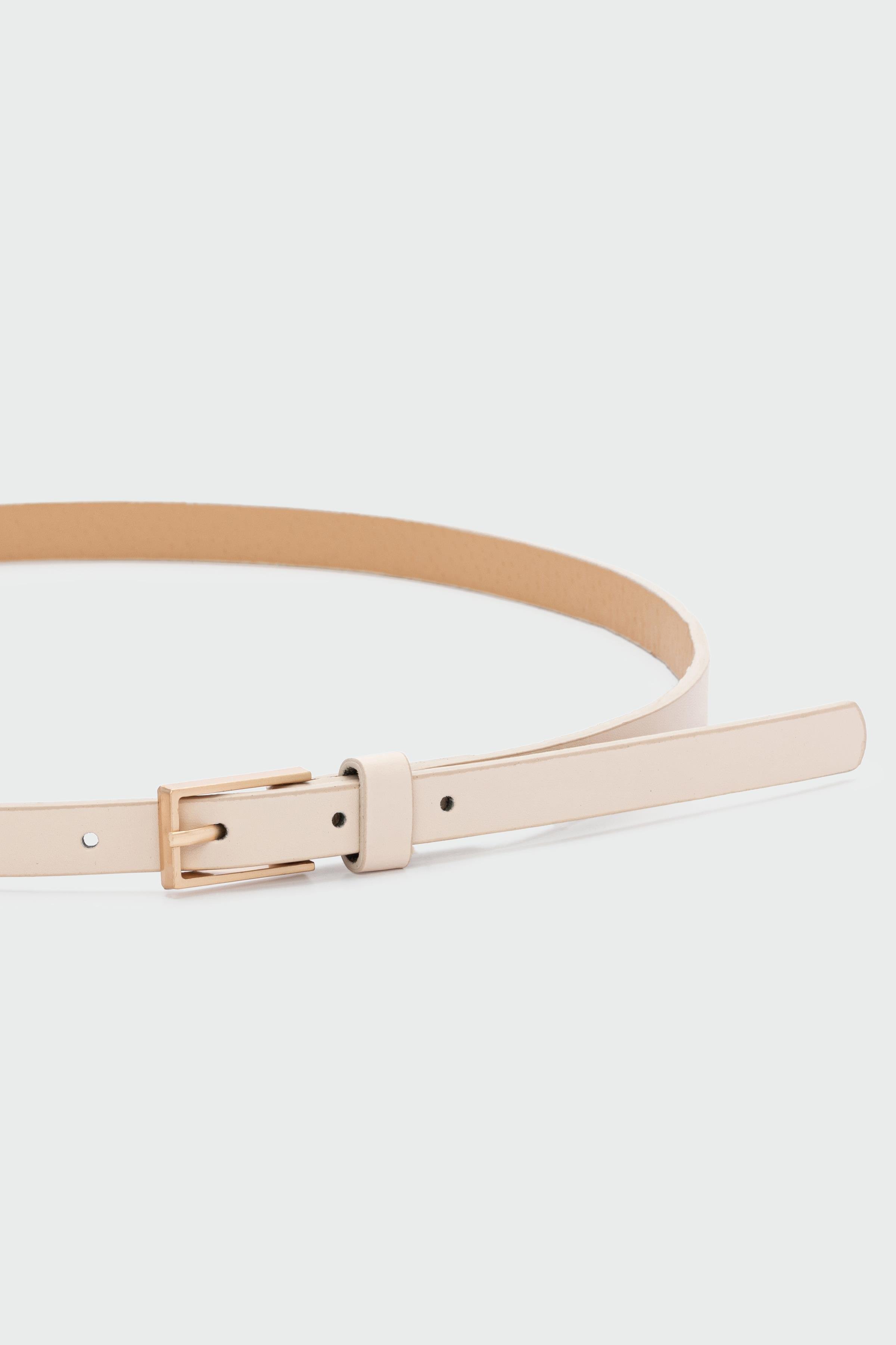Dikdörtgen İnce Suni Deri Kemer Krem (shule008430)