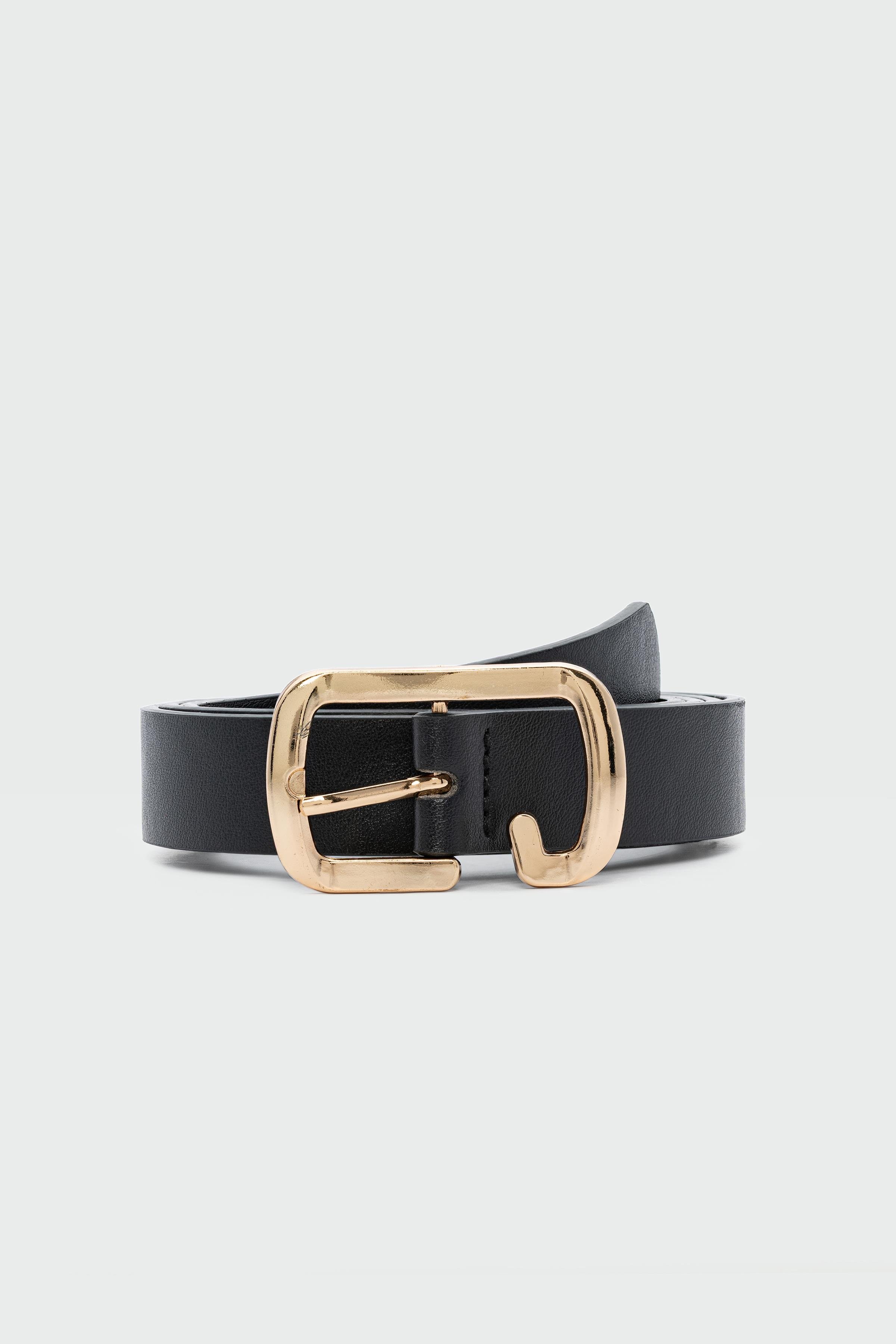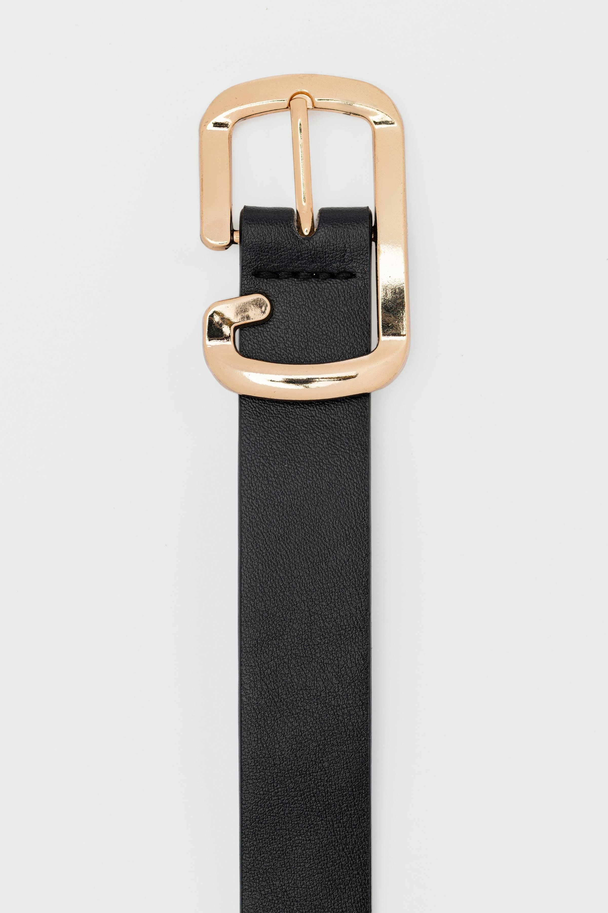 Dikdörtgen Kesik Suni Deri Kemer Siyah (shule008421)