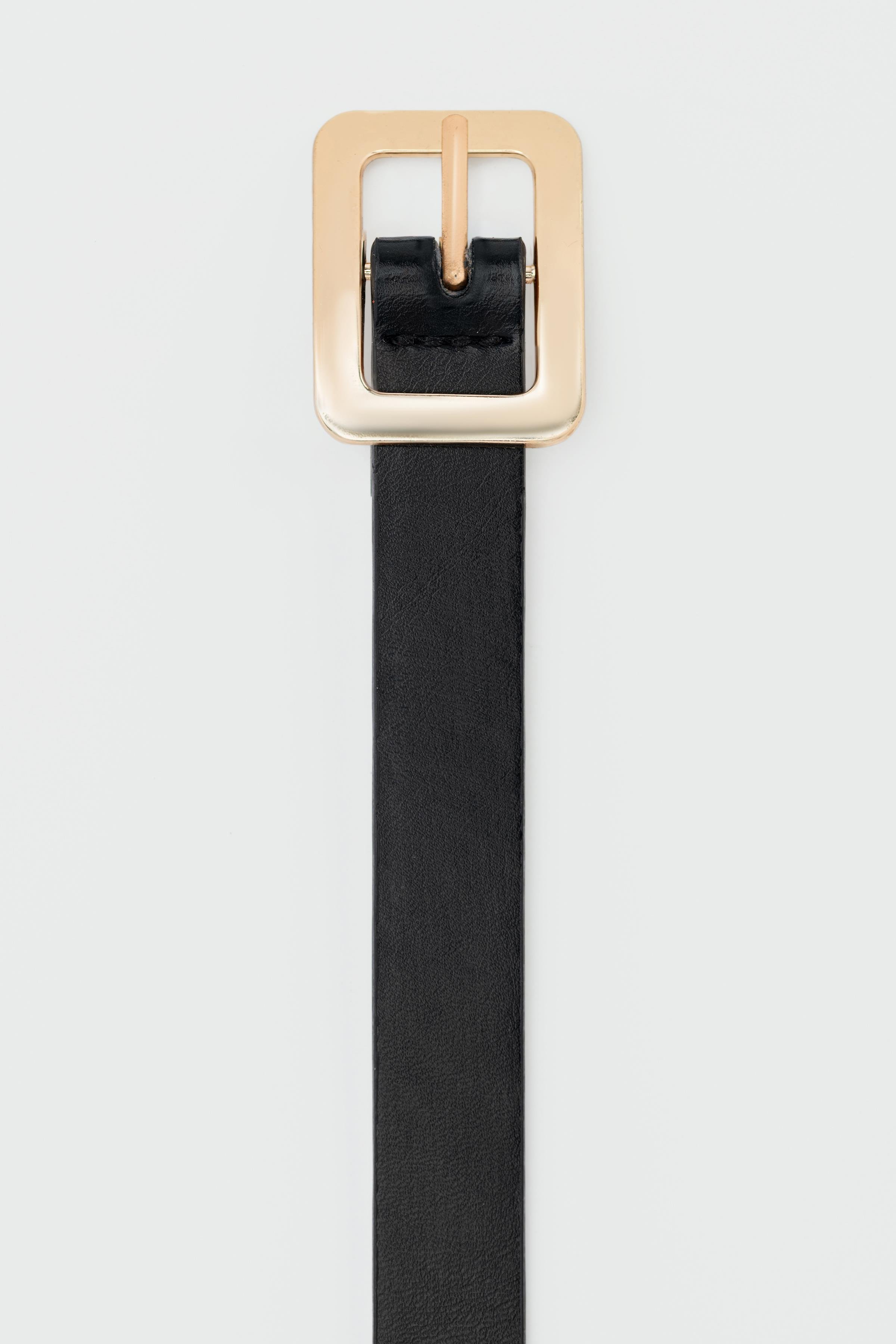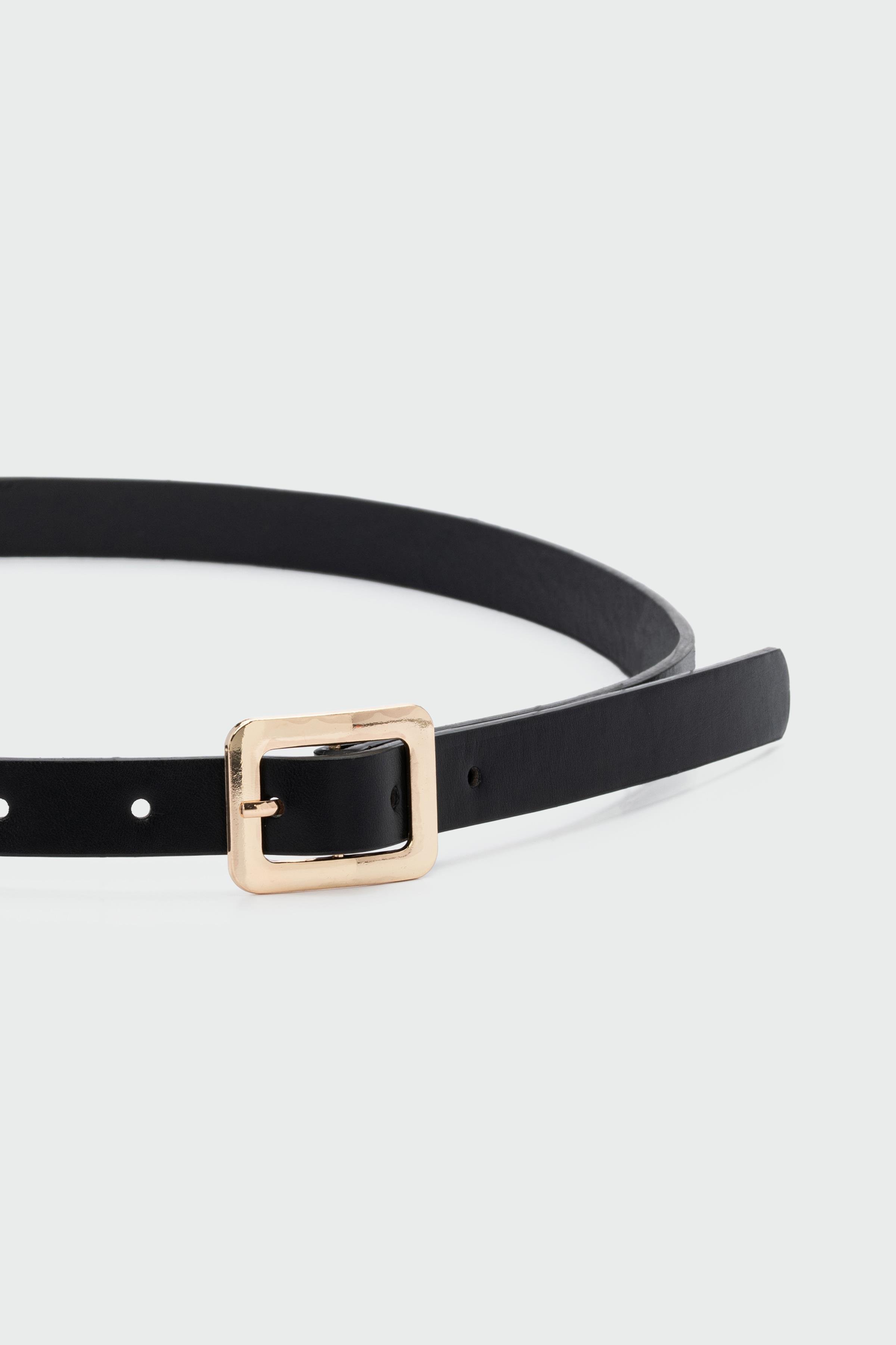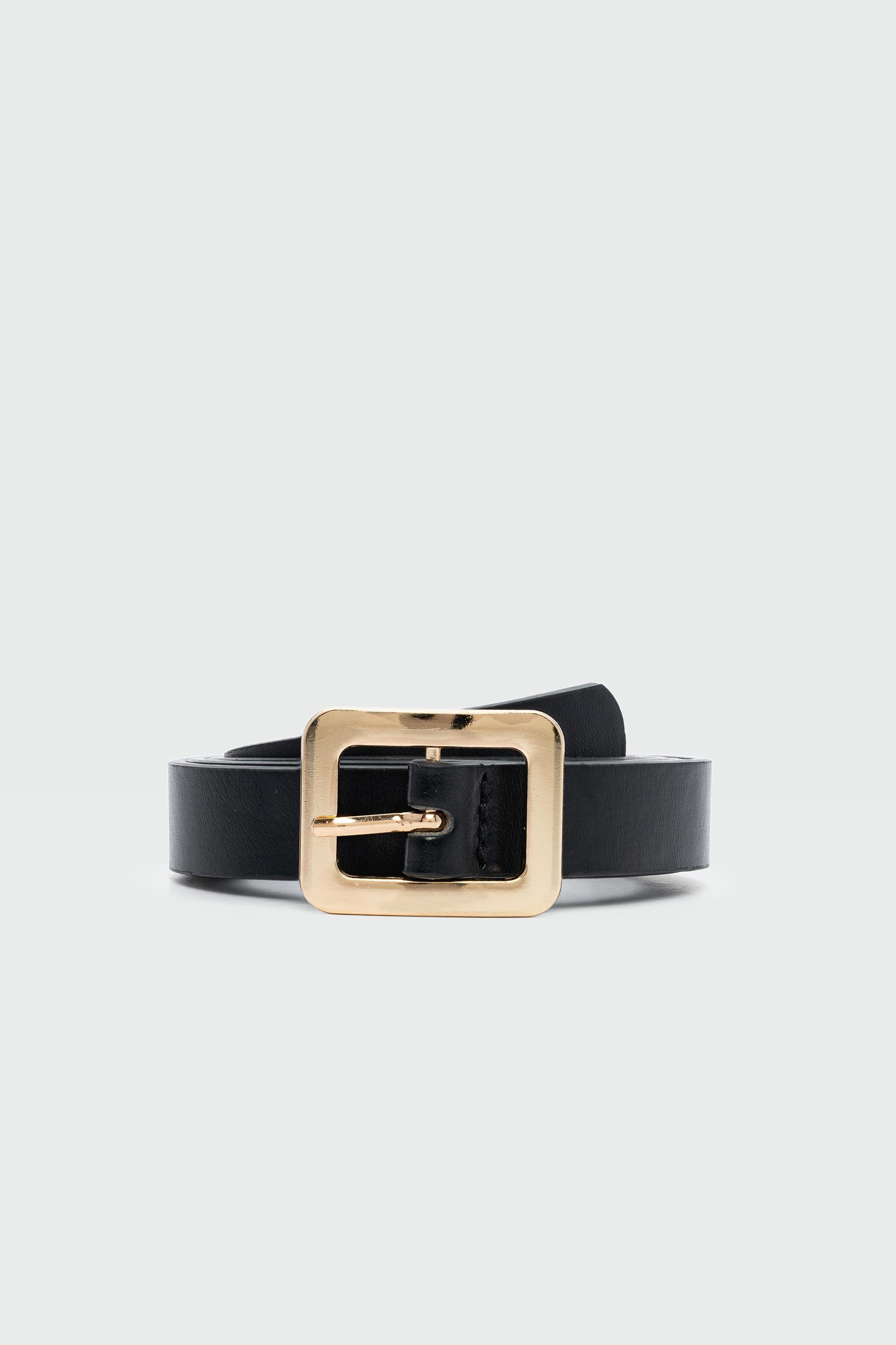 Dikdörtgen Tokalı İnce Suni Deri Kemer Siyah (shule008441)