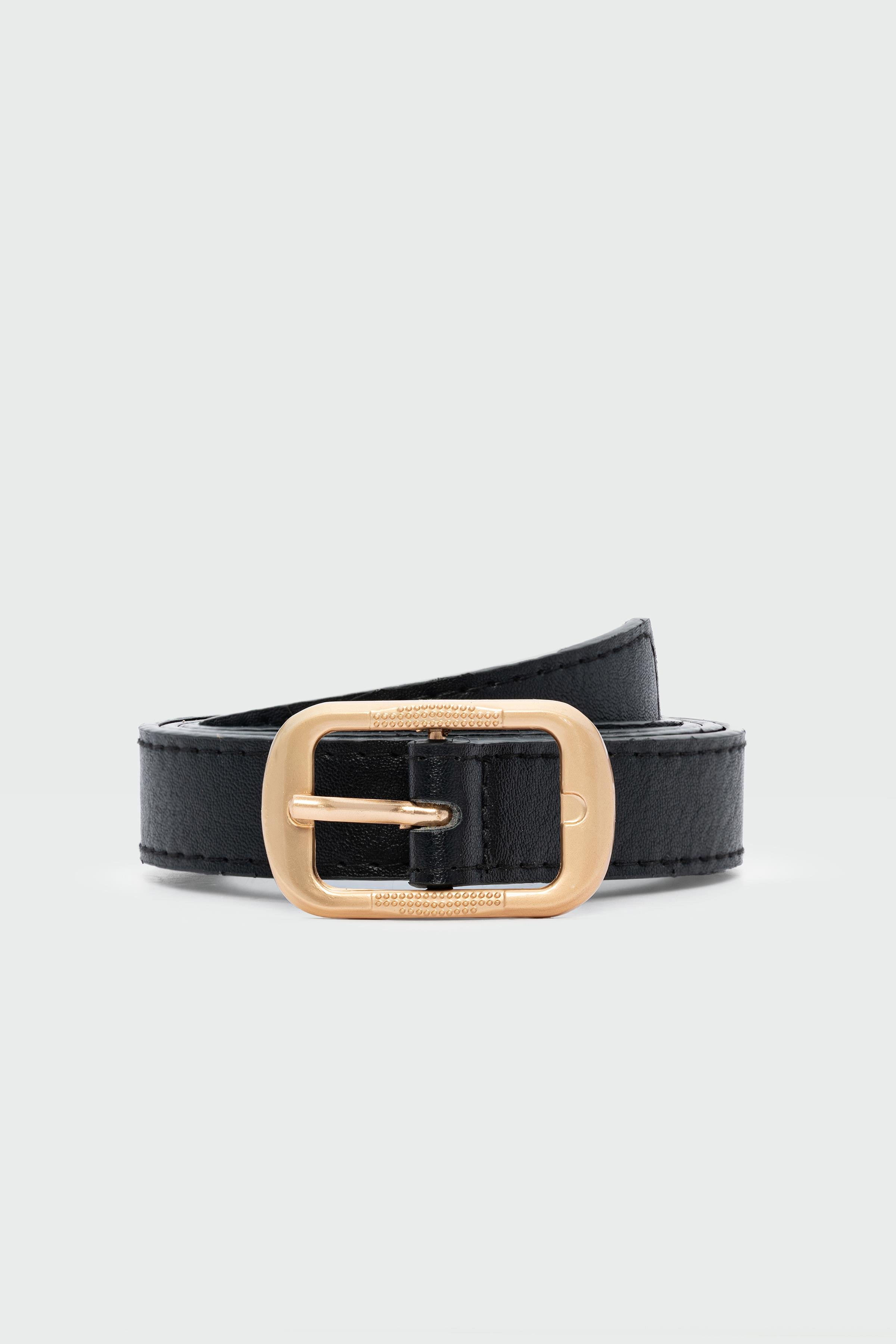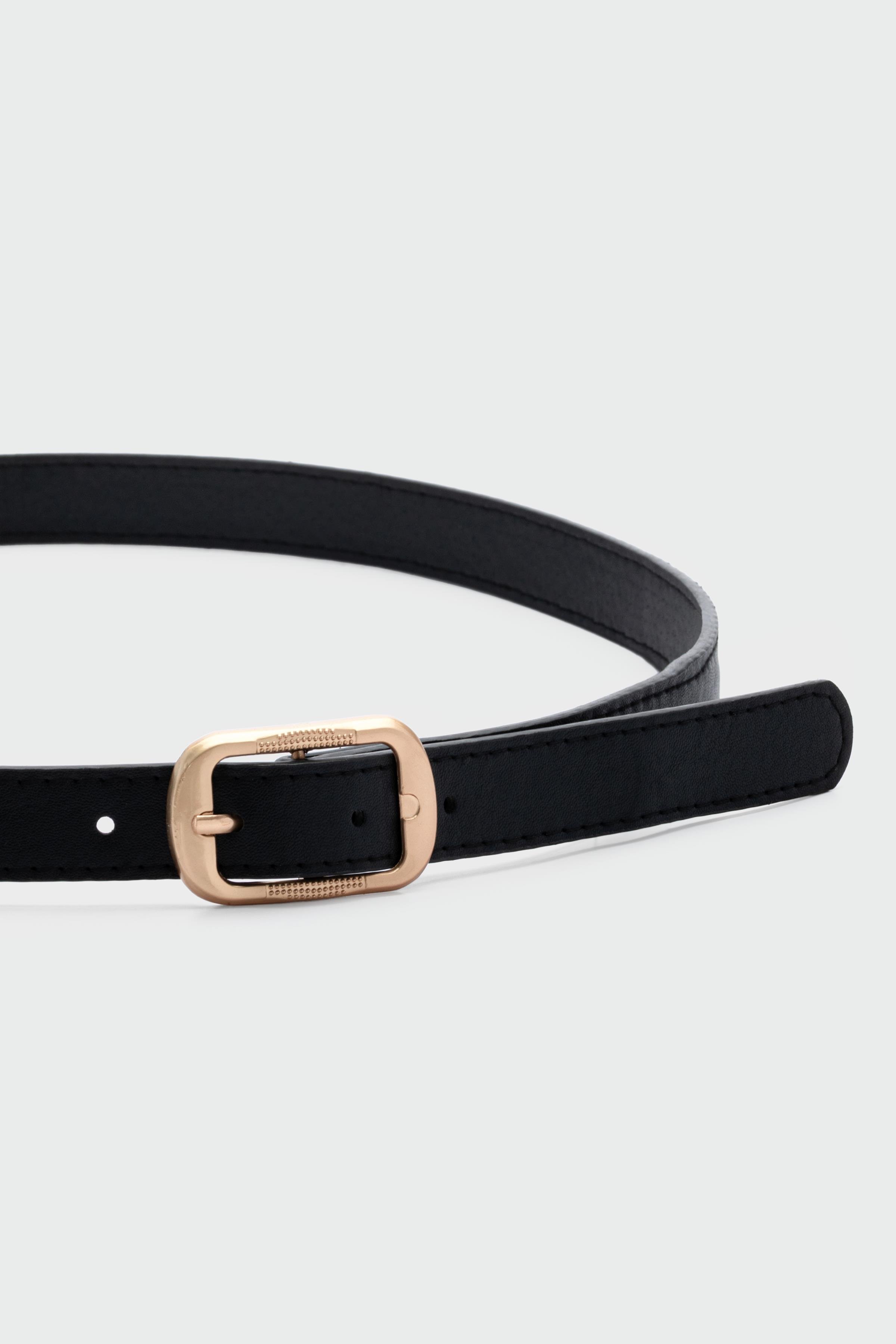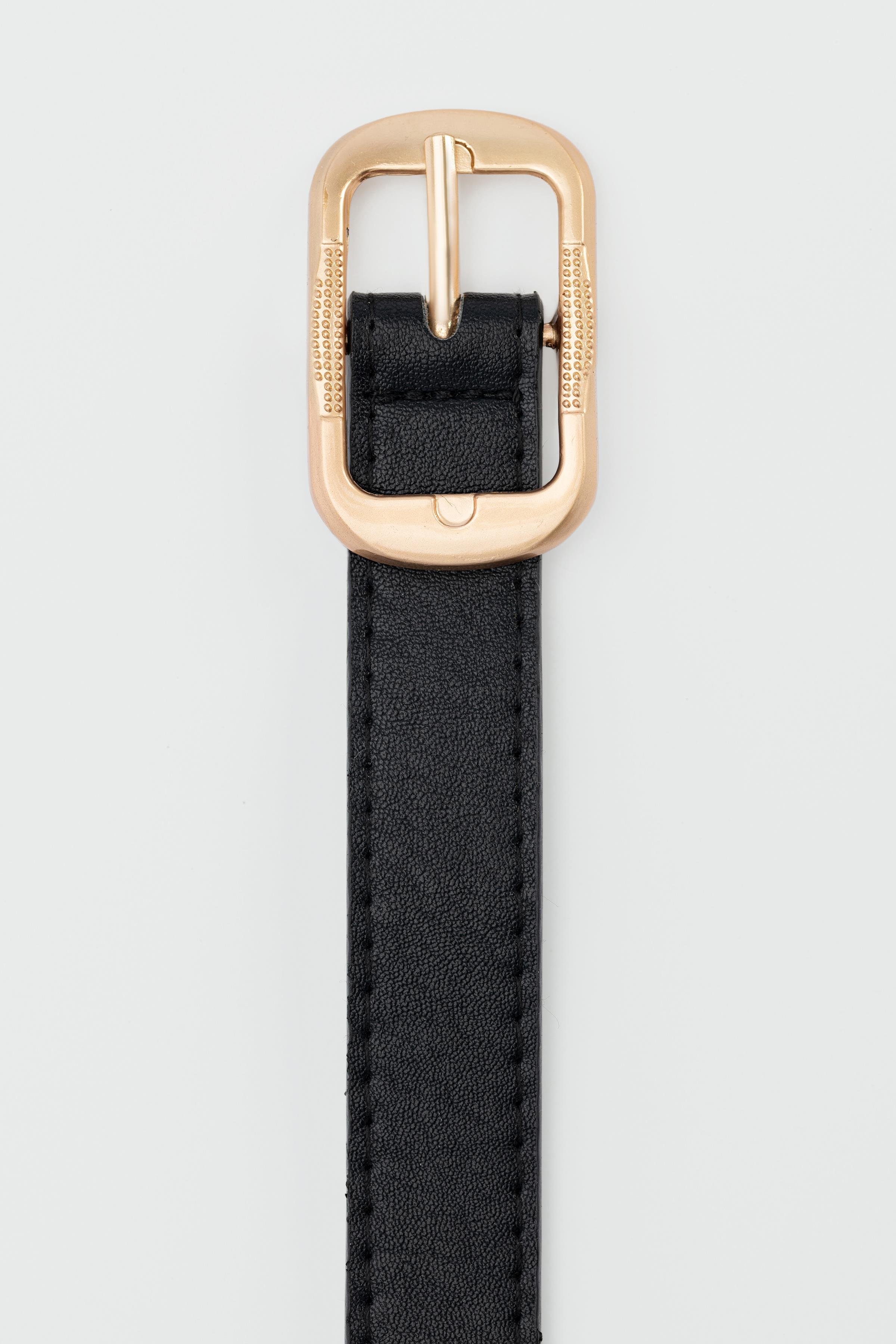Dikdörtgen Tokalı İşlemeli Suni Deri Kemer Siyah