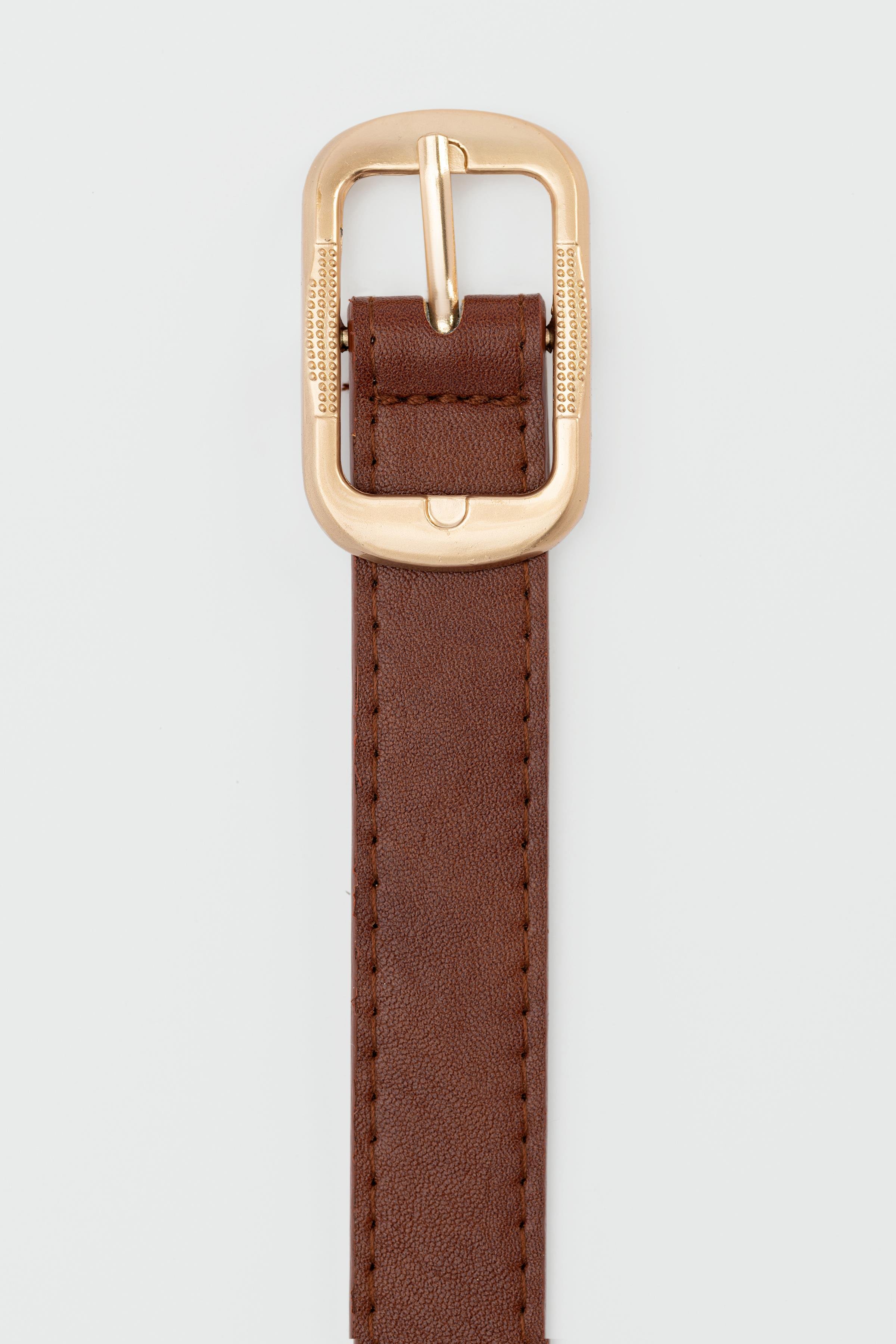 Dikdörtgen Tokalı İşlemeli Suni Deri Kemer Taba (shule008446)