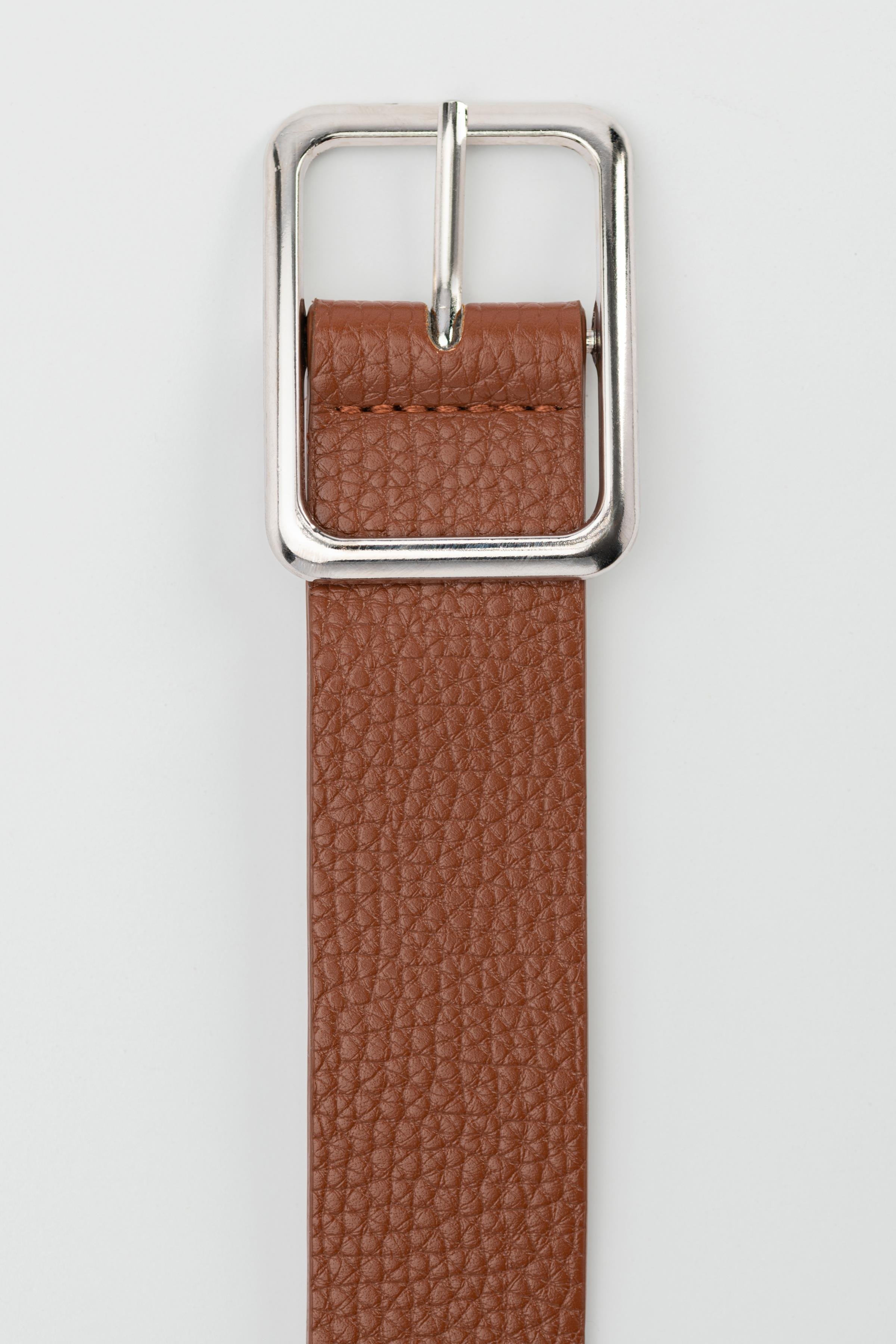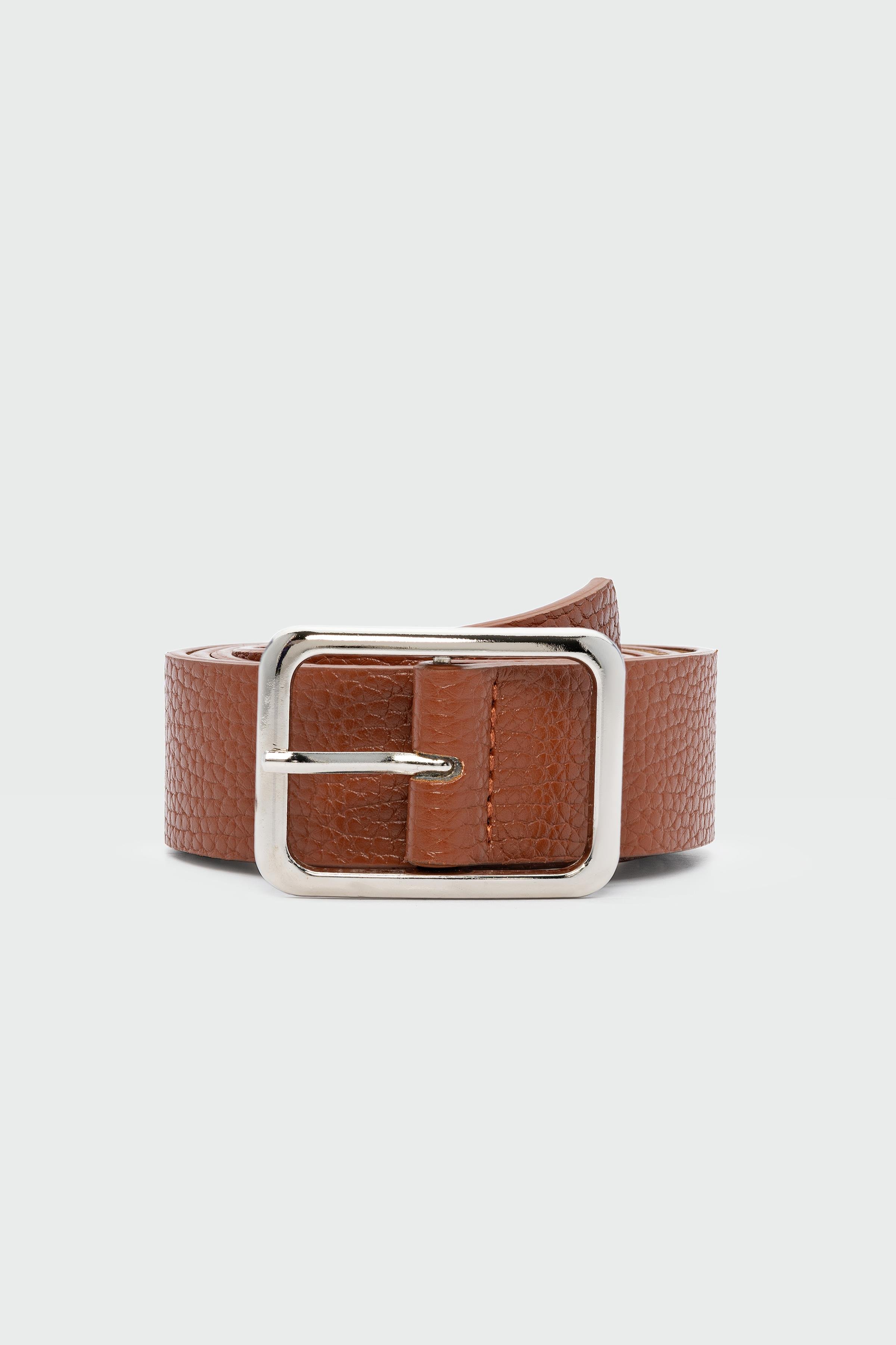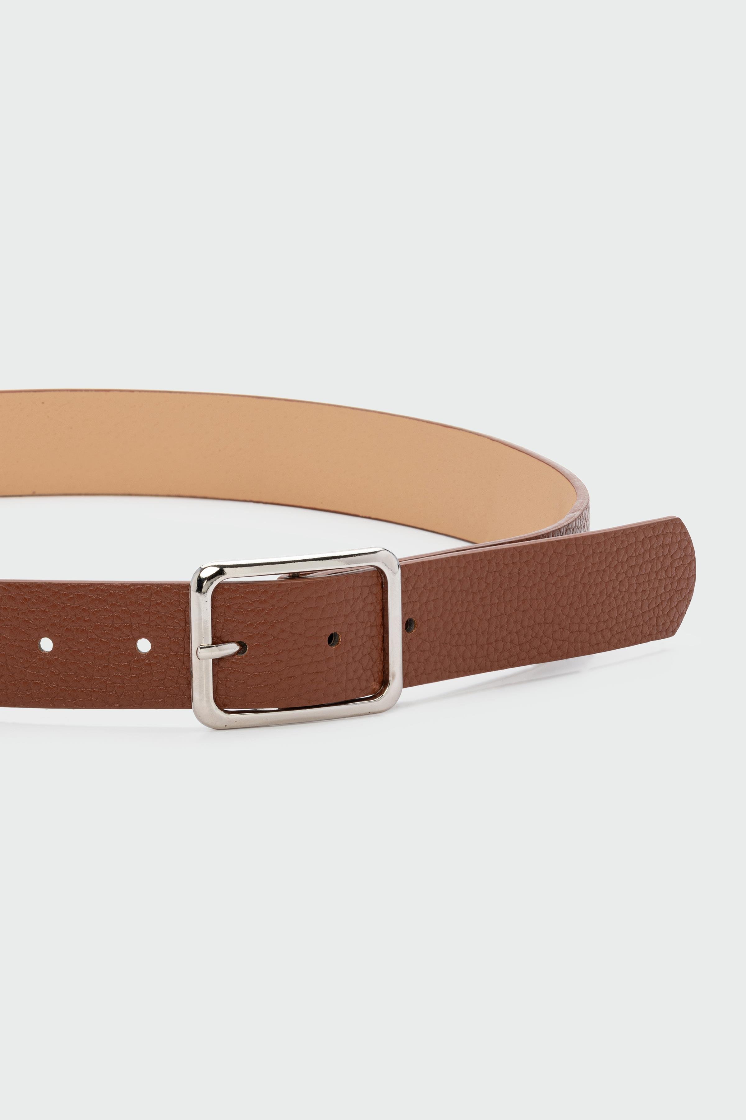 Dikdörtgen Tokalı Tırtıklı Suni Deri Kemer Taba (shule008447)