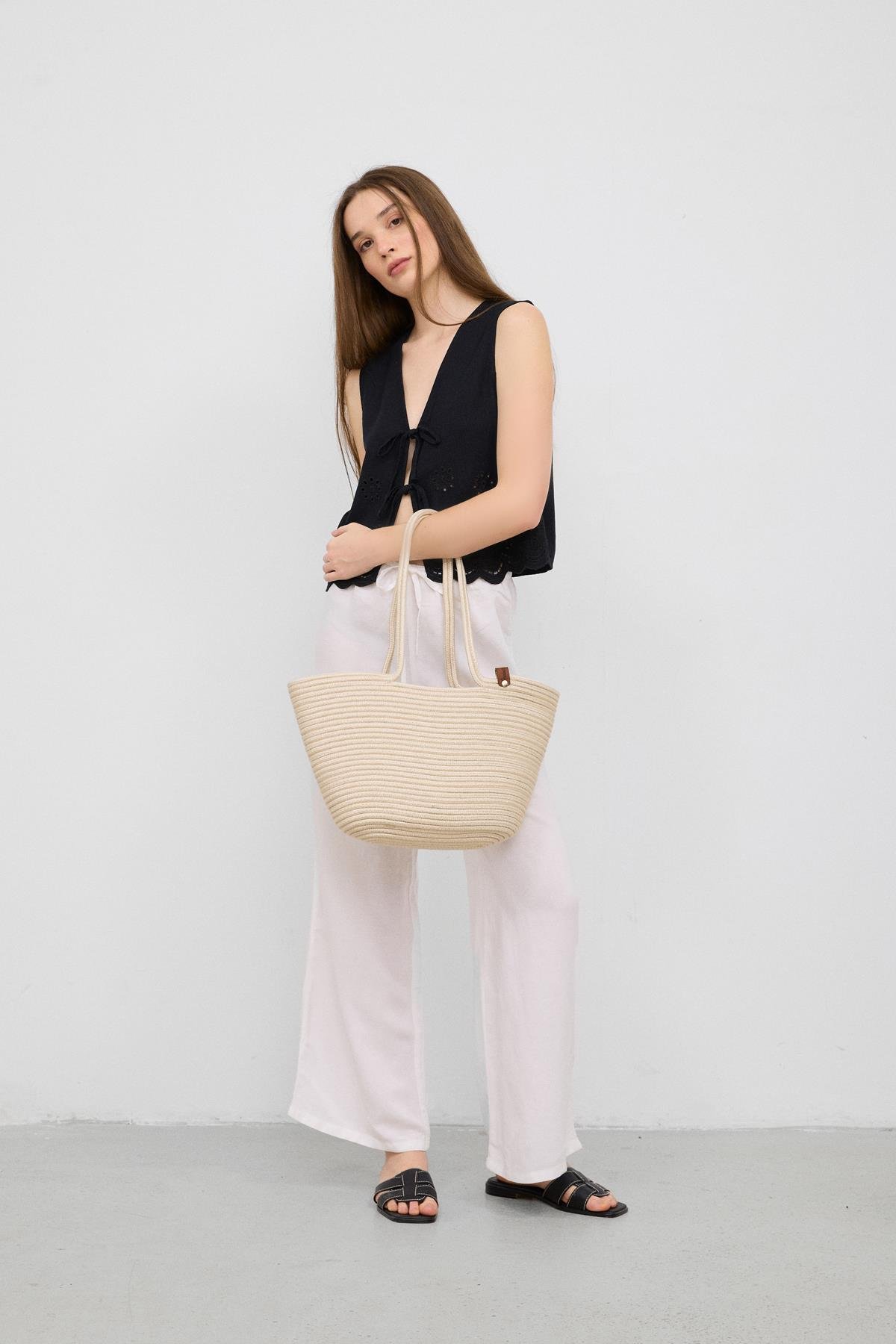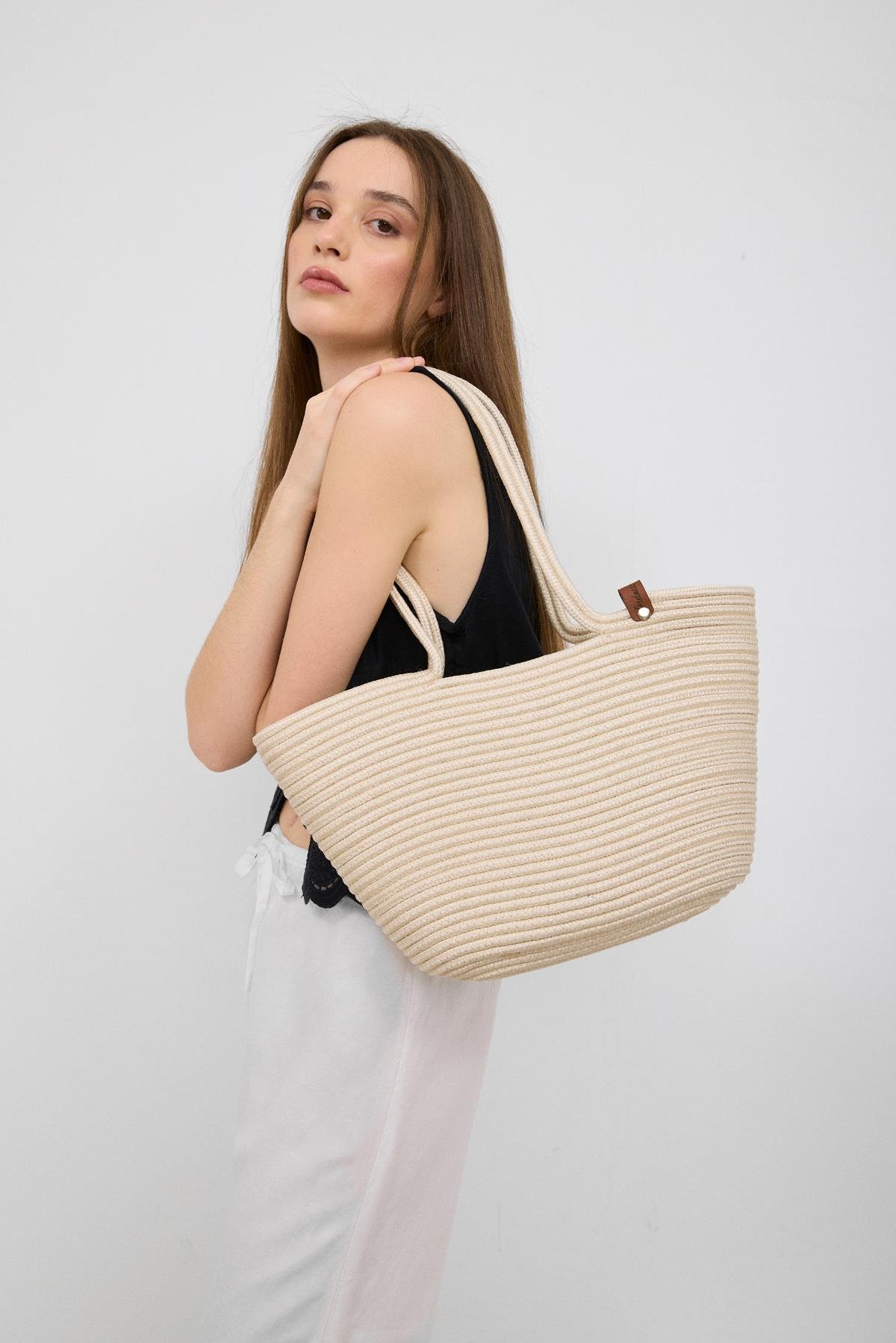 Dorena Handmade Hasır Omuz Çantası Krem (shule008323)