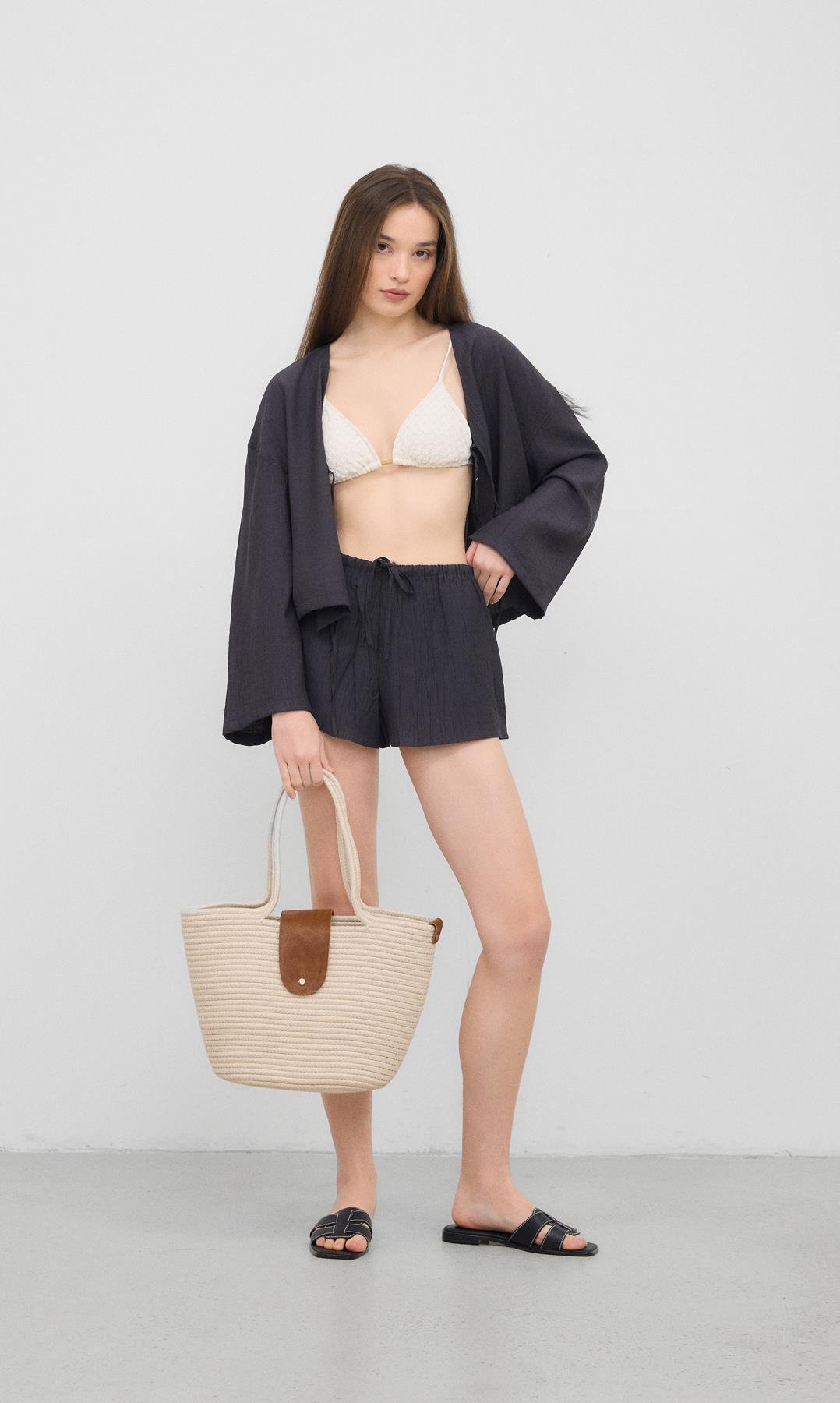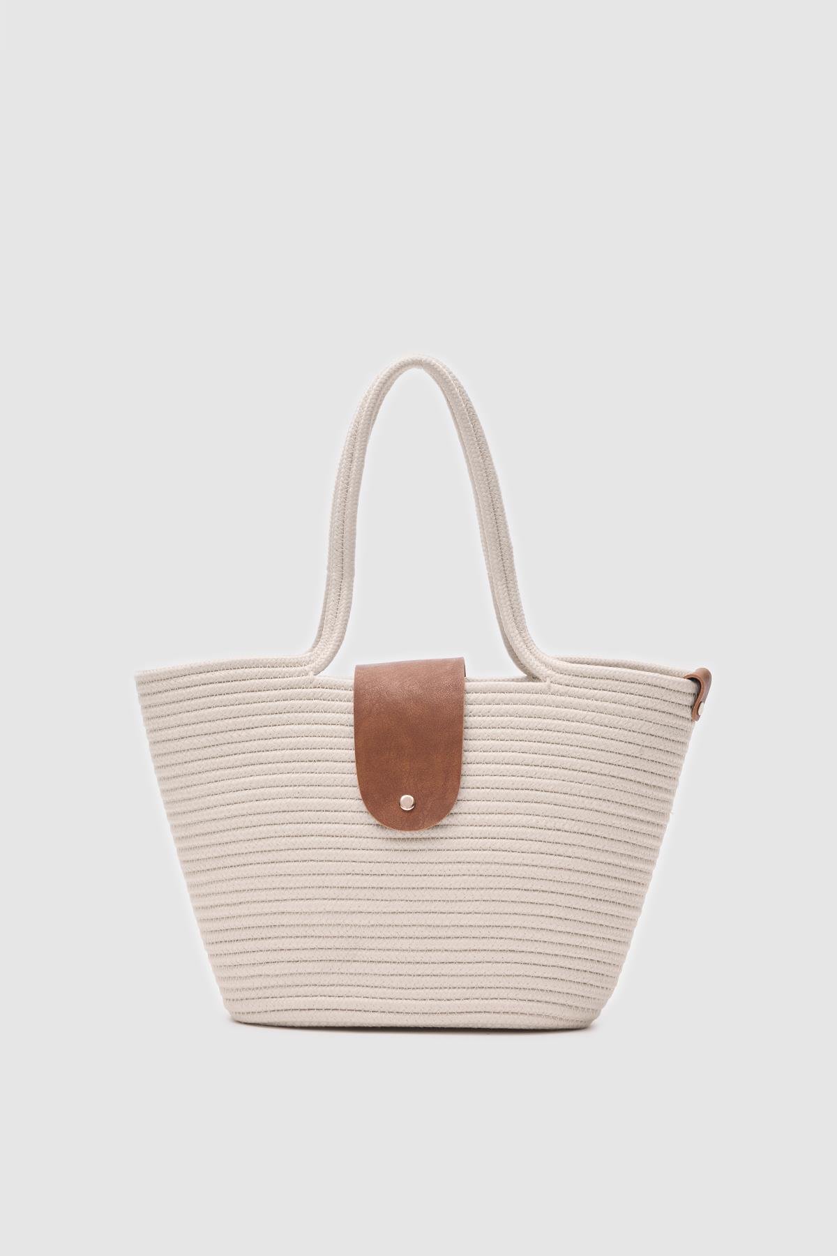 Duffy Kapaklı Handmade Hasır Tote Çanta Krem (shule008324)