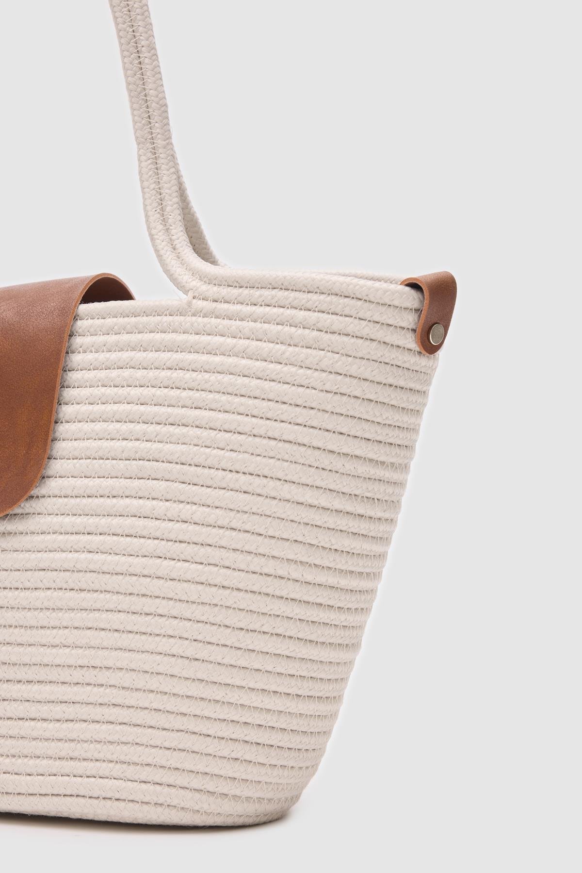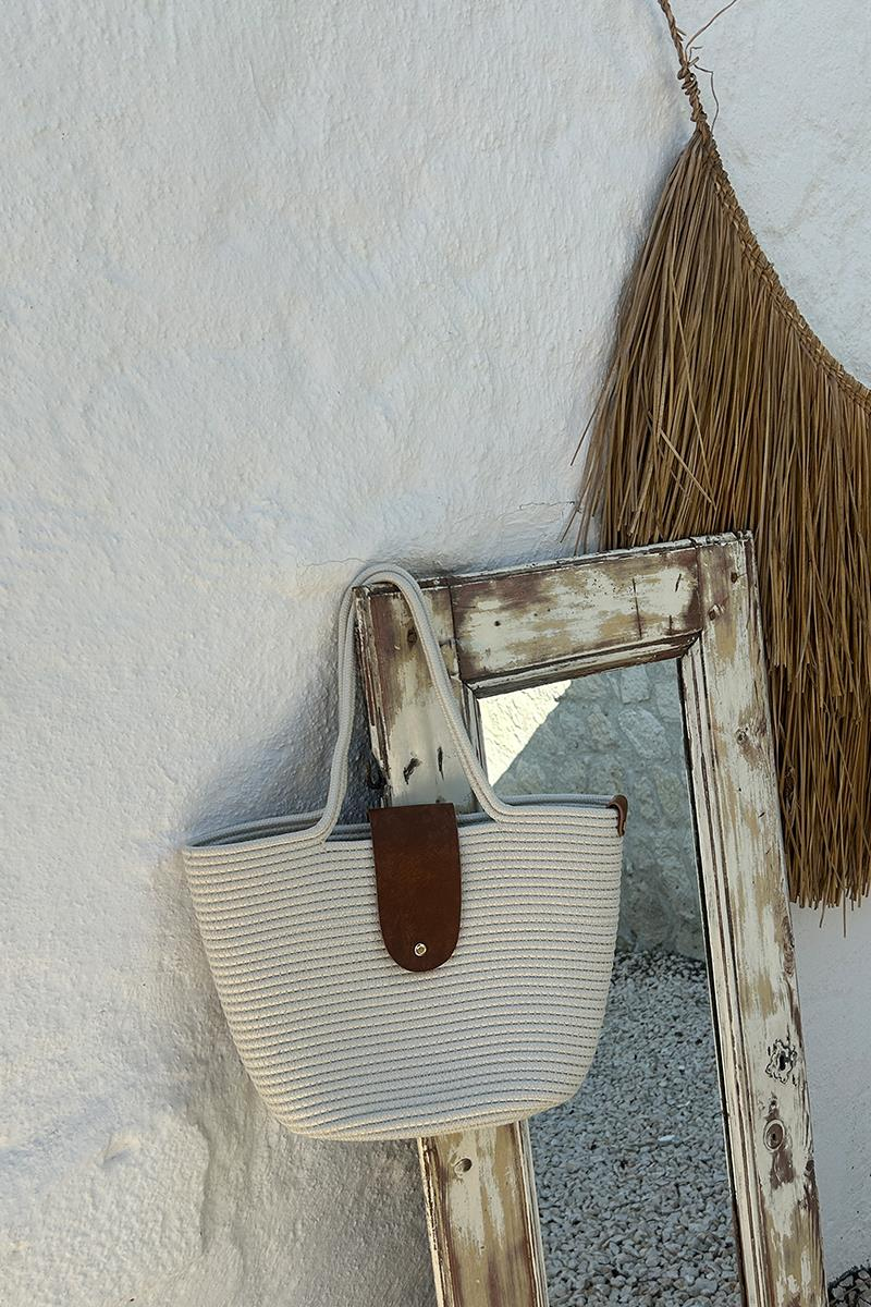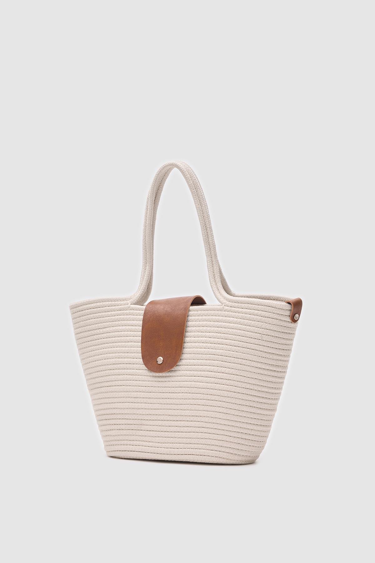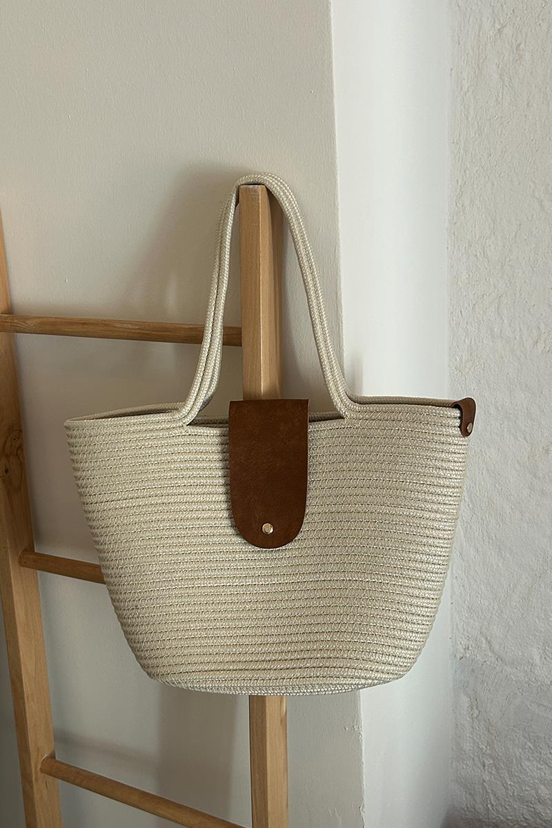 Duffy Kapaklı Handmade Hasır Tote Çanta Krem