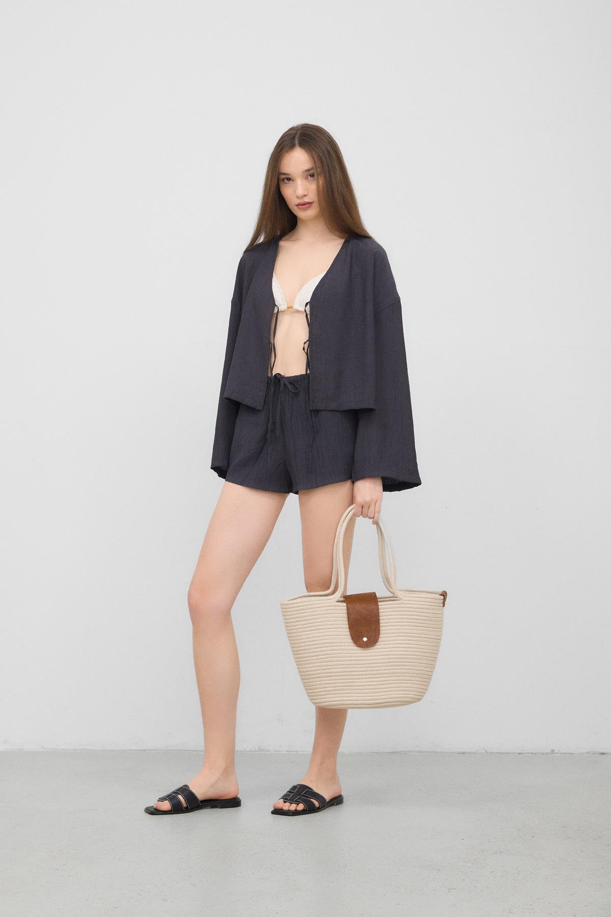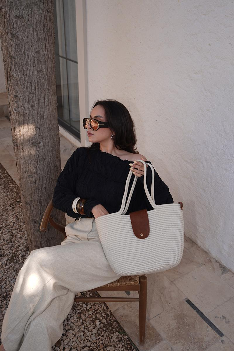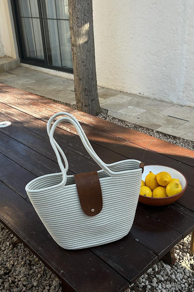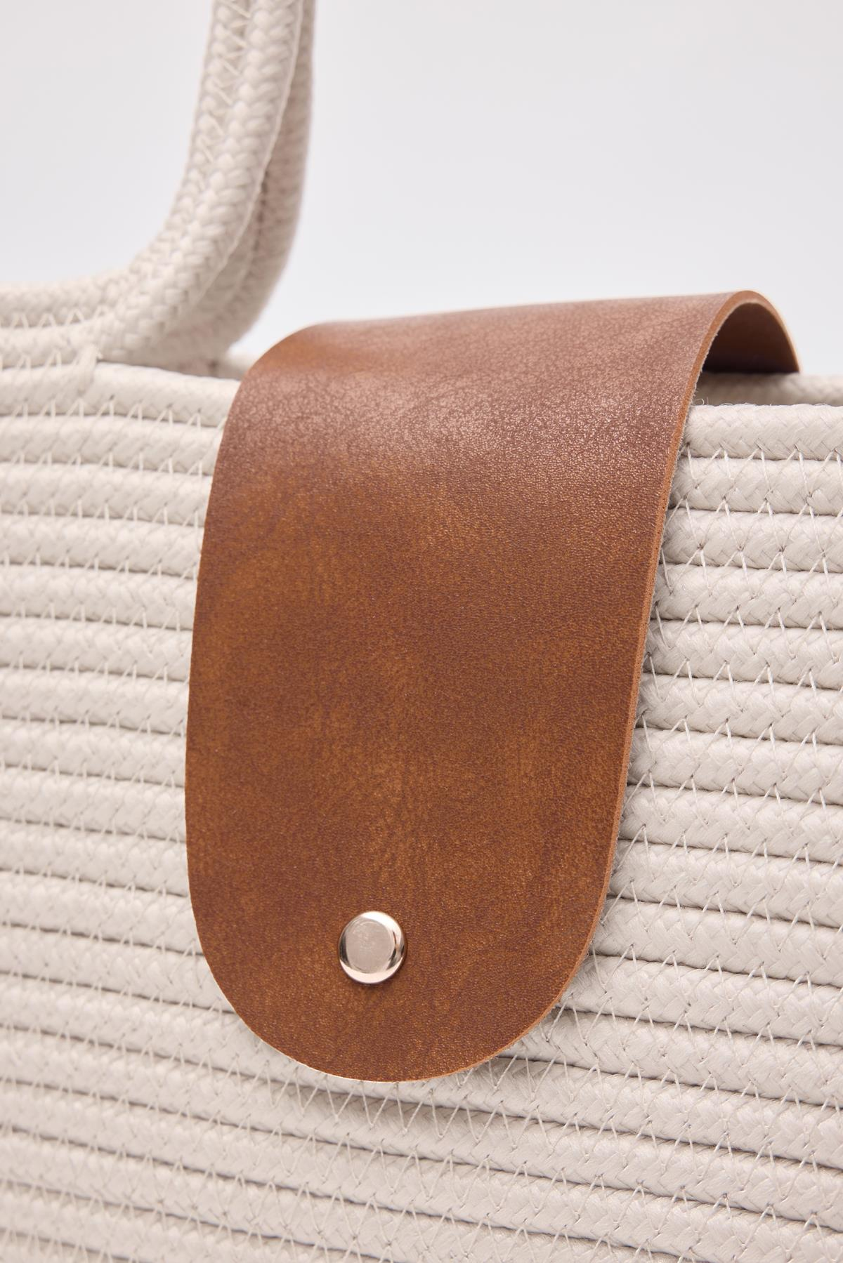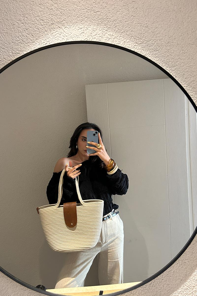 Duffy Kapaklı Handmade Hasır Tote Çanta Krem