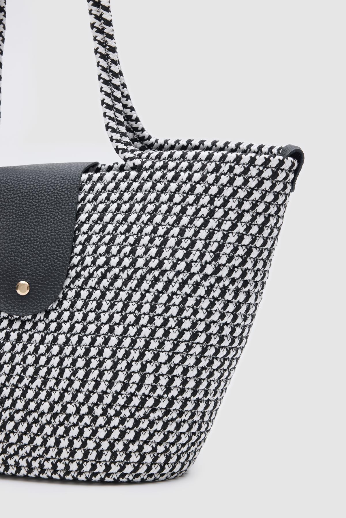 Duffy Kapaklı Handmade Hasır Tote Çanta Siyah