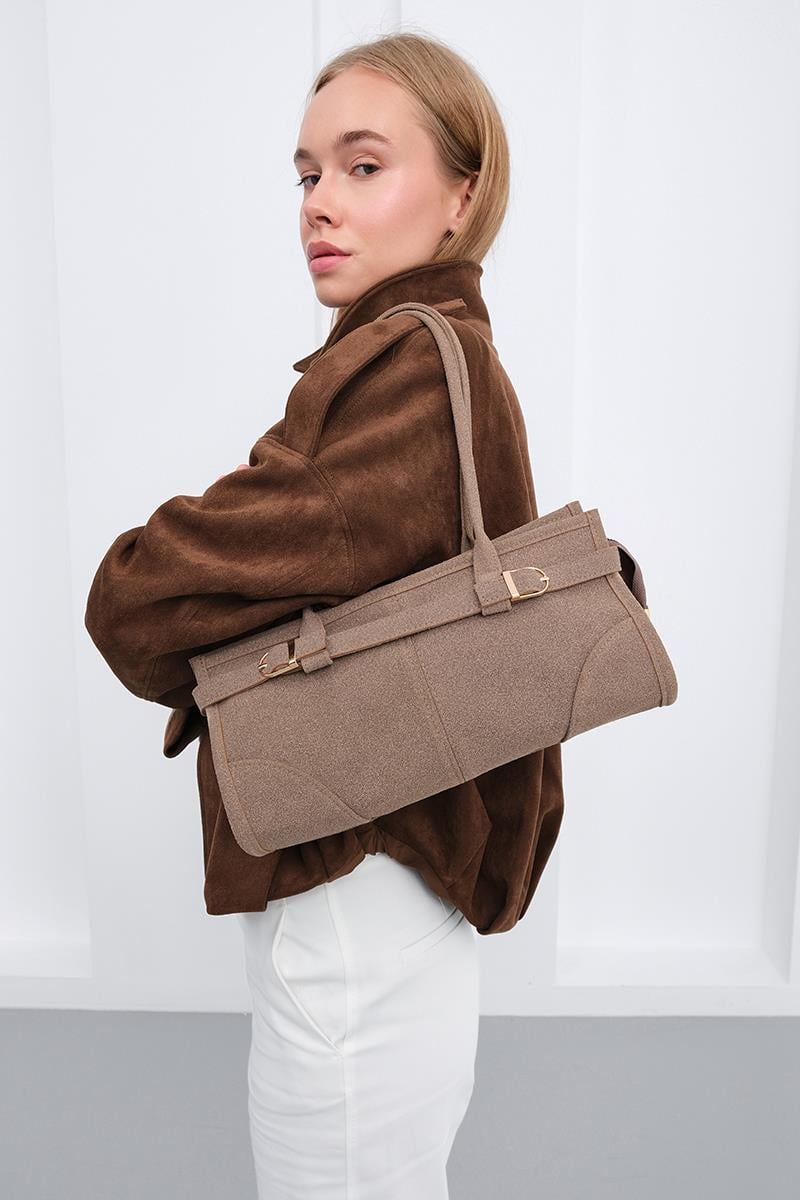 Enyola Vintage Süet Çanta Vizon (shule008487)