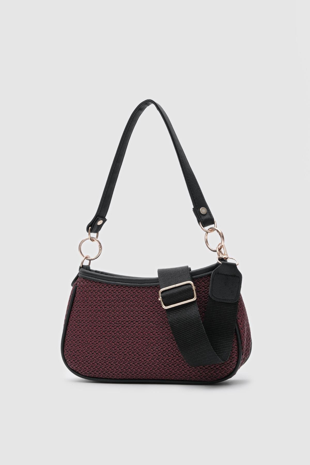 Farme Hasır Görünümlü Baget Çanta Bordo (shule008188)