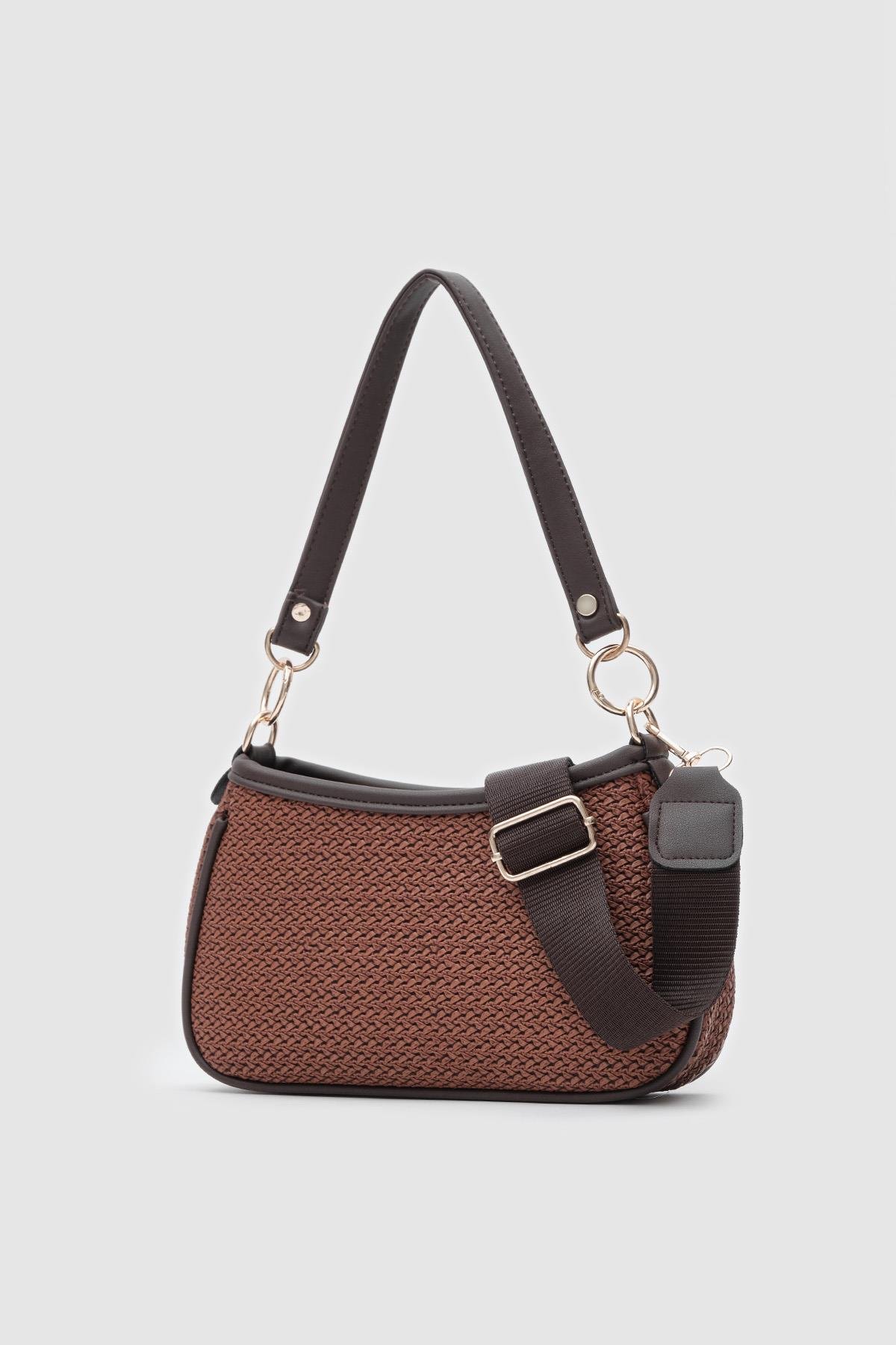 Farme Hasır Görünümlü Baget Çanta Tarçın