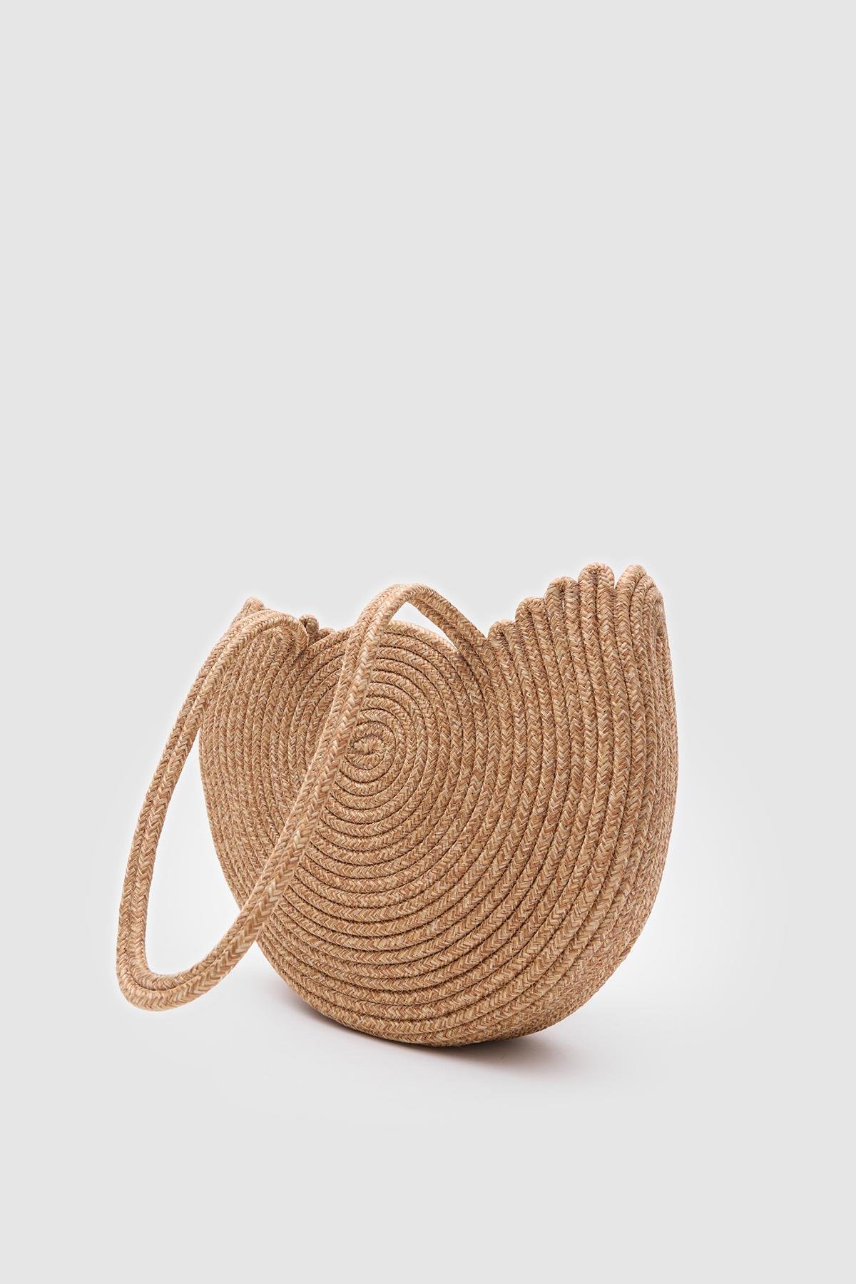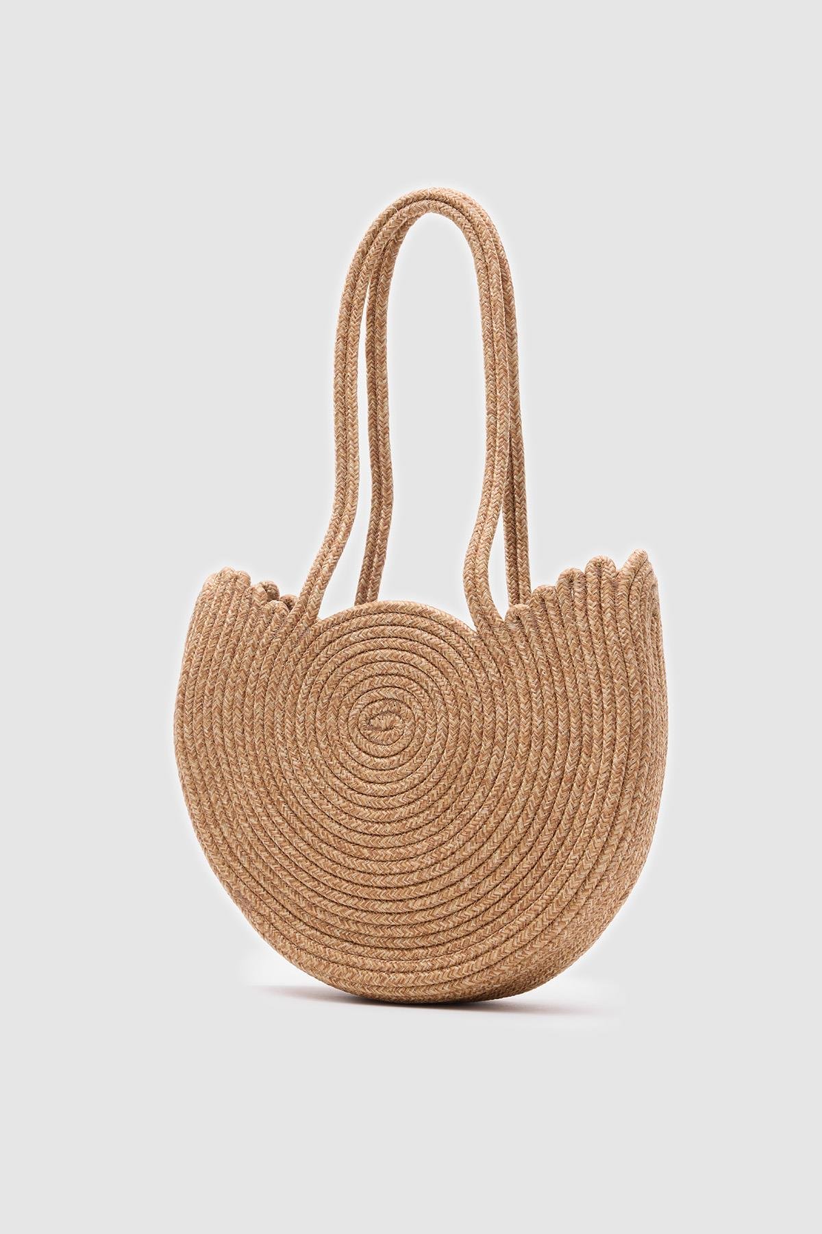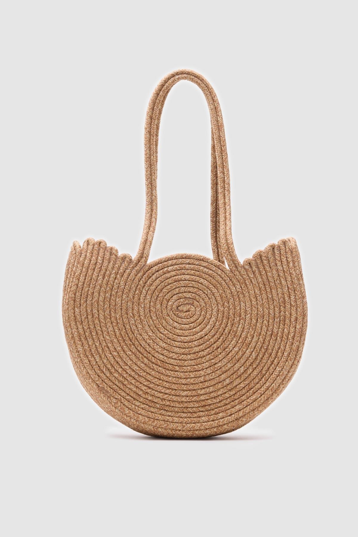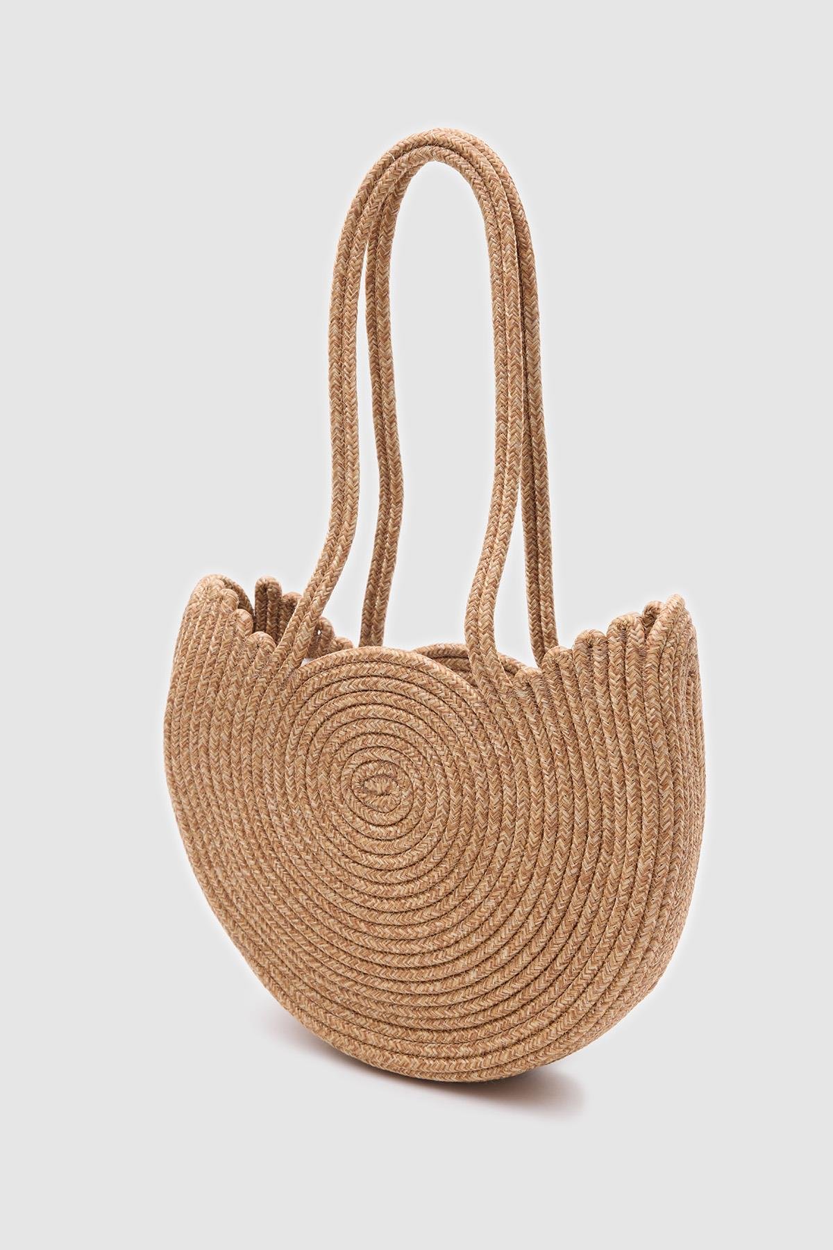 Gusta Medium Hasır Omuz Çantası Vizon (shule008392)