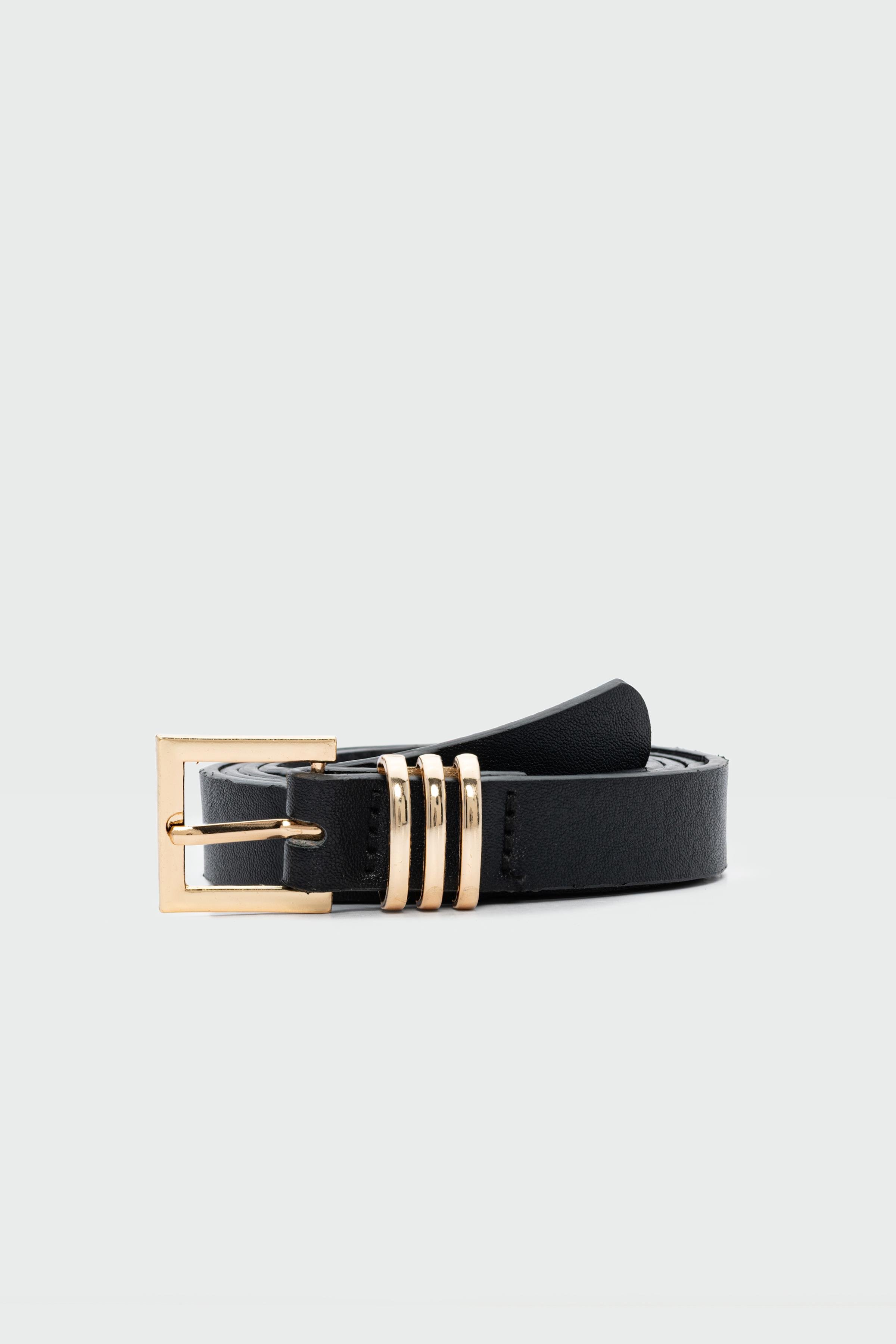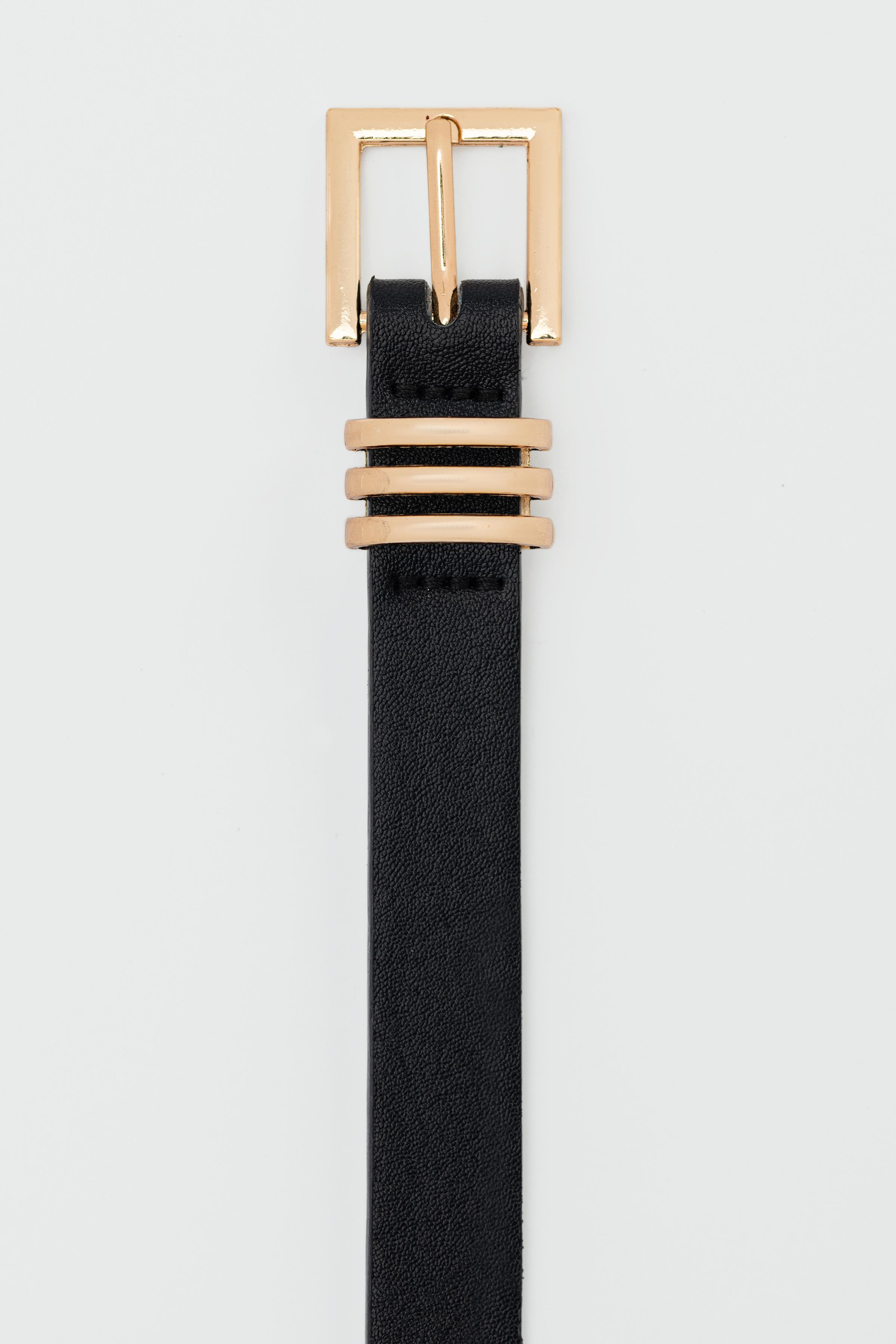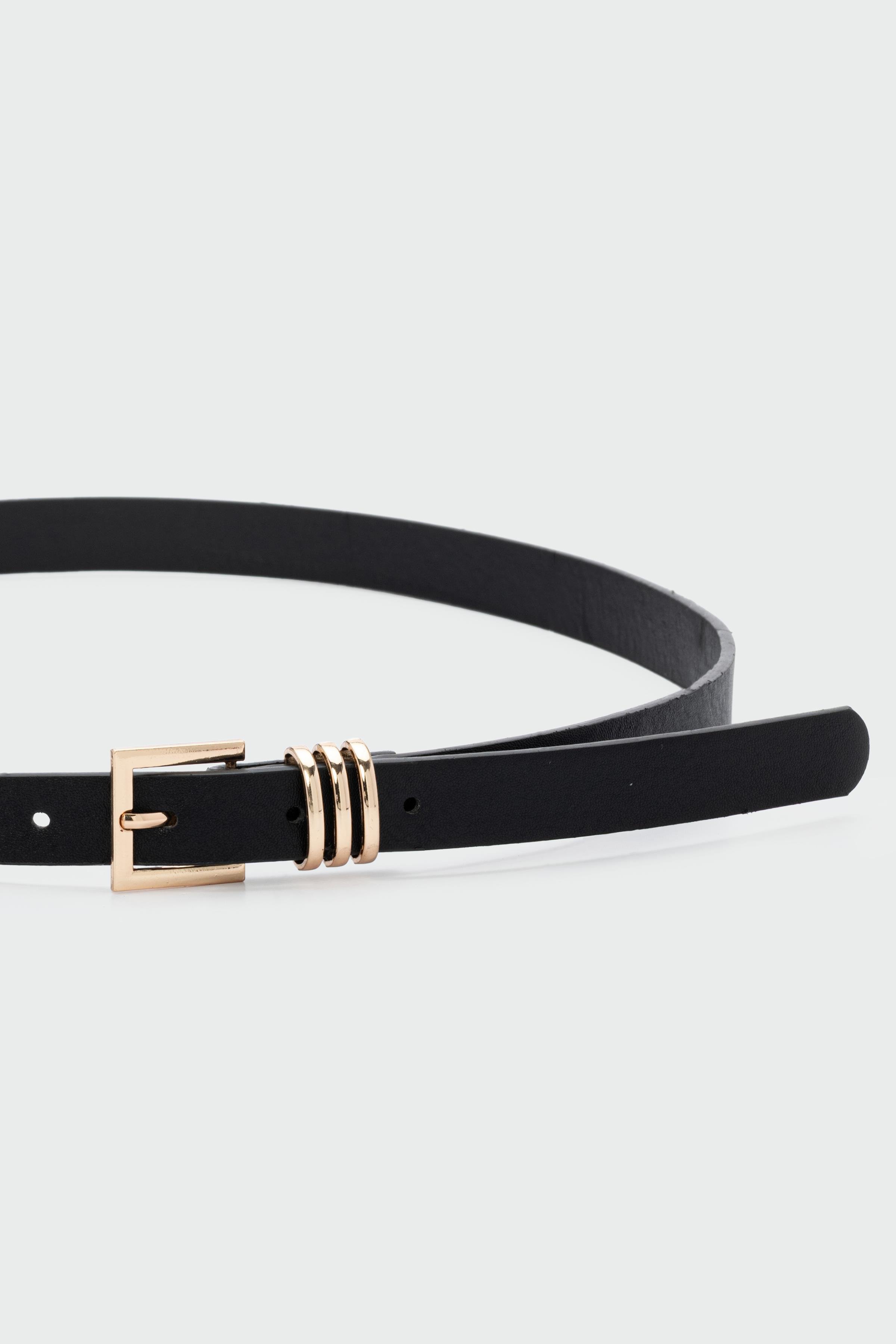 İnce Kare Tokalı Suni Deri Kemer Siyah