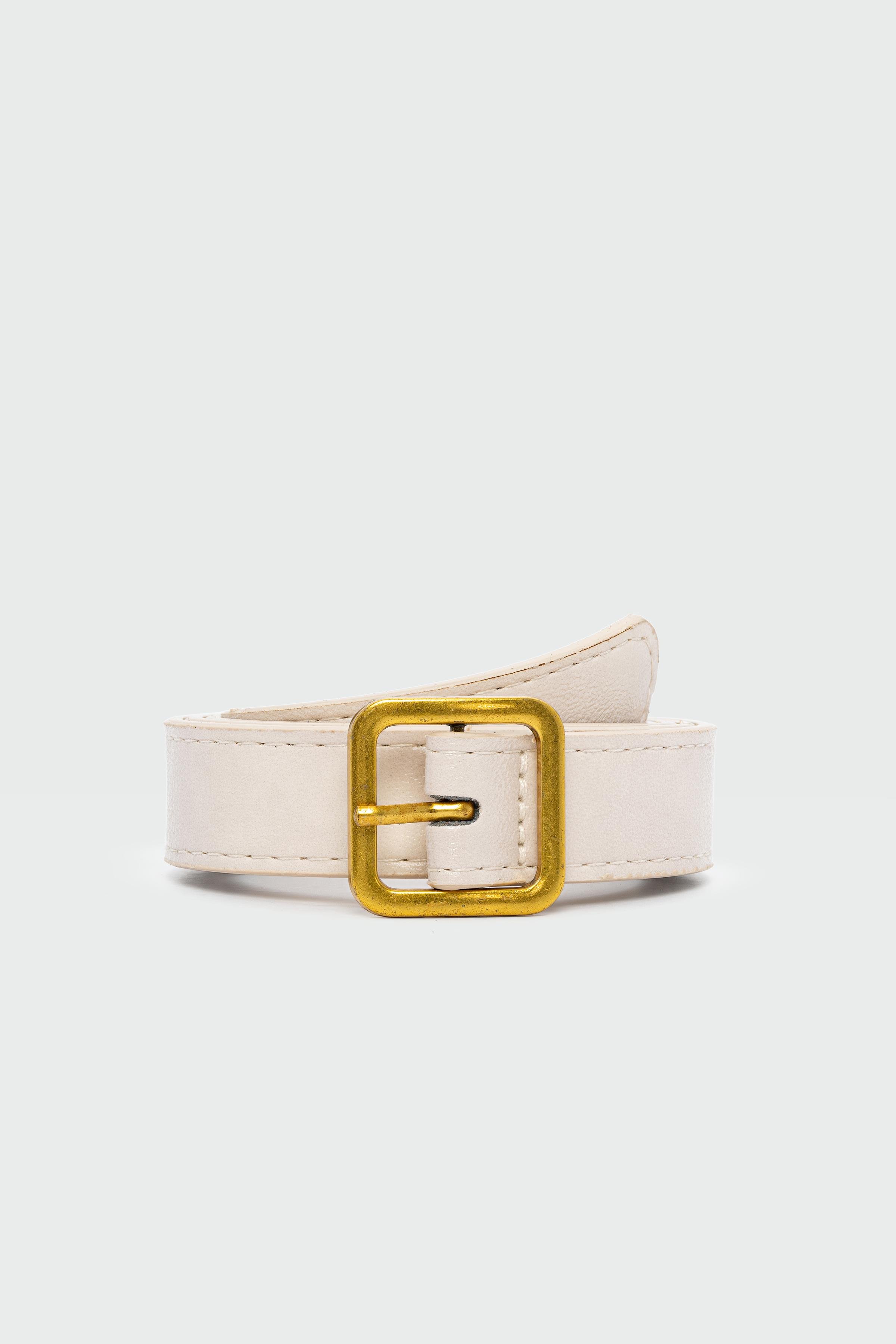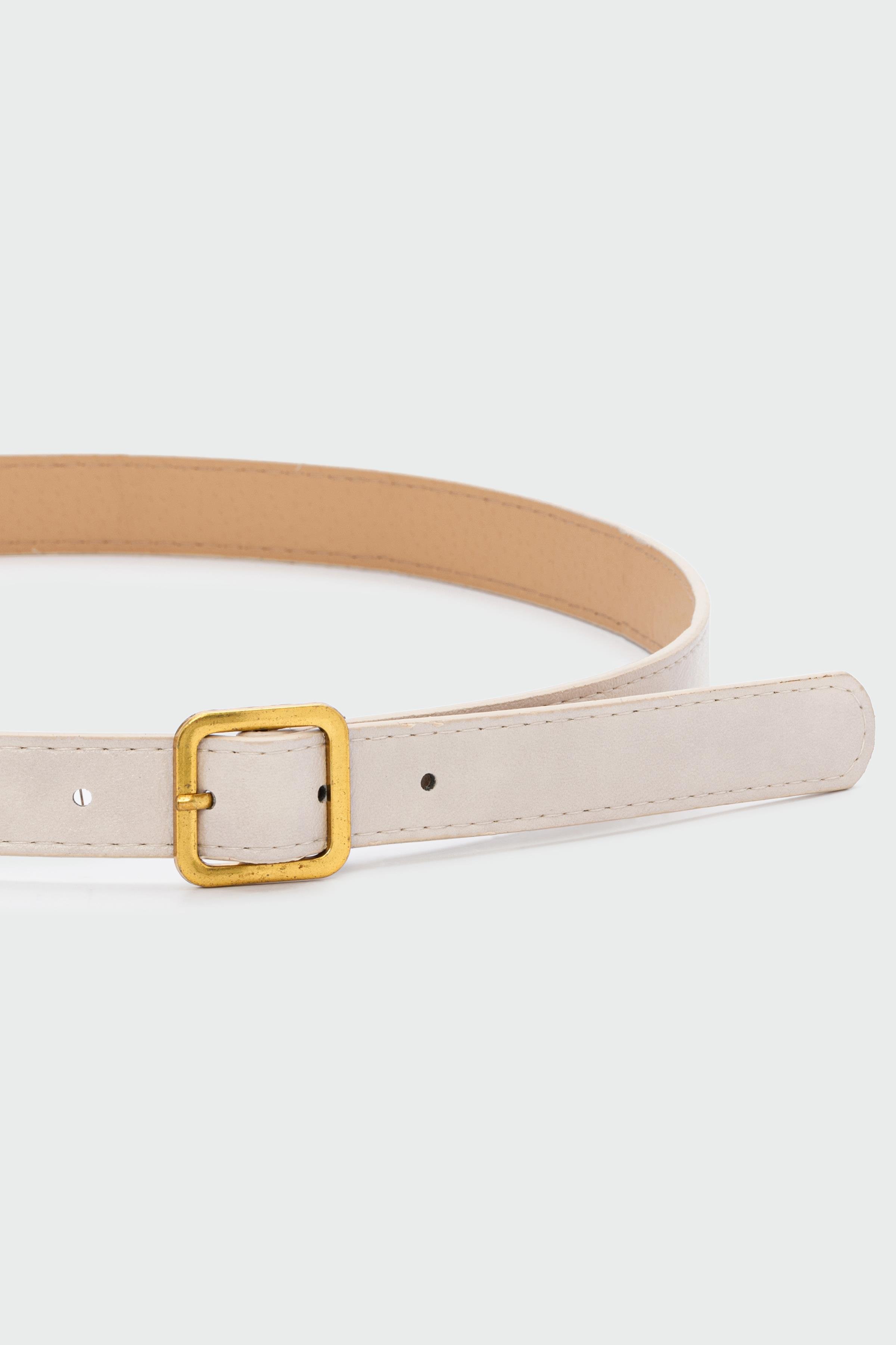 Kare Tokalı Suni Deri Kemer Krem (shule008449)