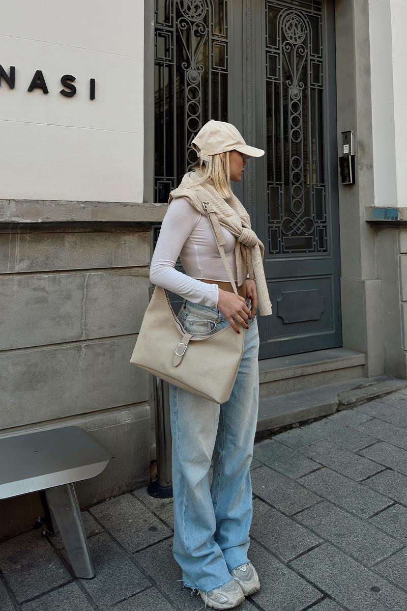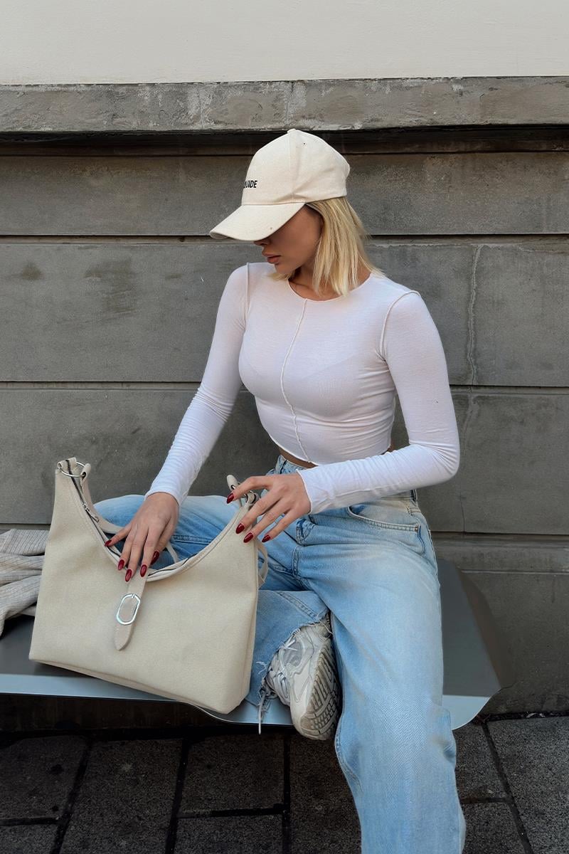 Marilla Süet Vintage Omuz Çantası Krem (shule008267)