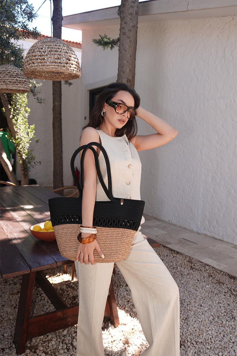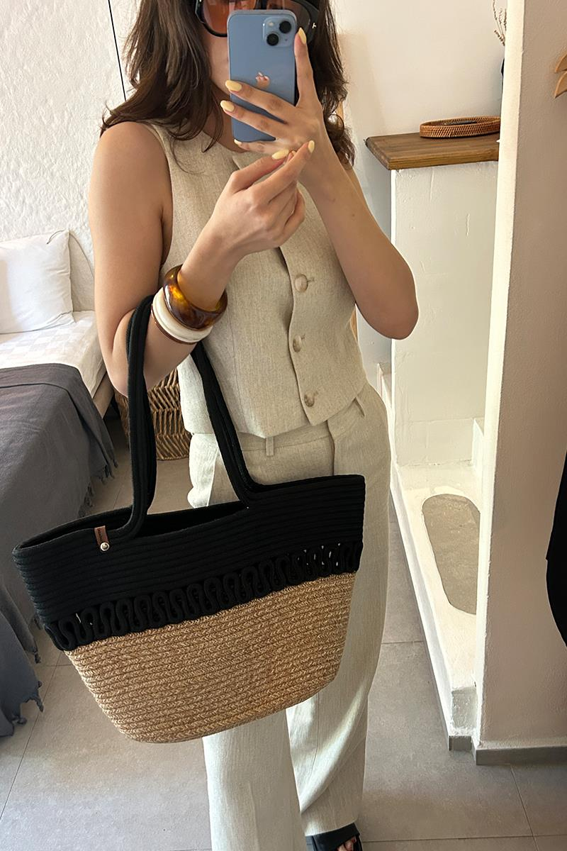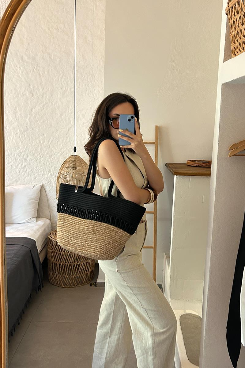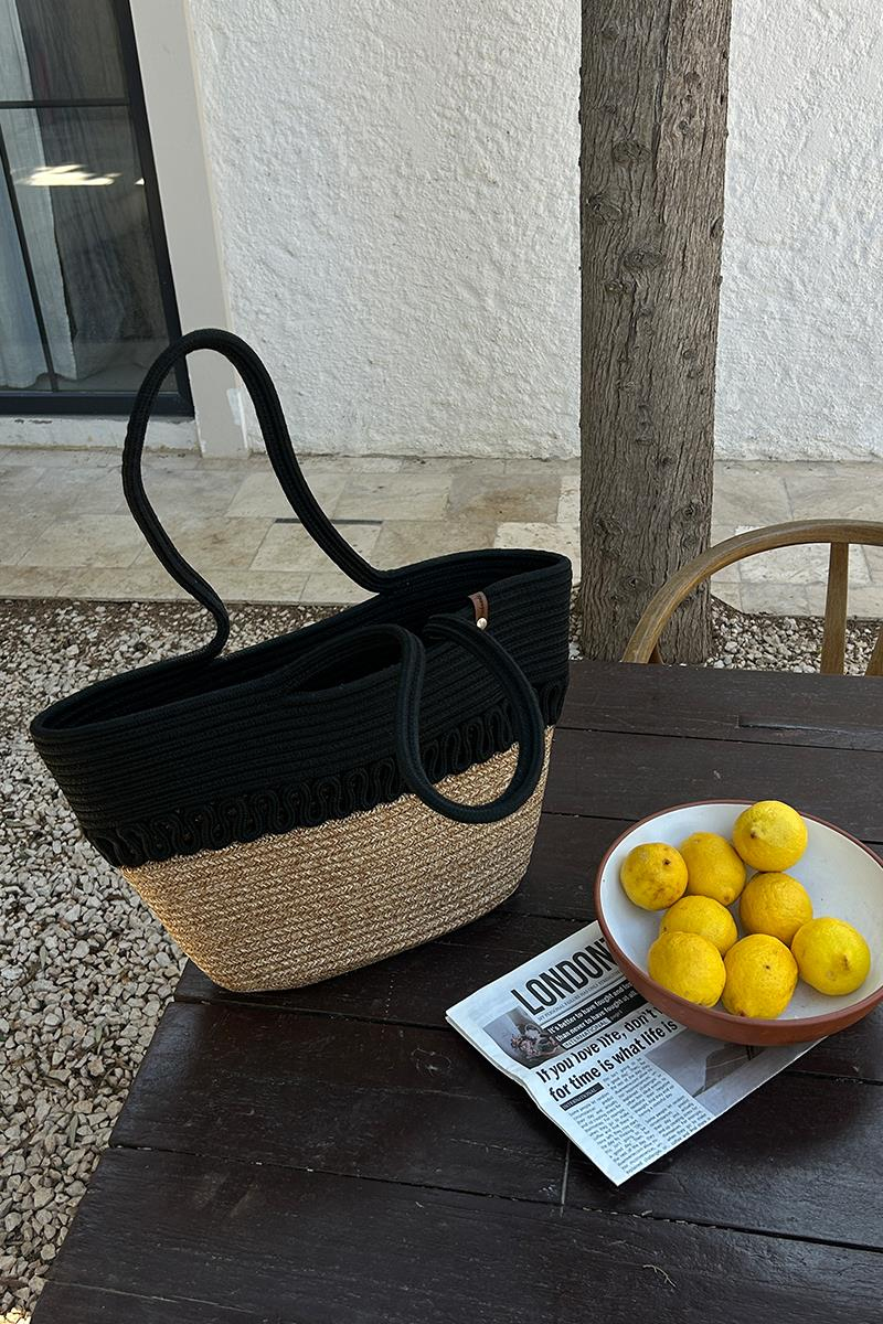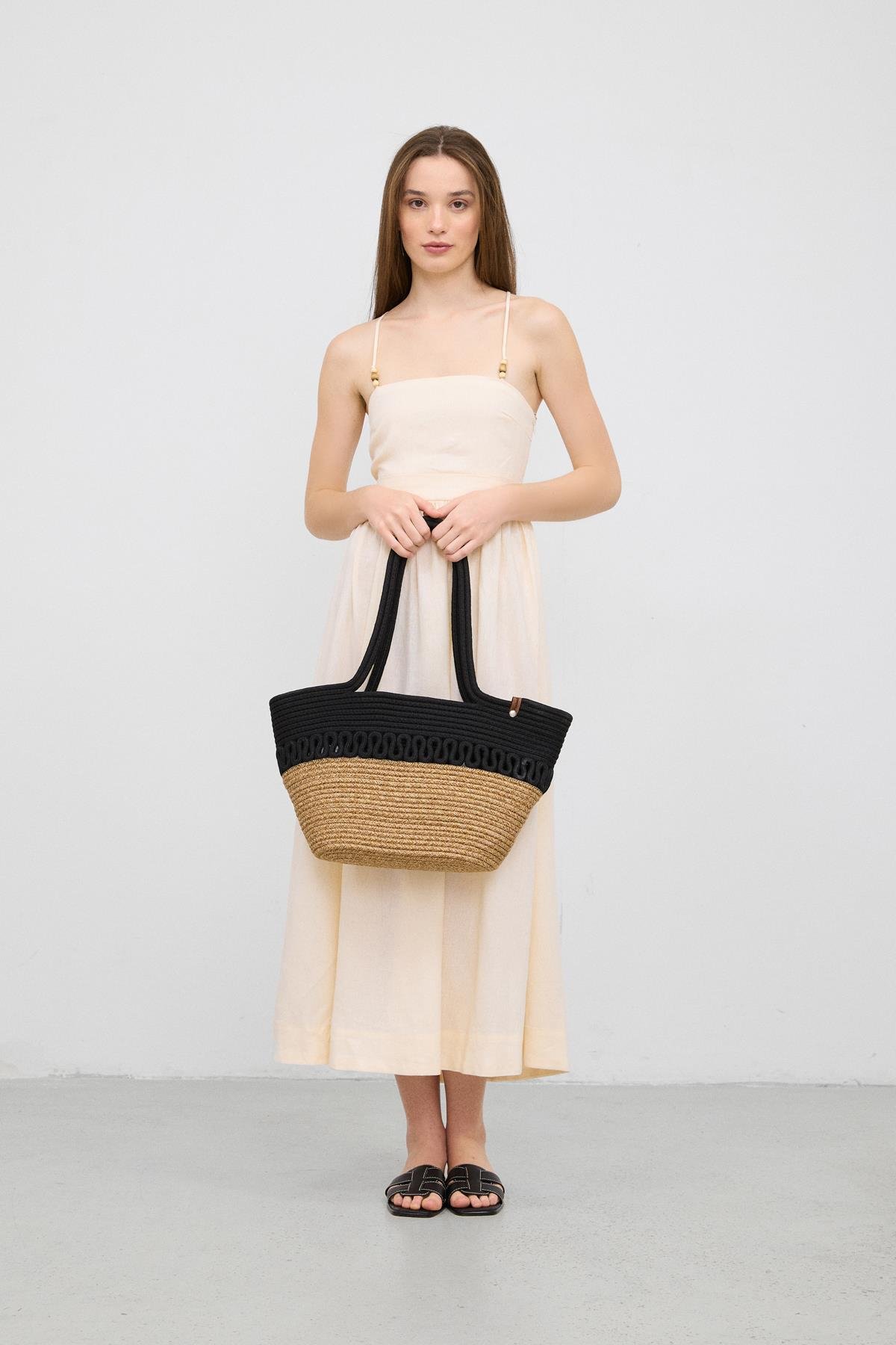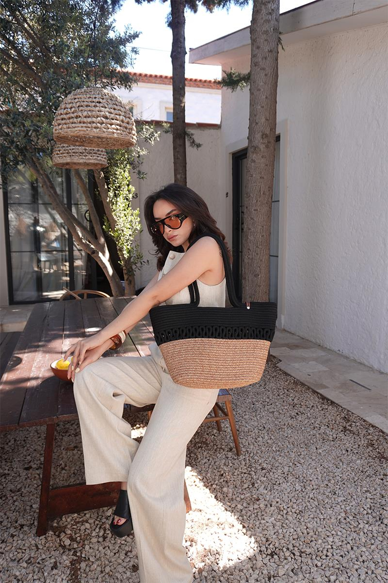 Miami Handmade Hasır Omuz Çantası Siyah (shule008321)
