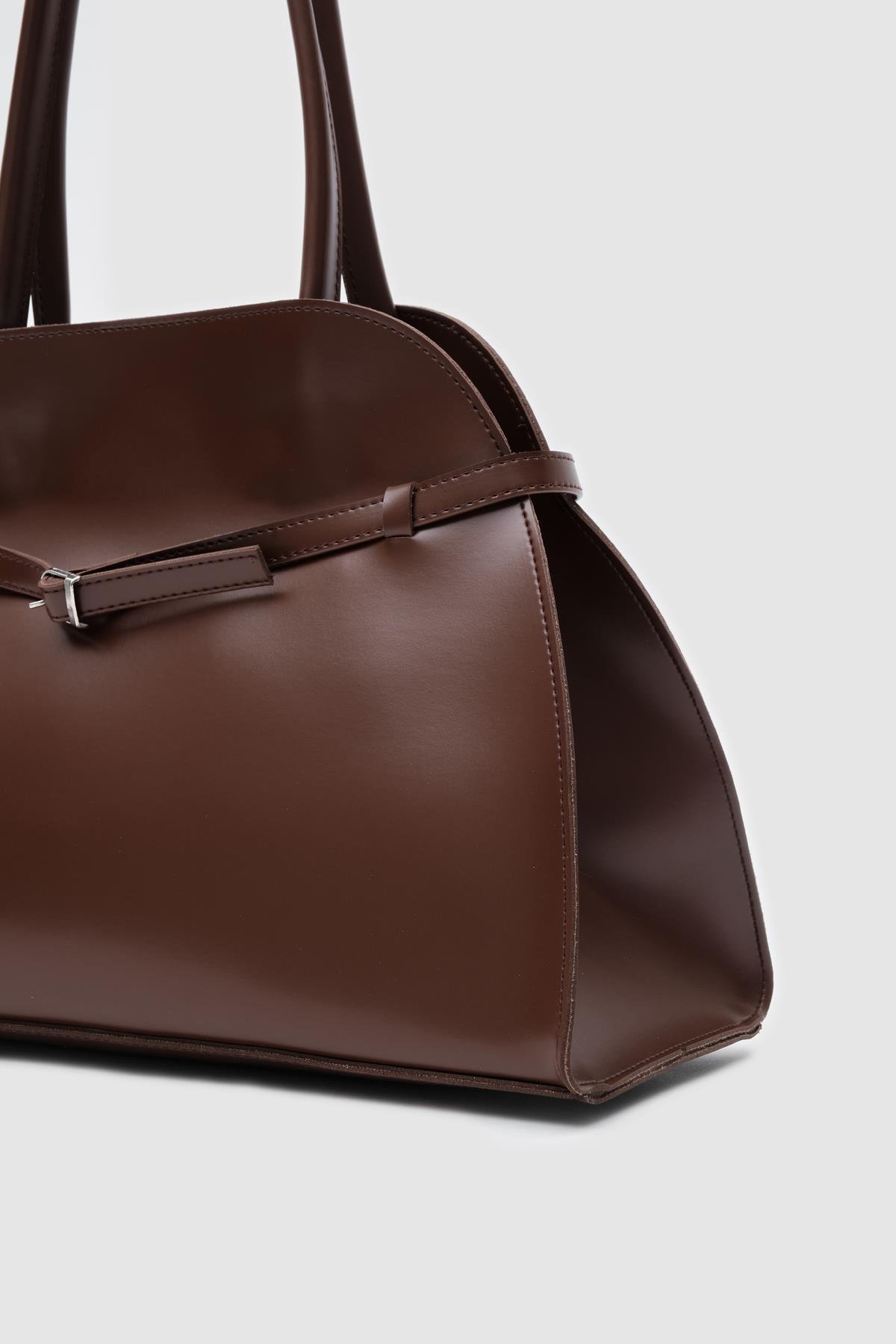 Monets Kemer Detaylı Omuz Çantası Fındık Kabuğu