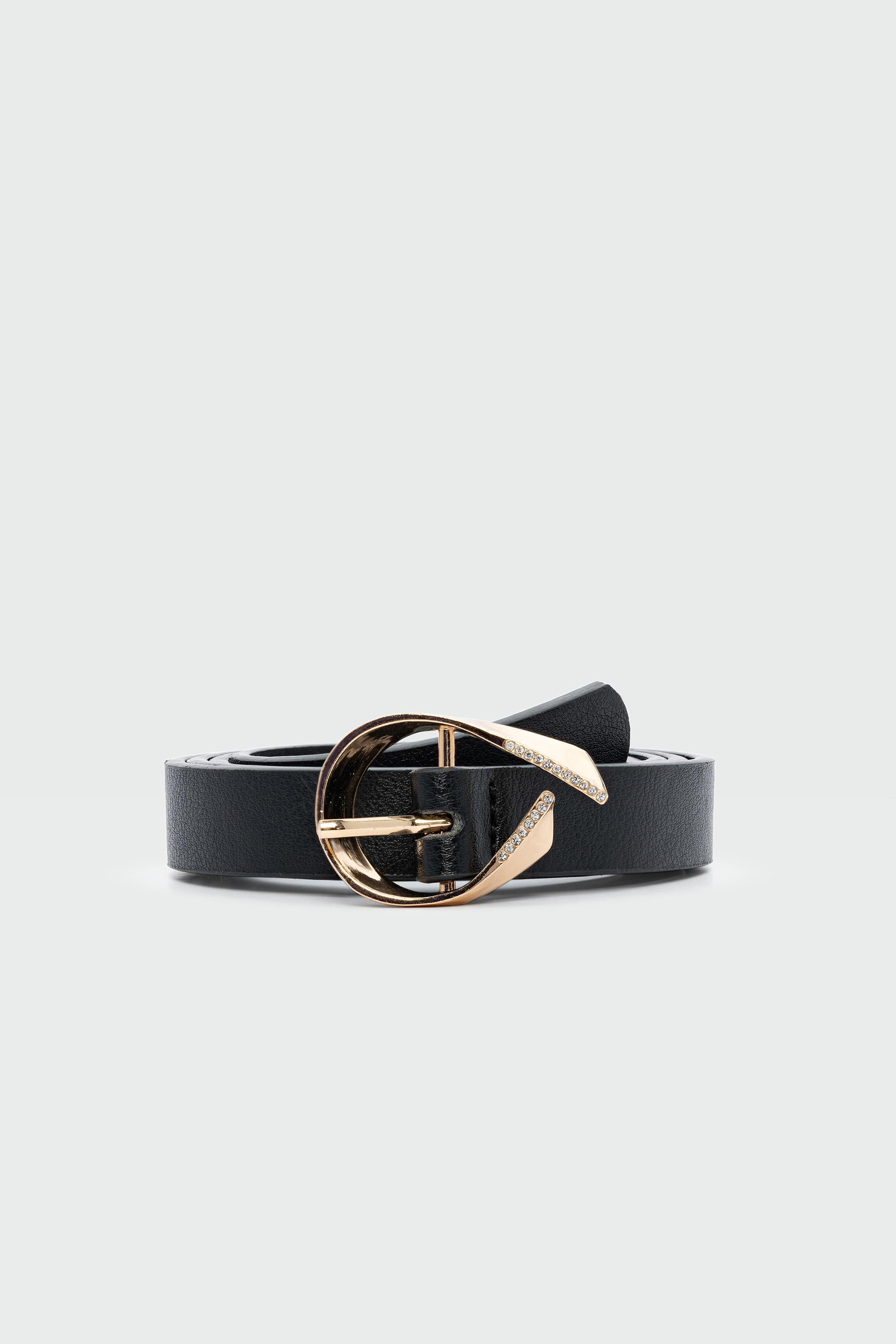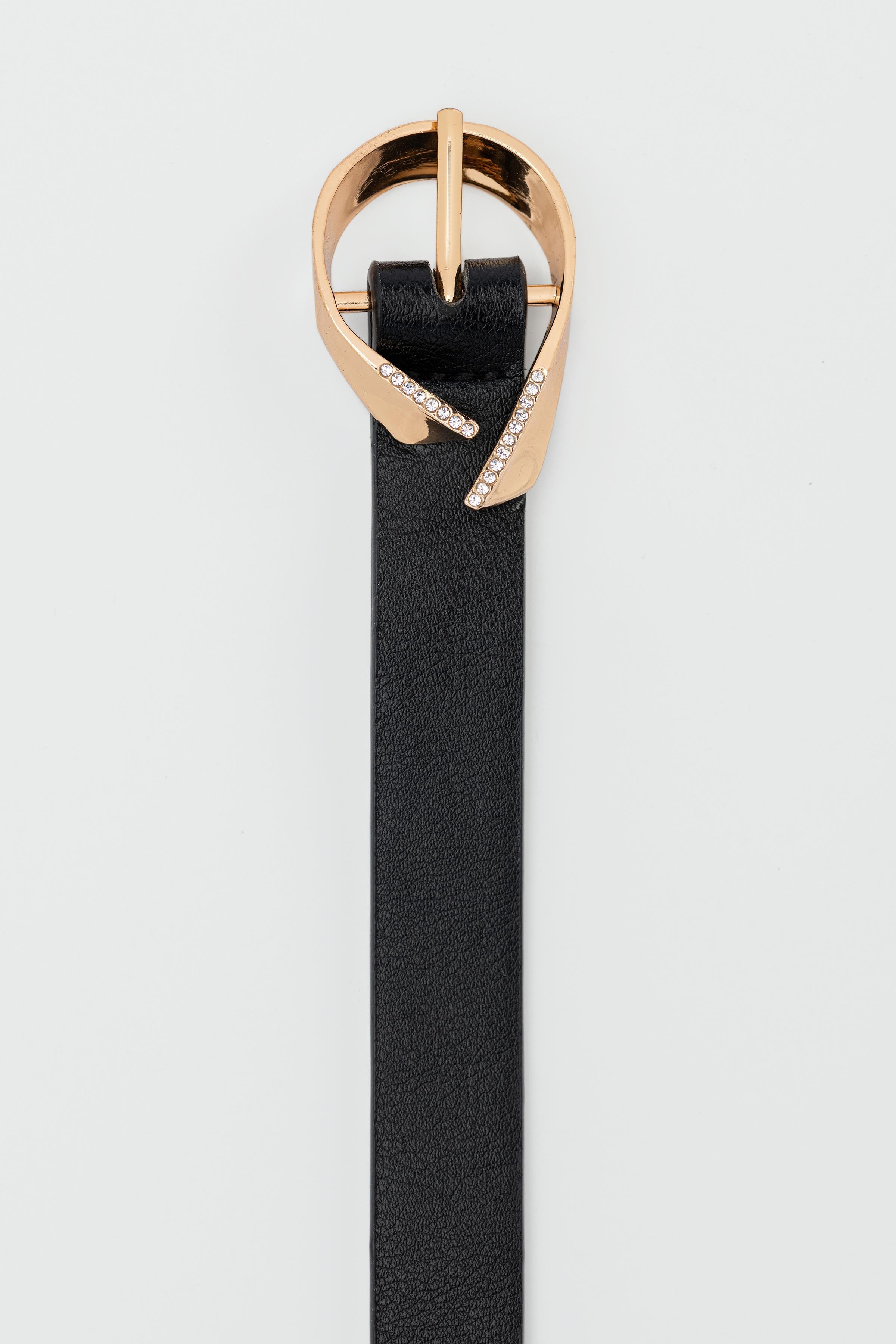 Oval Taşlı Tokalı Suni Deri Kemer Siyah