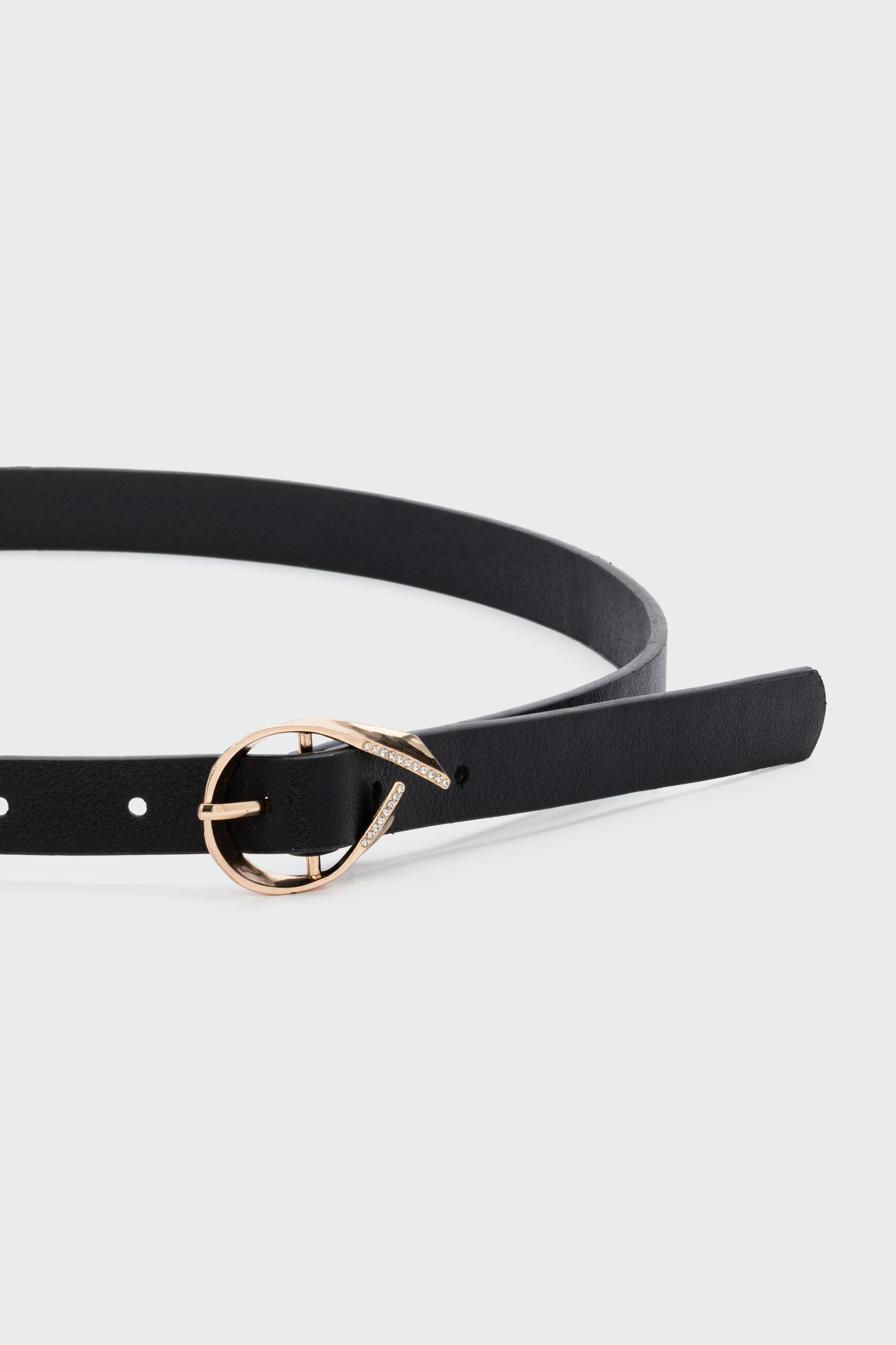 Oval Taşlı Tokalı Suni Deri Kemer Siyah (shule008442)