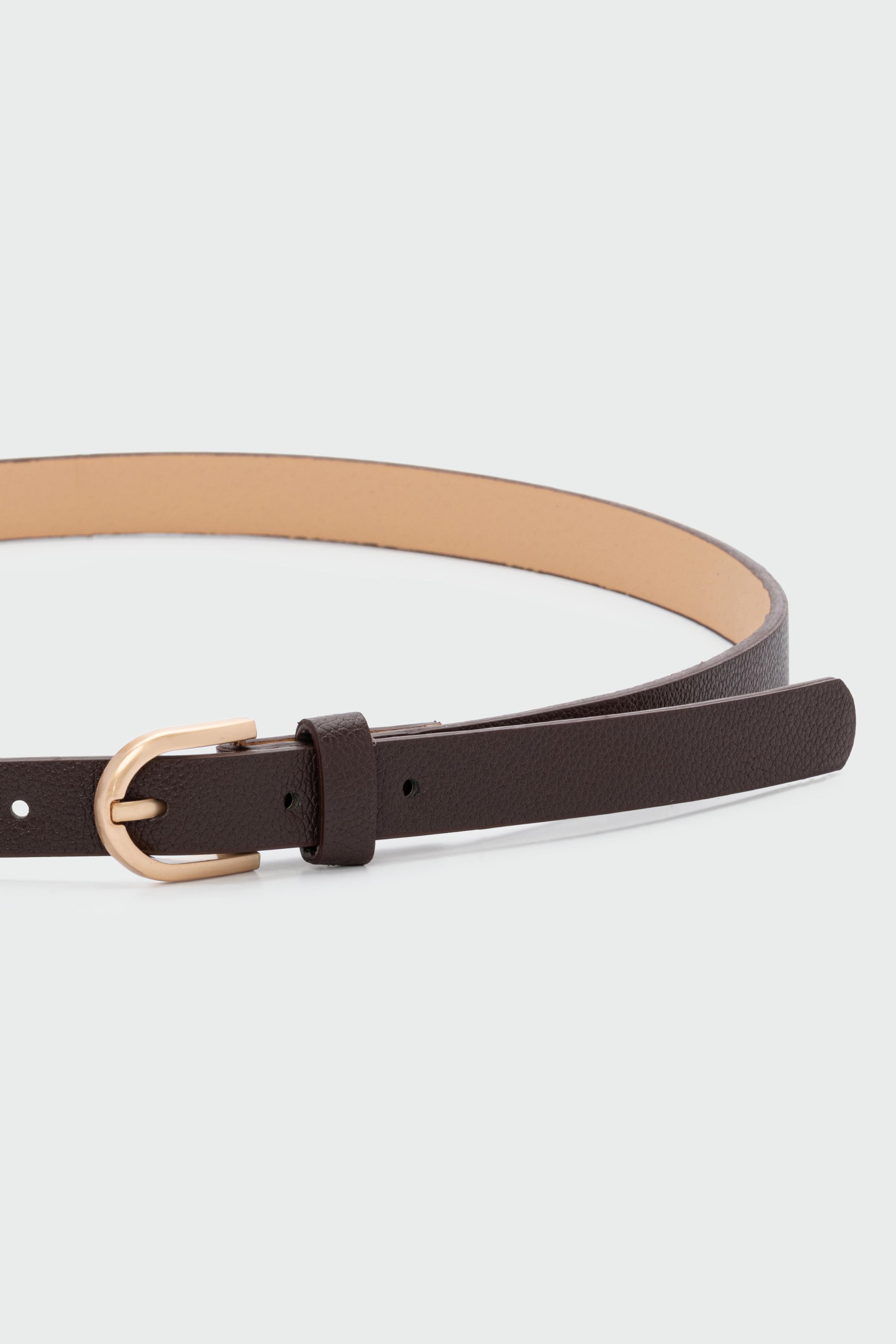 Oval Tokalı İnce Suni Deri Kemer Kahve (shule008448)