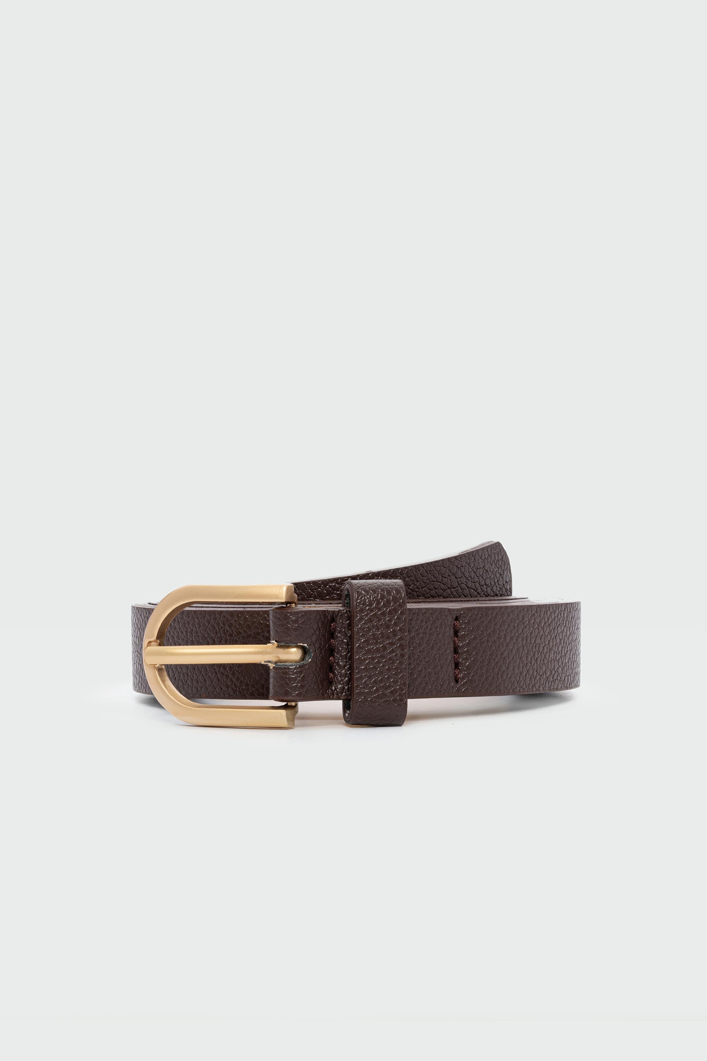 Oval Tokalı İnce Suni Deri Kemer Kahve
