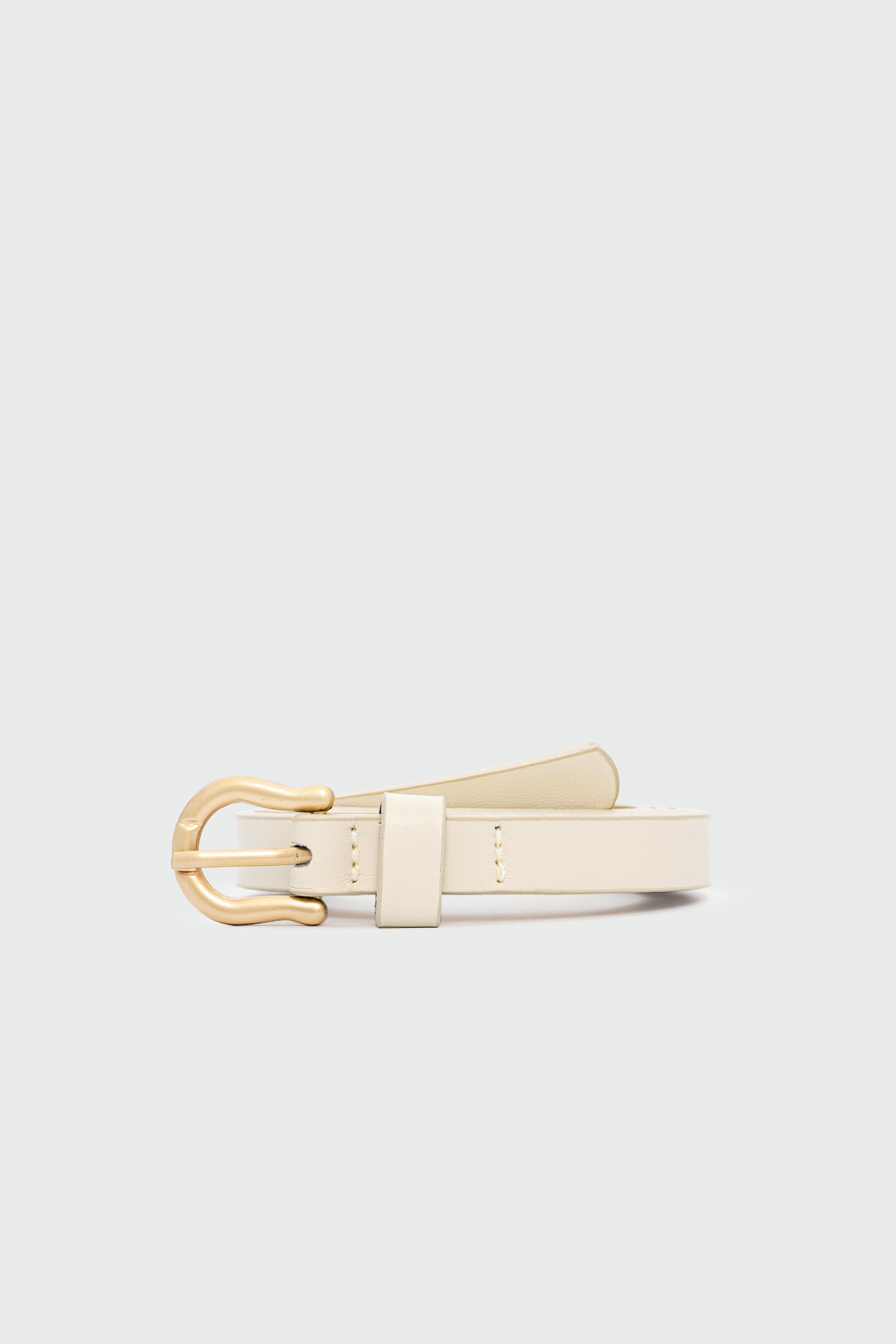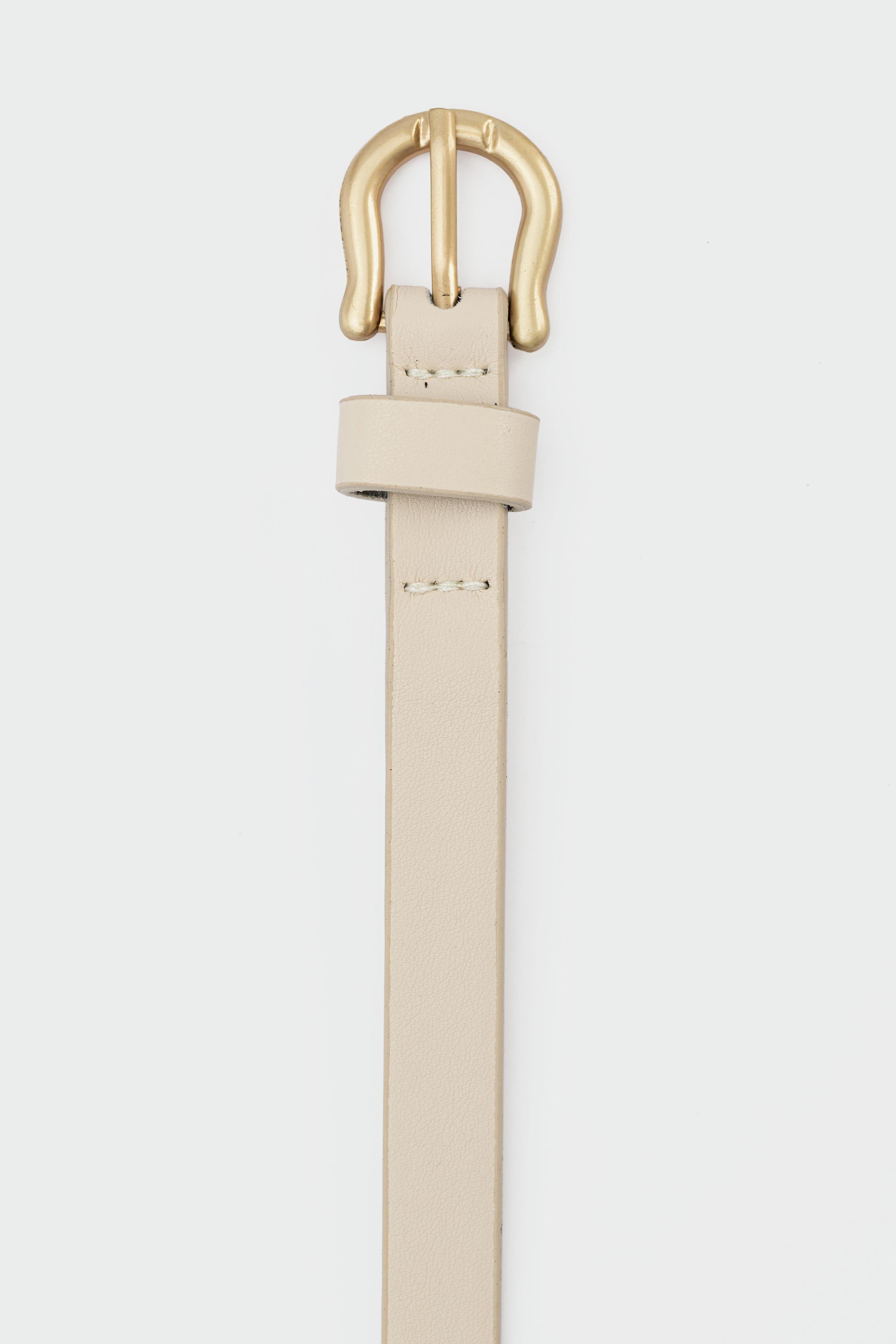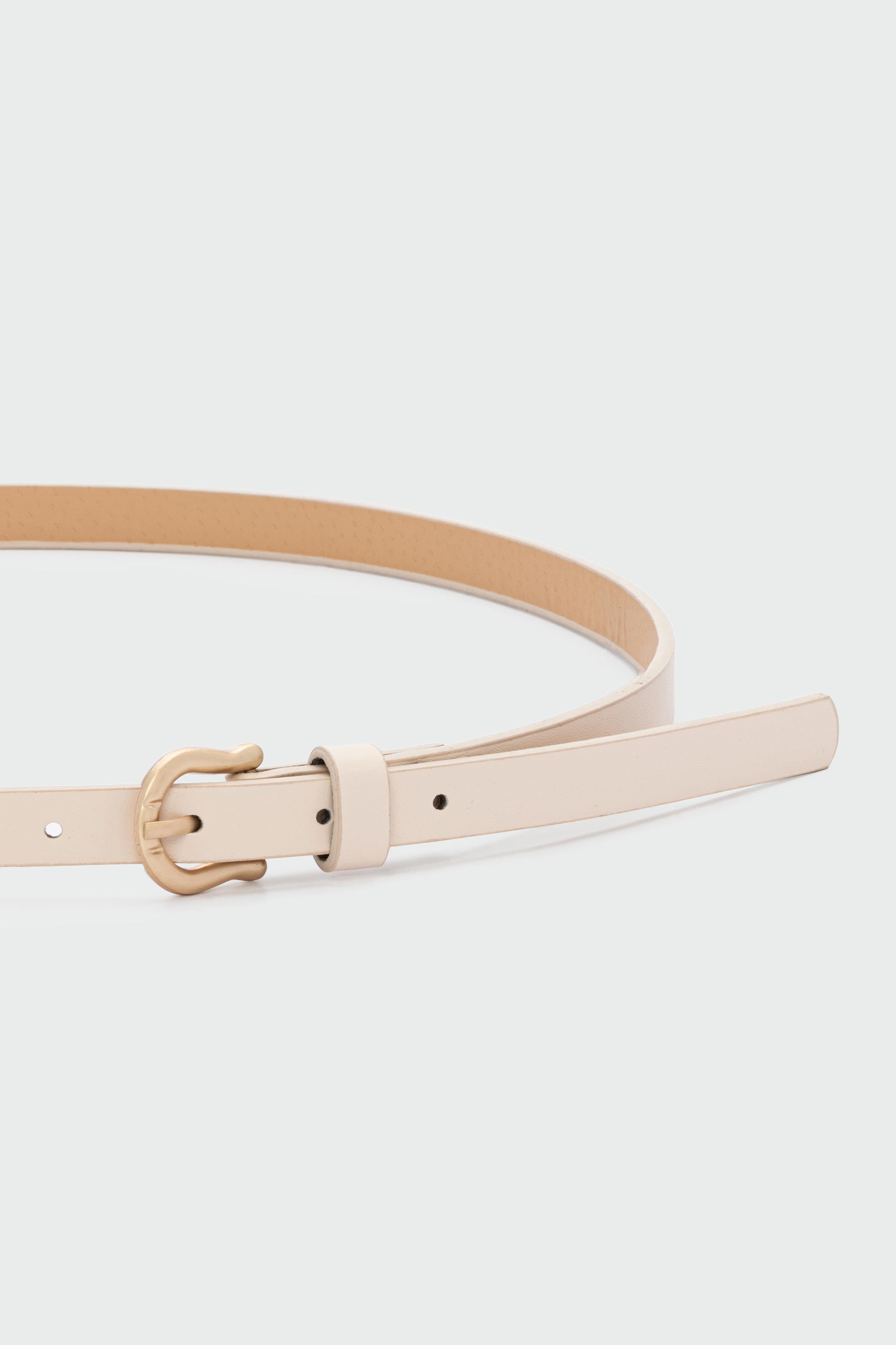 Oval Tokalı İnce Suni Deri Kemer Krem (shule008431)