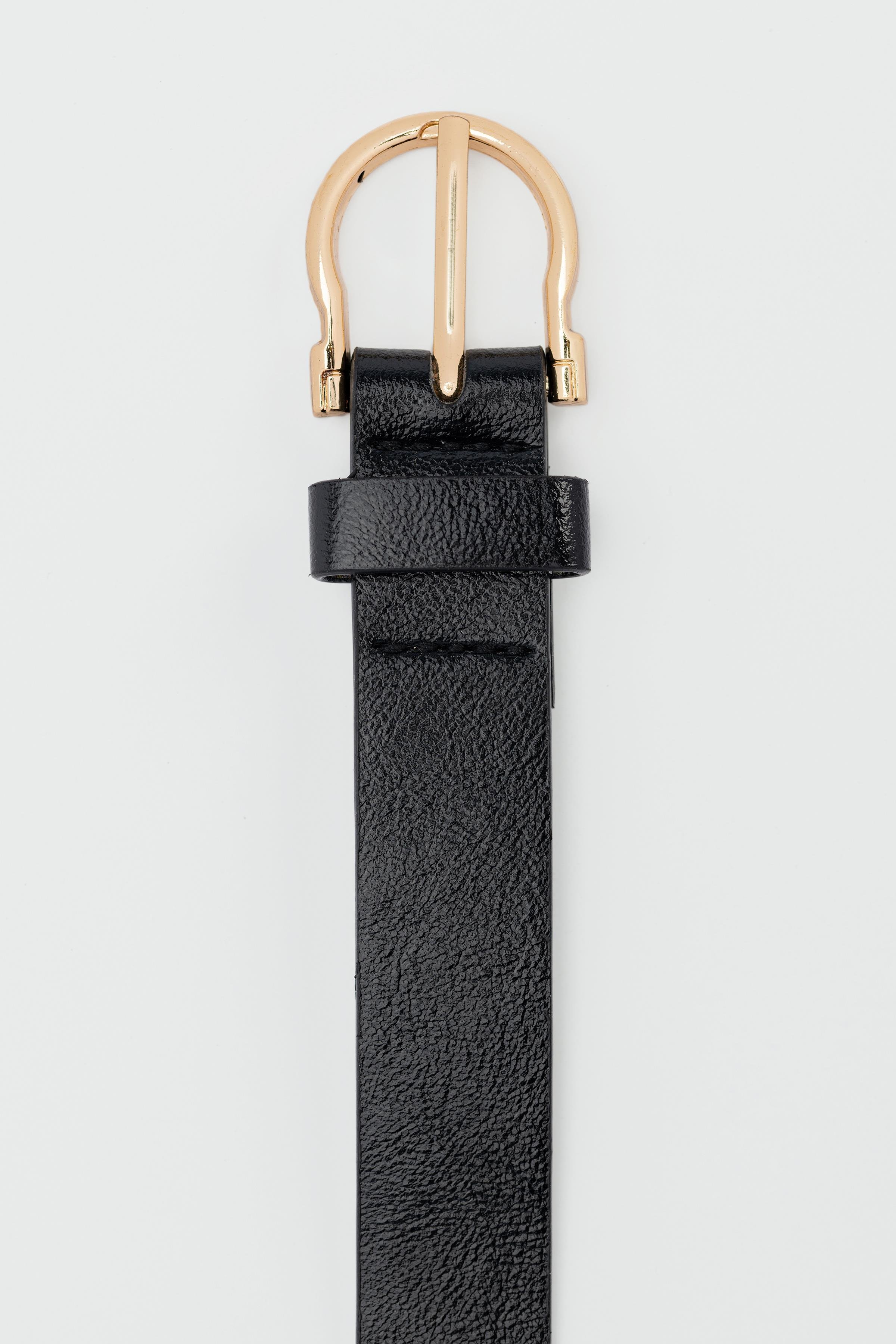 Oval Tokalı Suni Deri Kemer Siyah (shule008462)