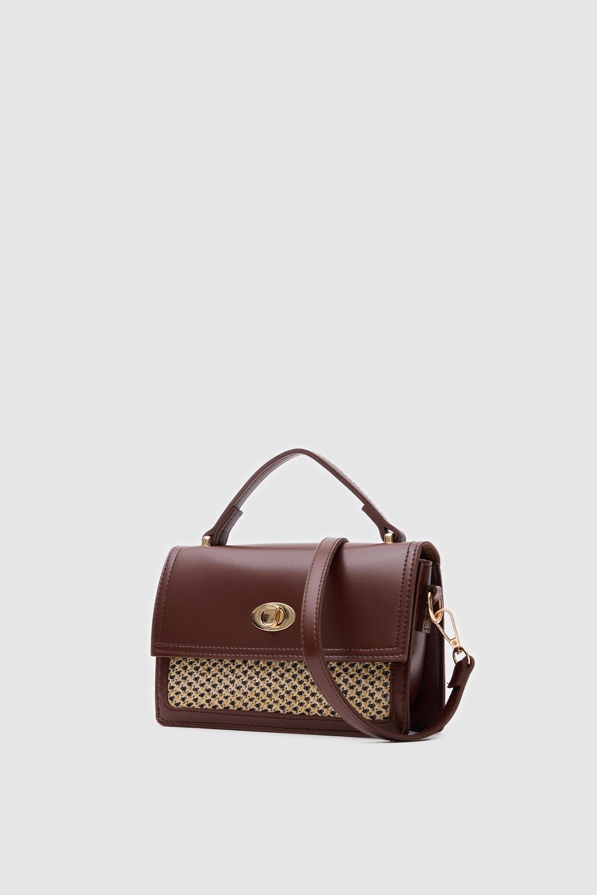 Oxxo Hasır Detaylı Çapraz Çanta Fındık Kabuğu