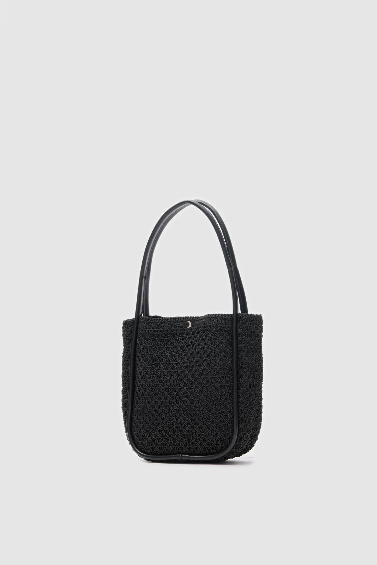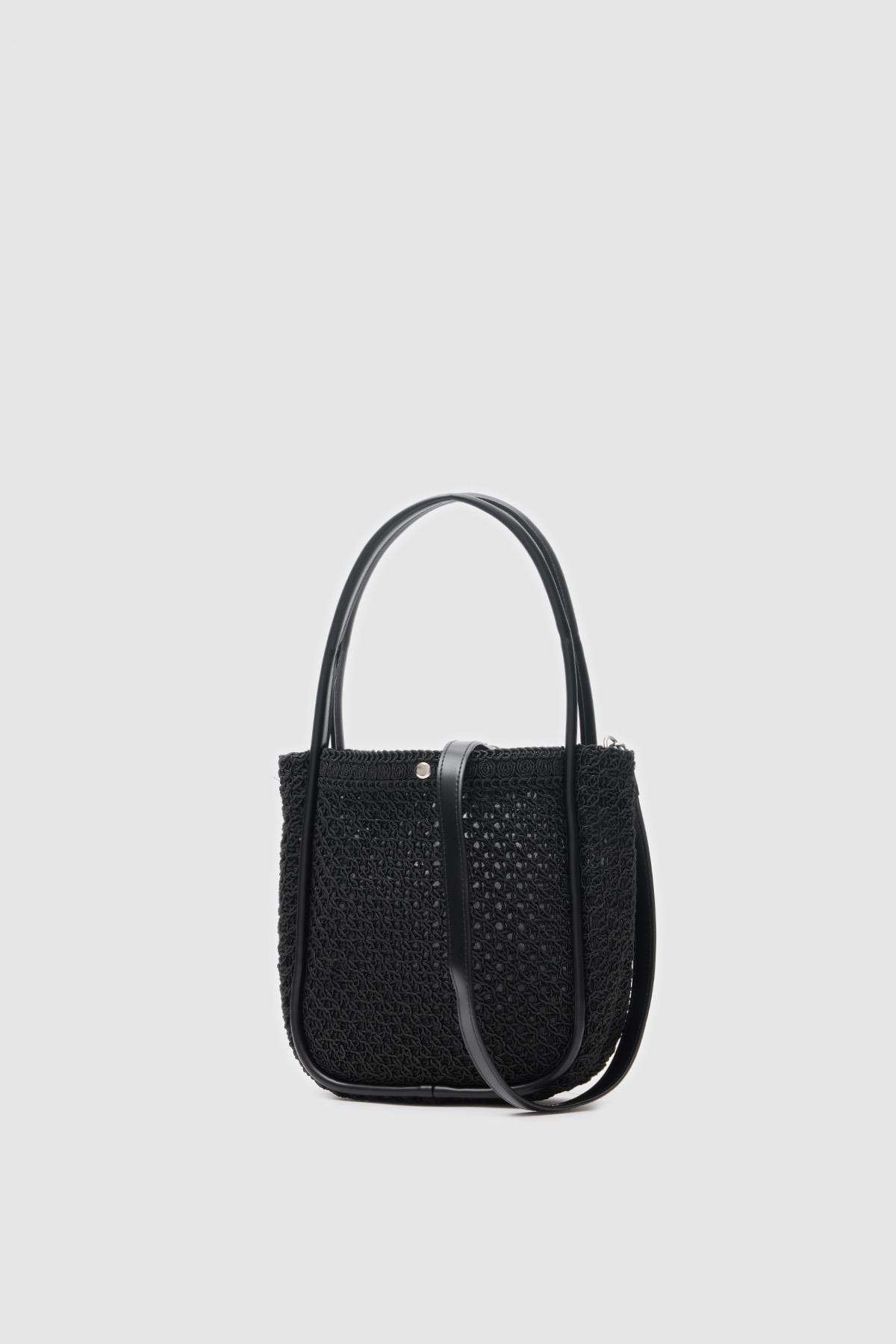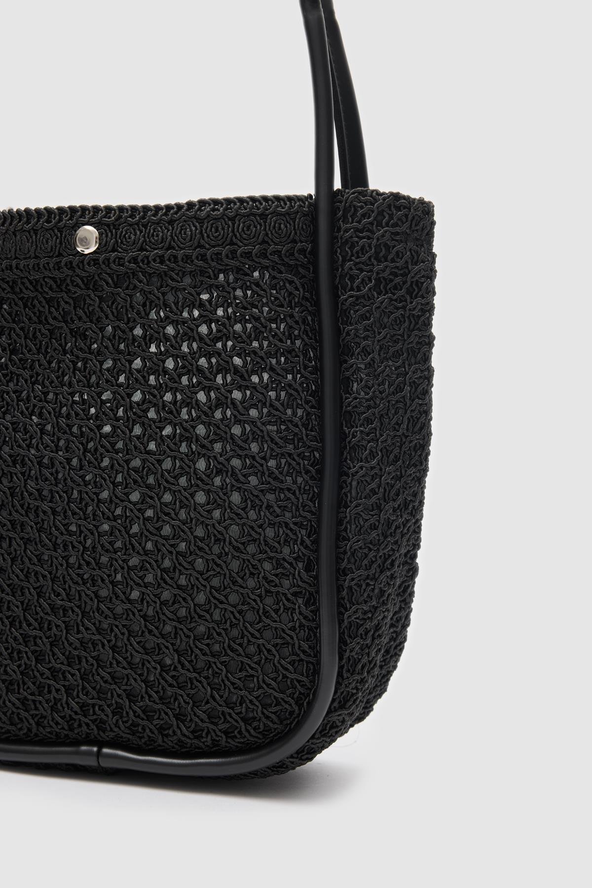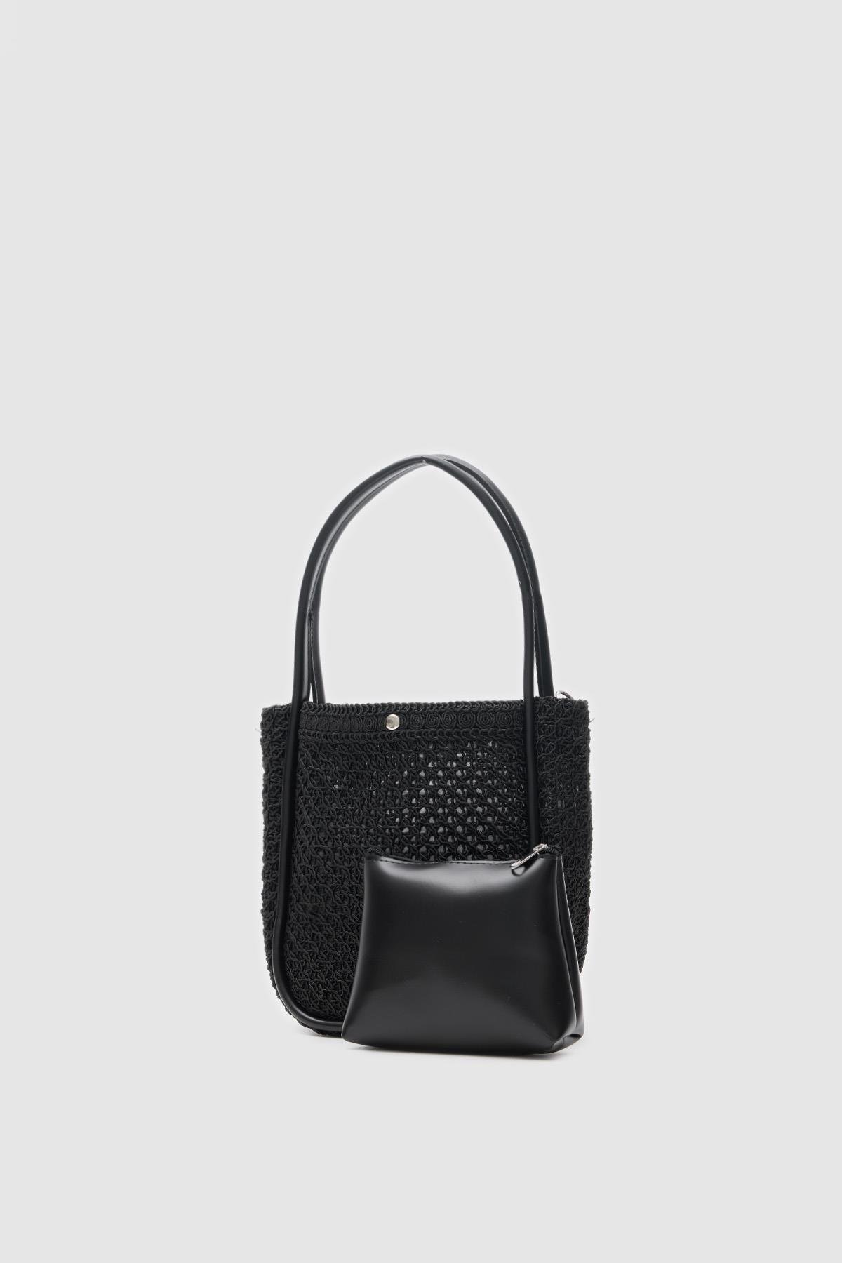 Palma Handmade Midi Hasır Omuz Çantası Siyah (shule008320)