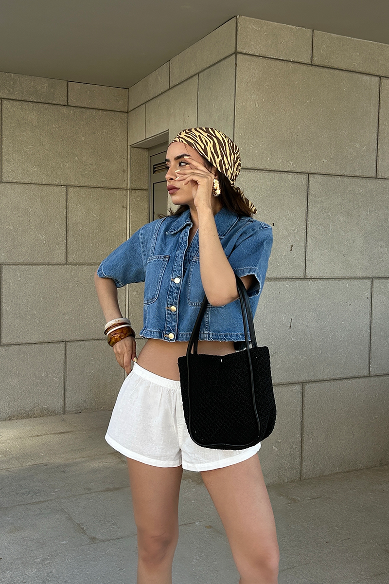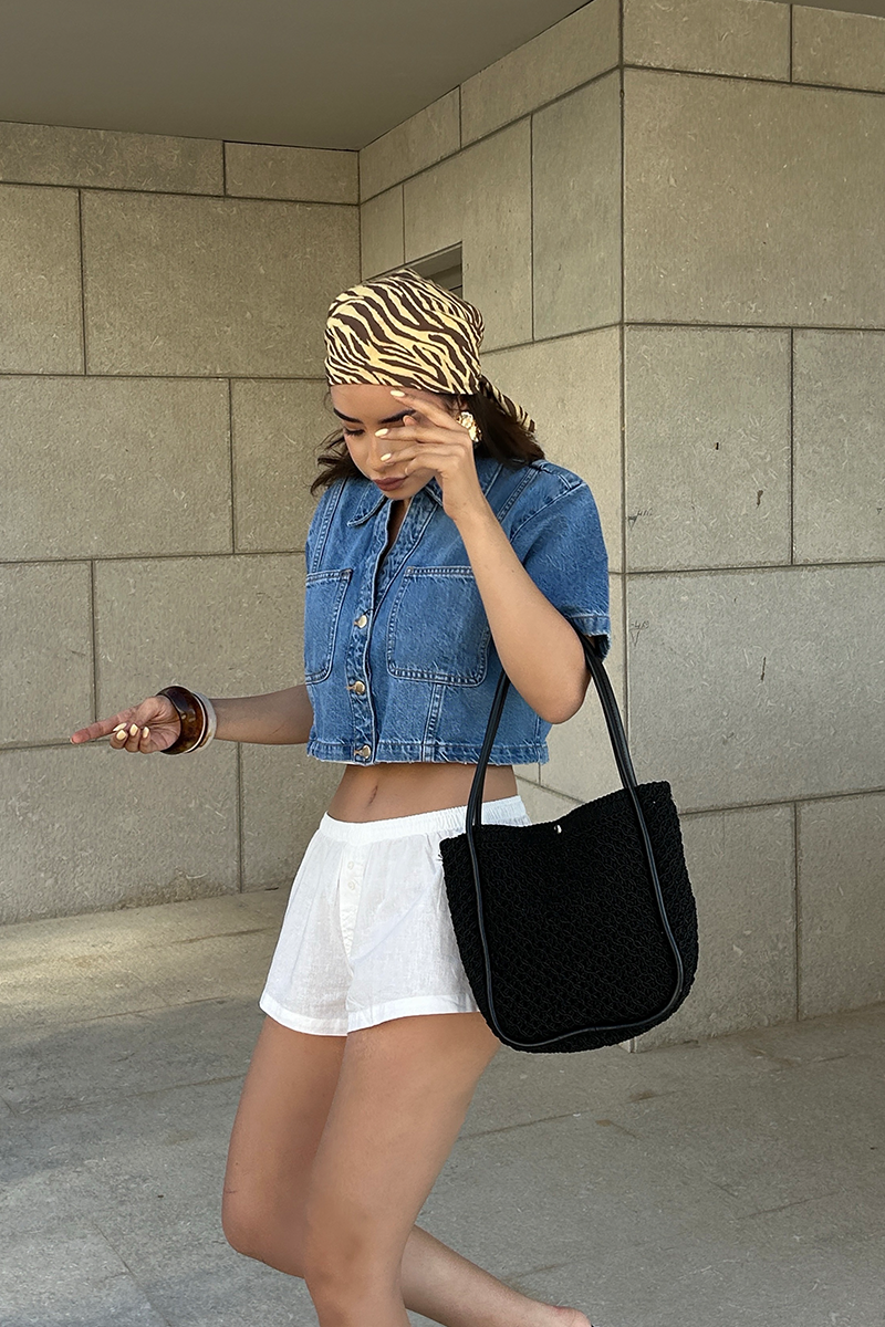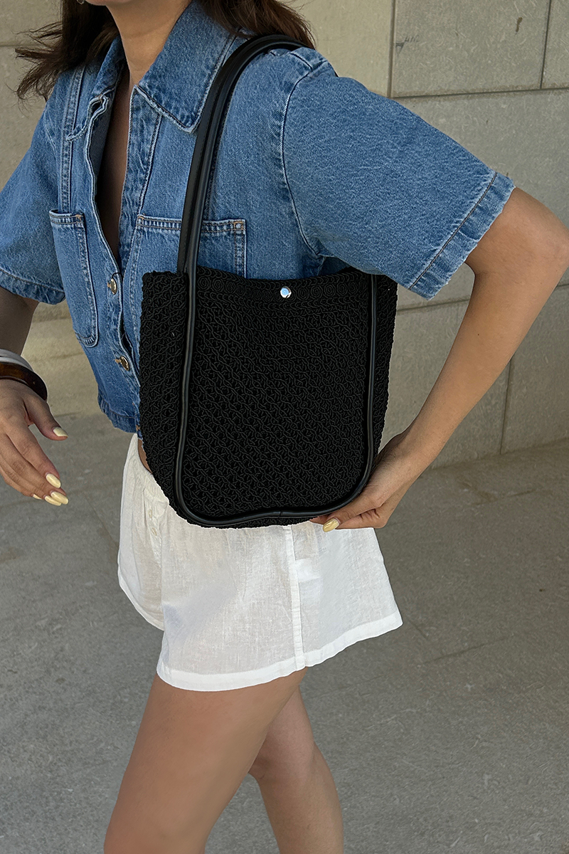 Palma Handmade Midi Hasır Omuz Çantası Siyah