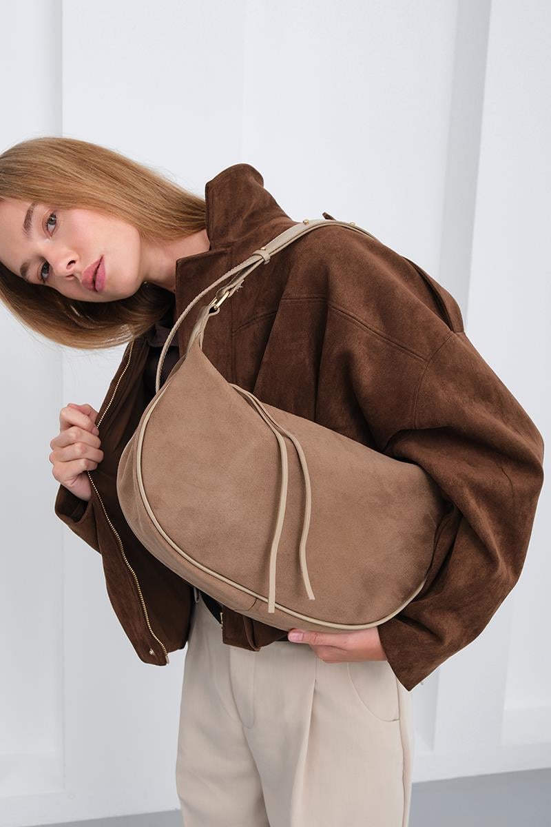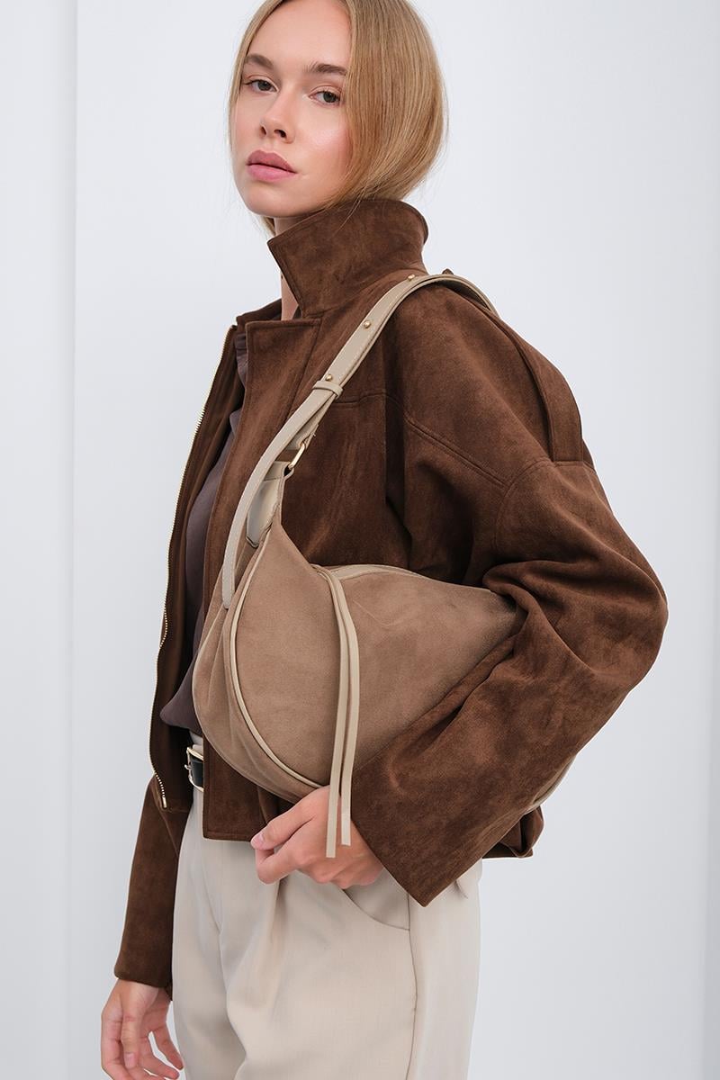 Poppin Süet Omuz Çantası Vizon (shule008468)