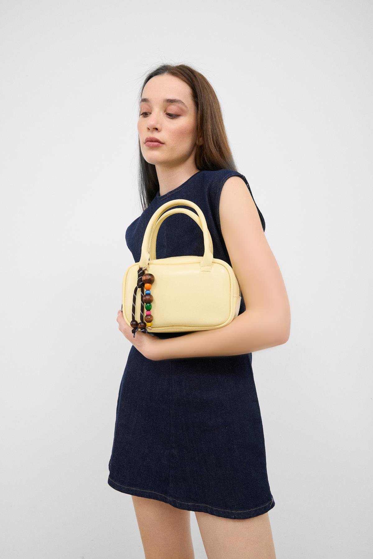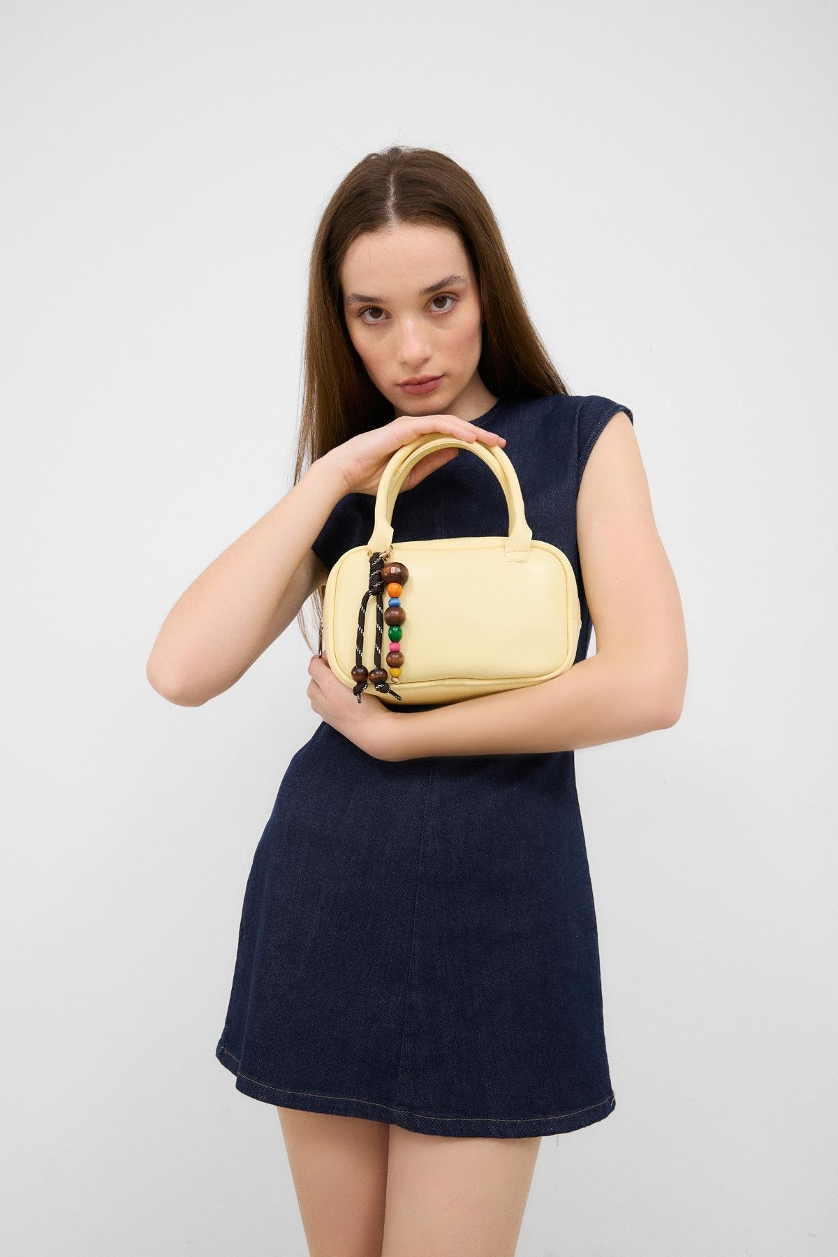 Pra Aksesuarlı Mini Oval El ve Çapraz Çanta Sarı (shule008370)