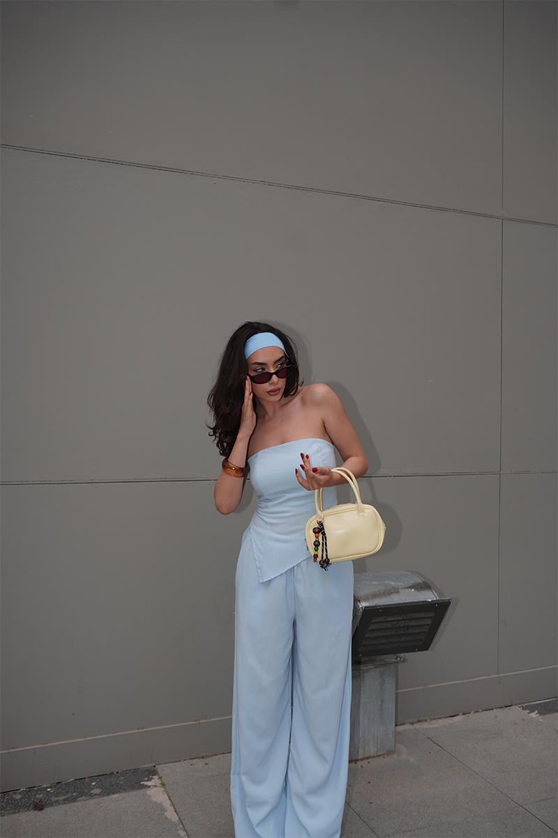 Pra Aksesuarlı Mini Oval El ve Çapraz Çanta Sarı