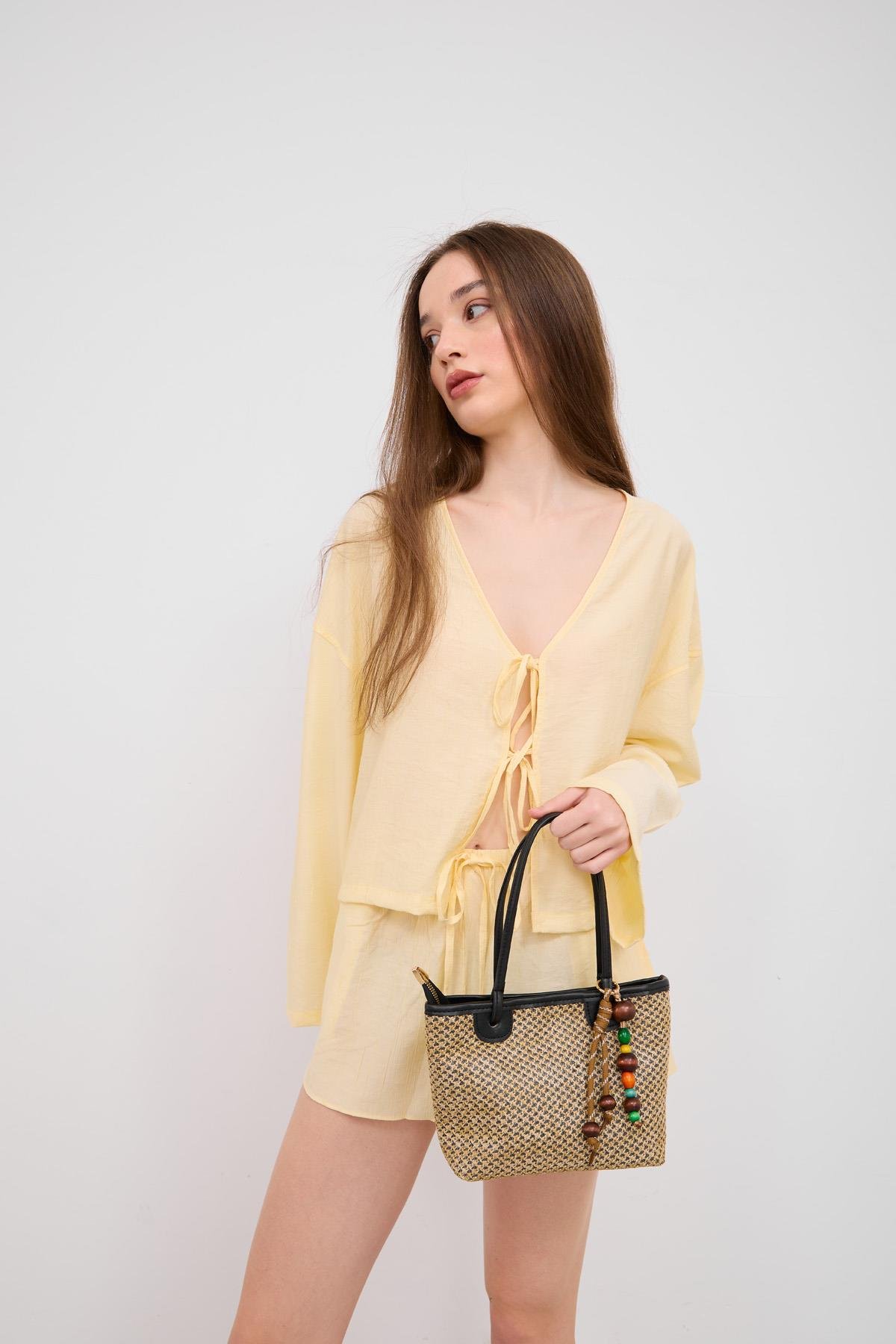 Roen Hasır Omuz Çantası Siyah (shule008379)