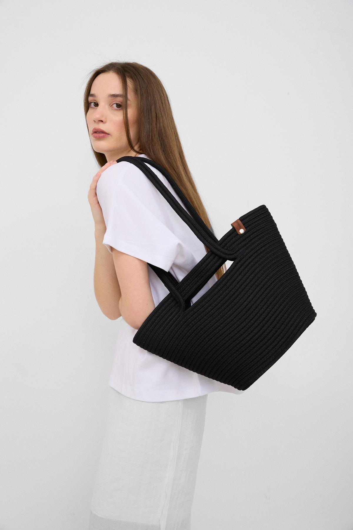 Santa Elden Tutmalı Hasır Omuz Çantası Siyah