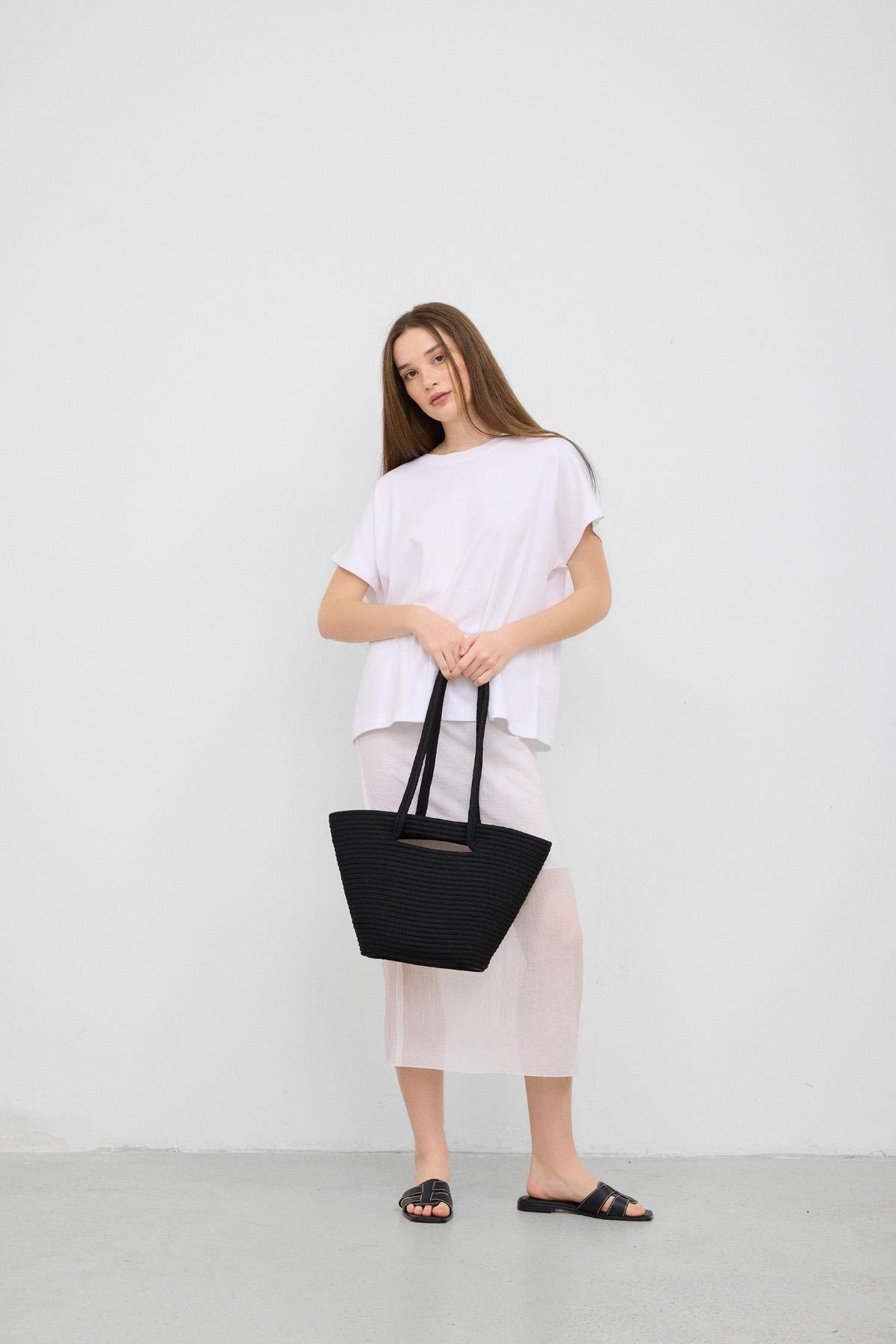 Santa Elden Tutmalı Hasır Omuz Çantası Siyah (shule008328)