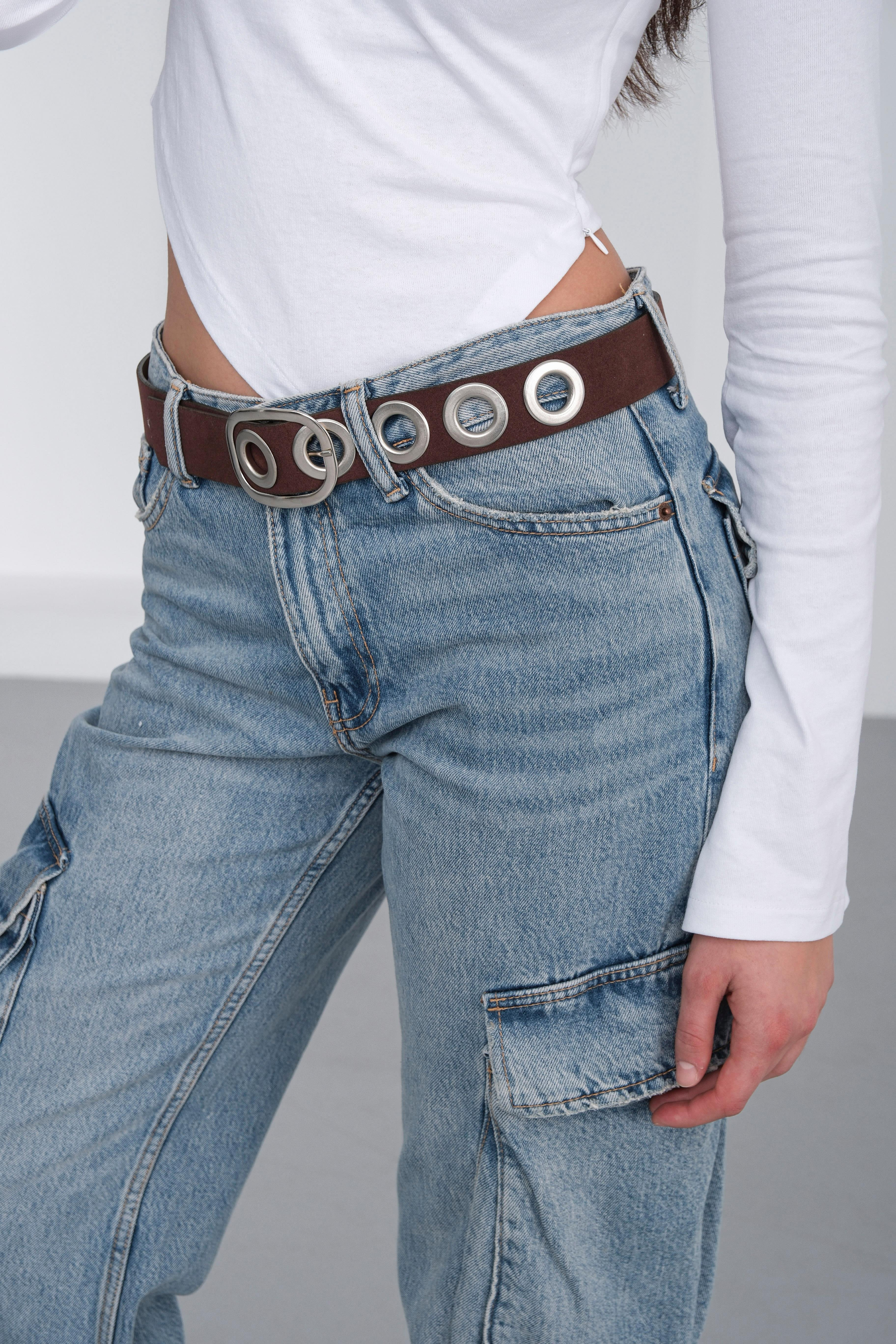 Süet Metal Delikli Kemer Kahve