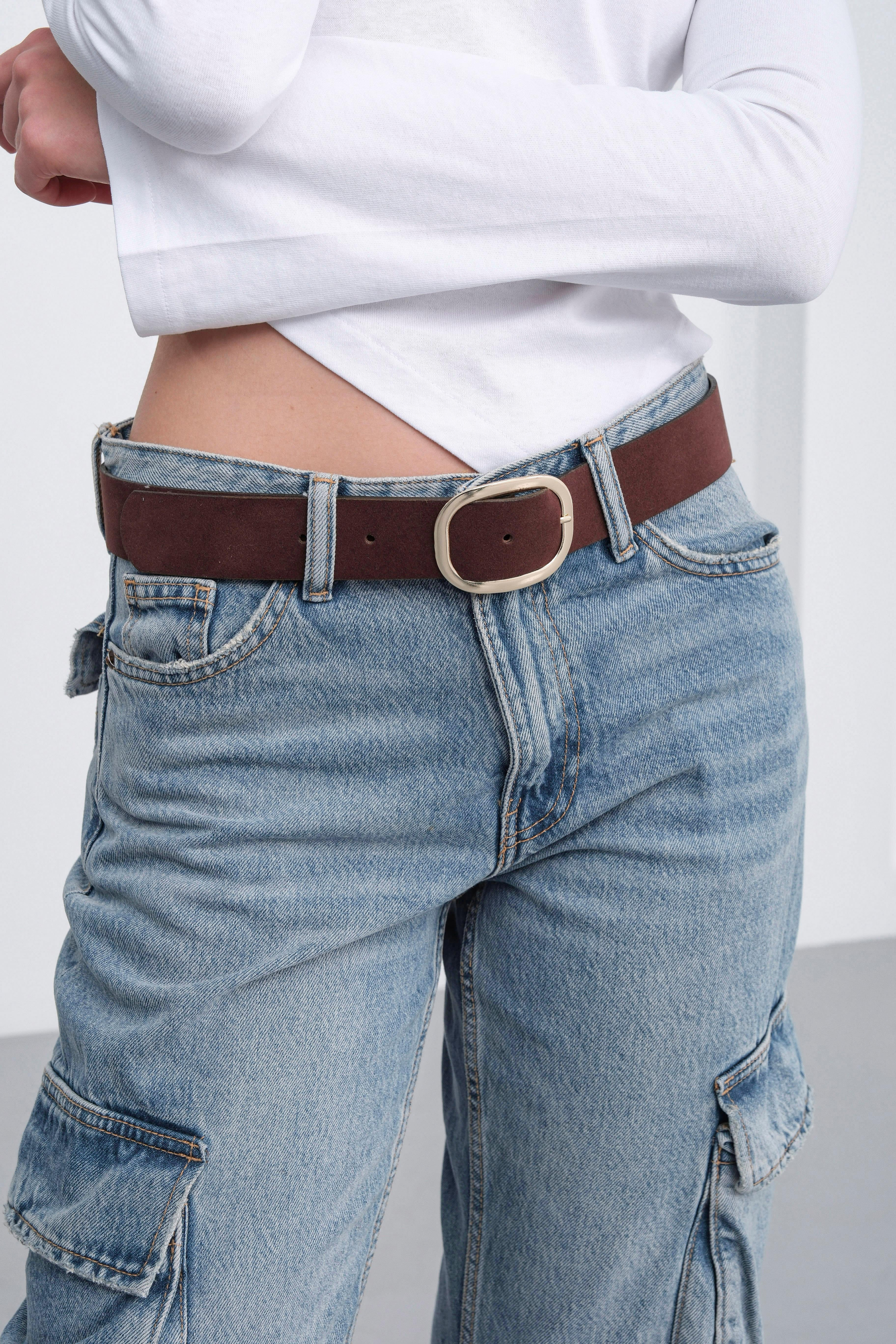 Süet Oval Tokalı Kemer Kahve Süet Oval Tokalı Kemer Taba
