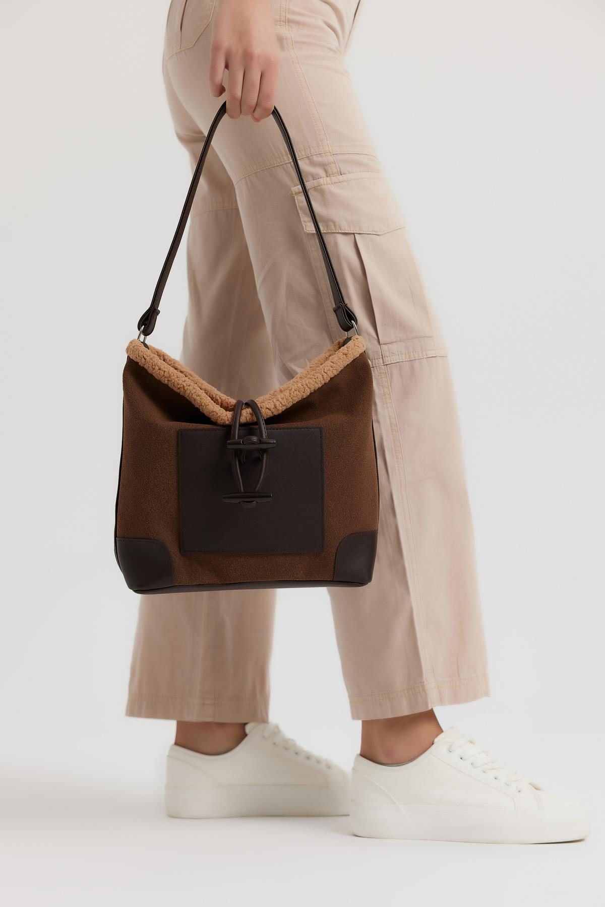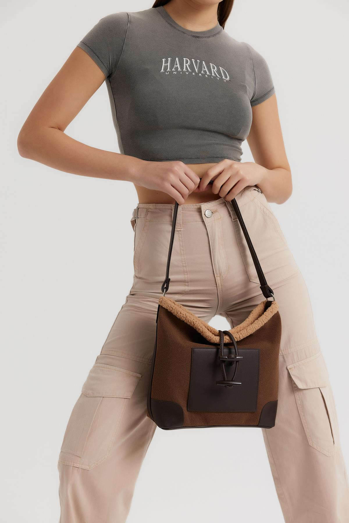 Süet Teddy Omuz Çantası Poloni Acı Kahve