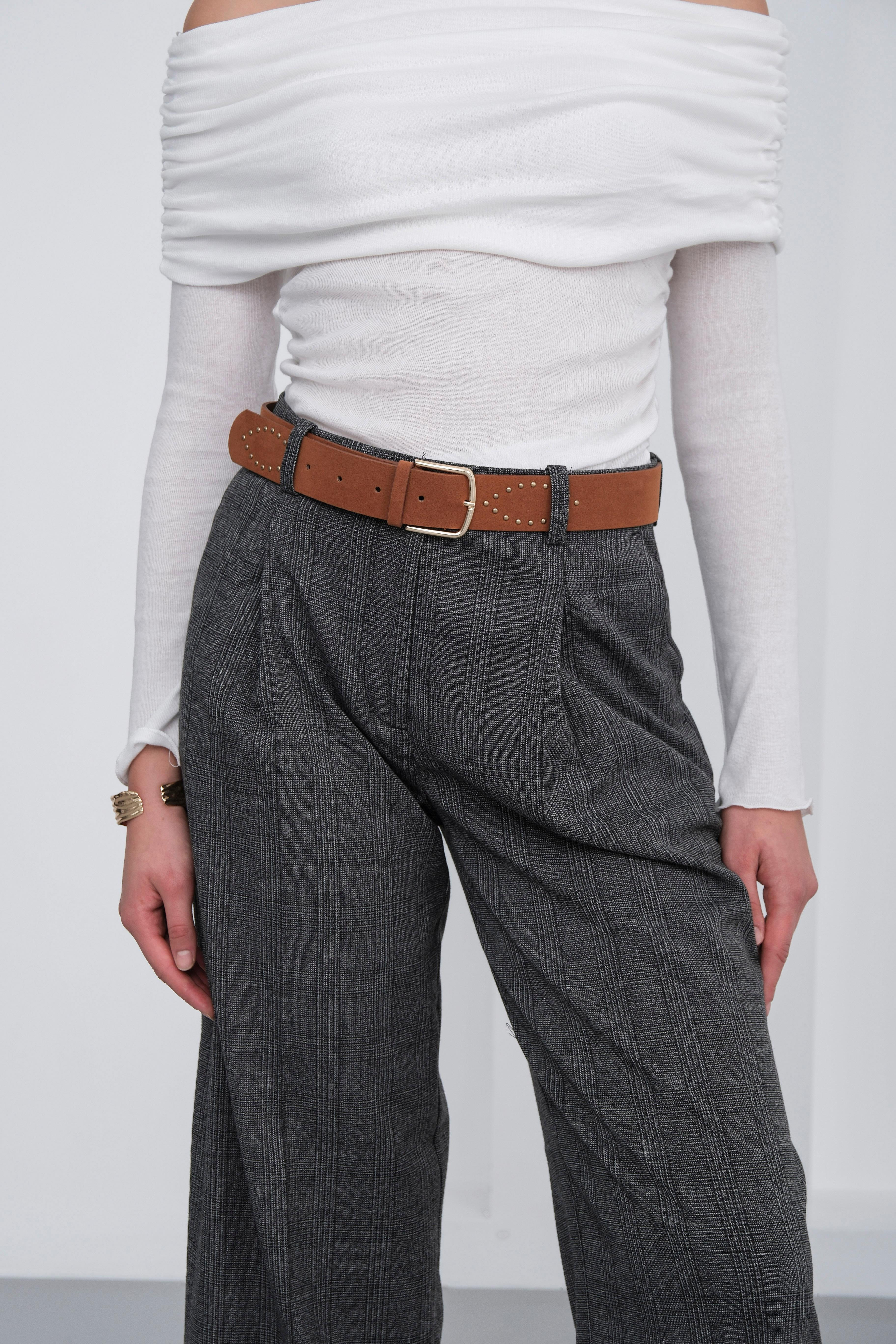Süet Trok Detaylı Kemer Kahve Süet Trok Detaylı Kemer Taba
