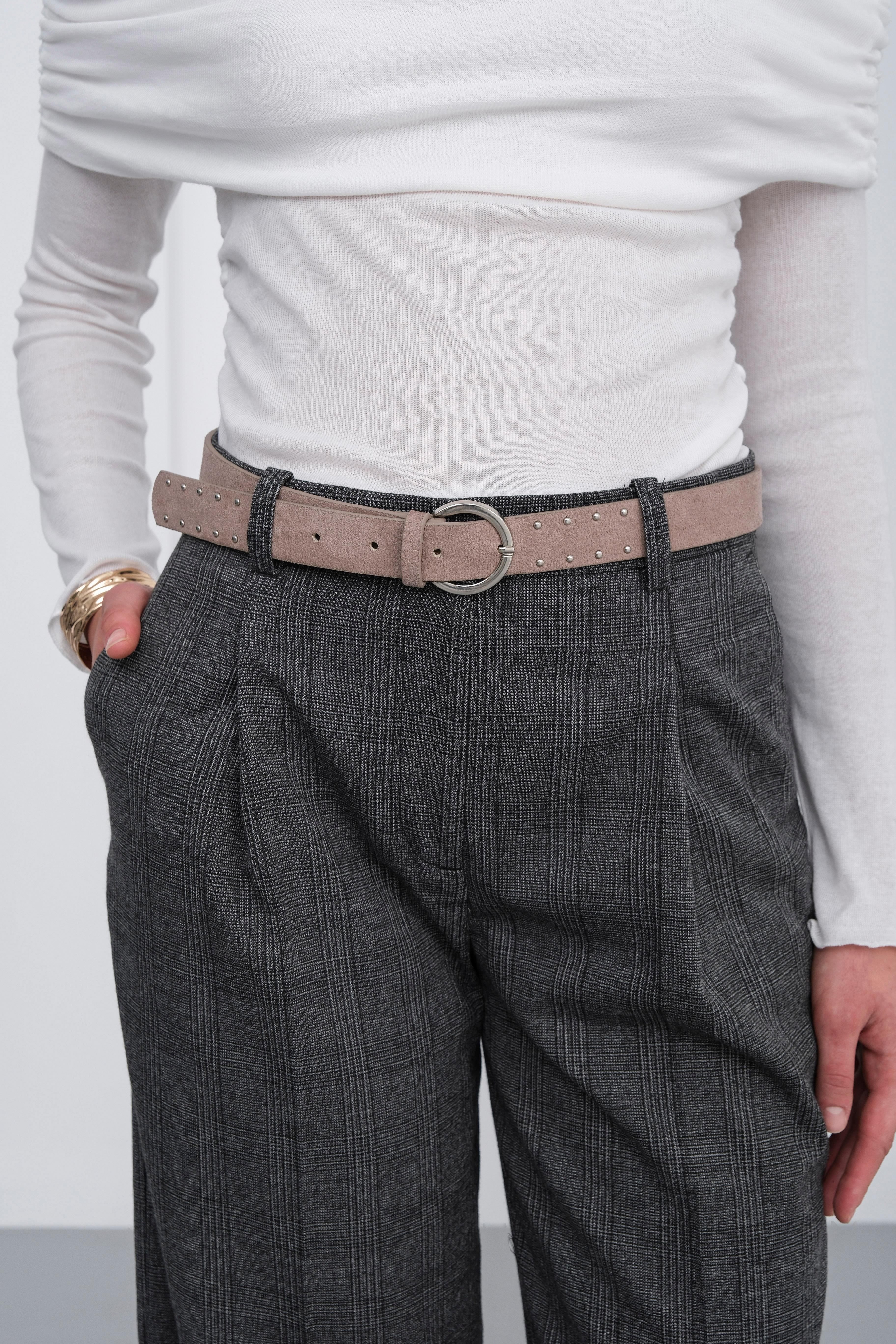 Süet Yuvarlak Tokalı Troklu Kemer Vizon