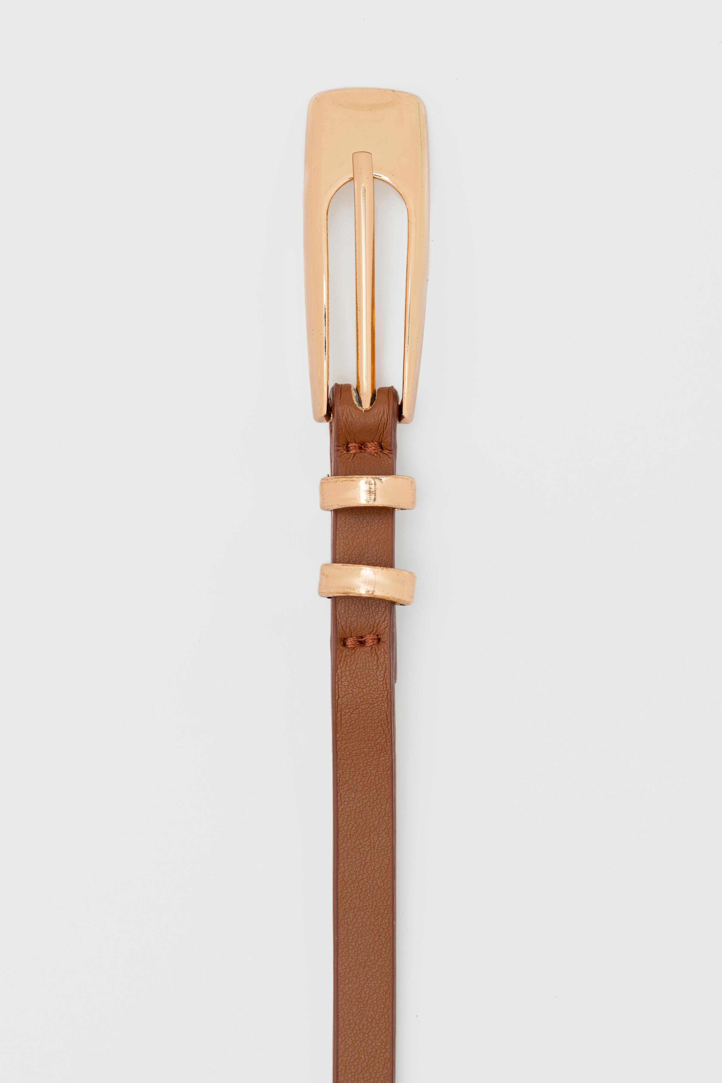 Uzun Dikdörtgen Tokalı İnce Suni Deri Kemer Taba (shule008458)