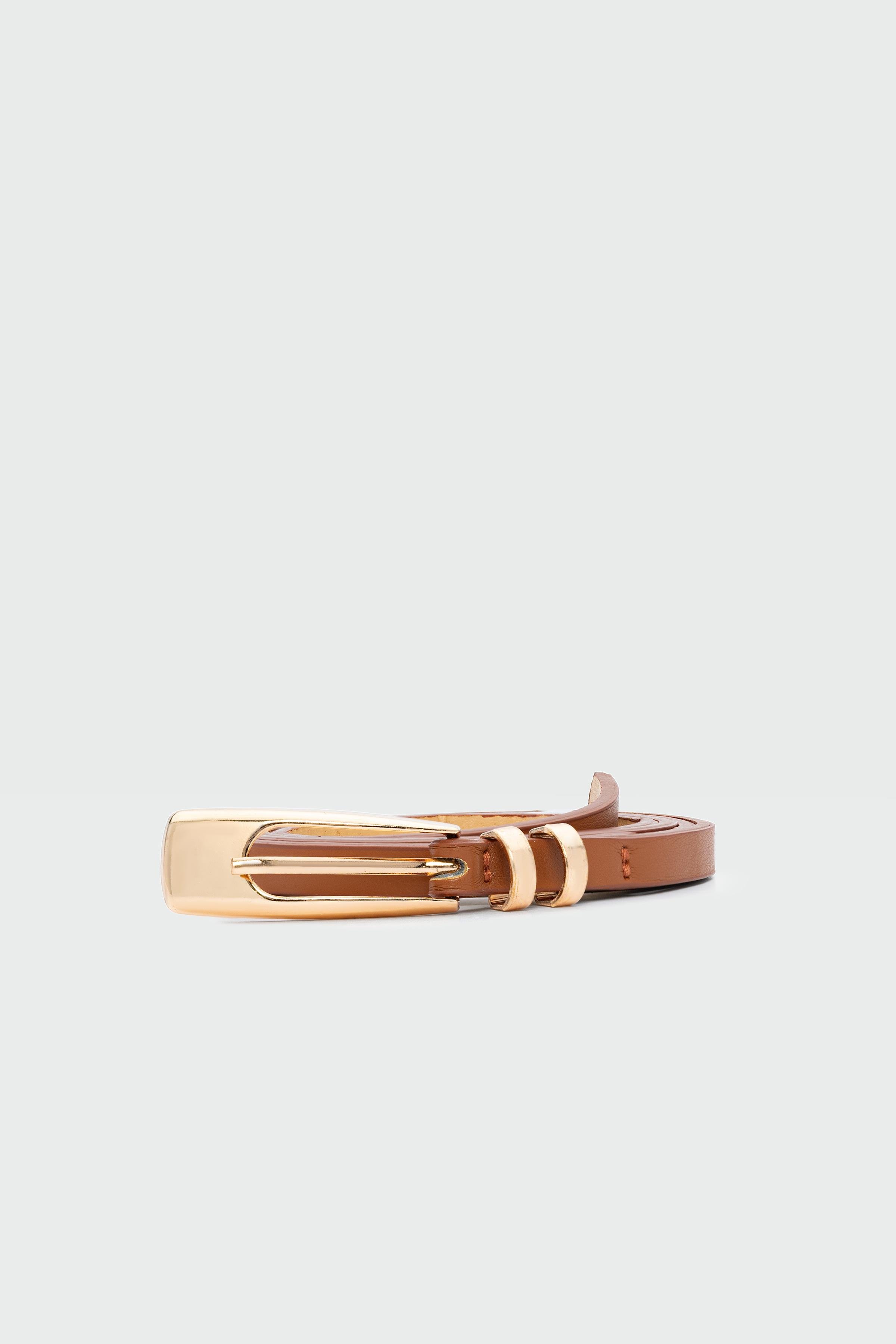 Uzun Dikdörtgen Tokalı İnce Suni Deri Kemer Taba